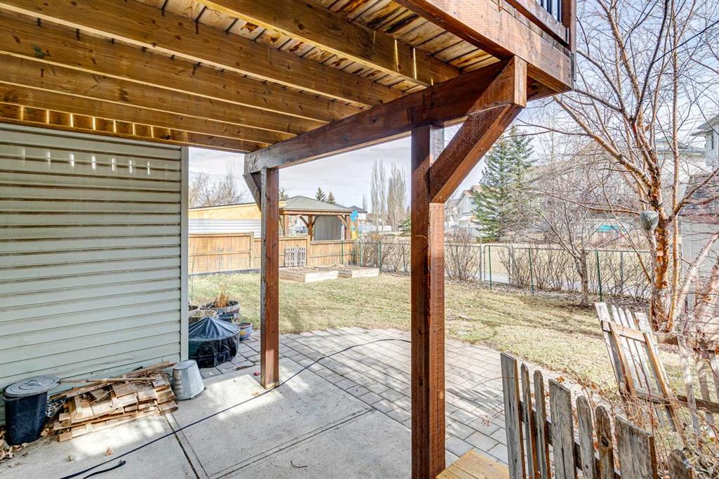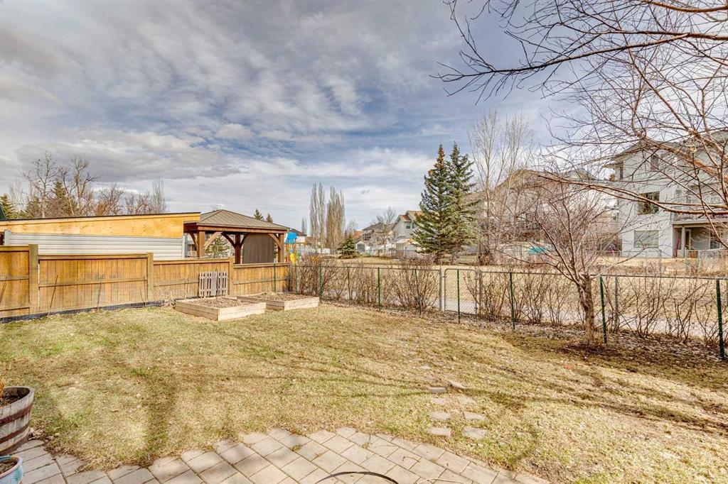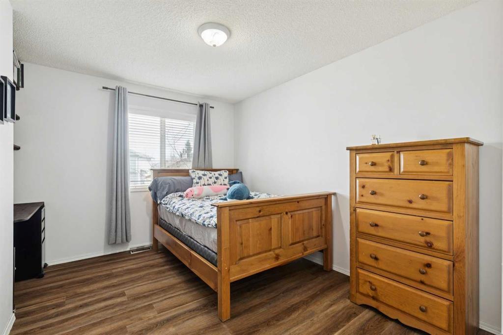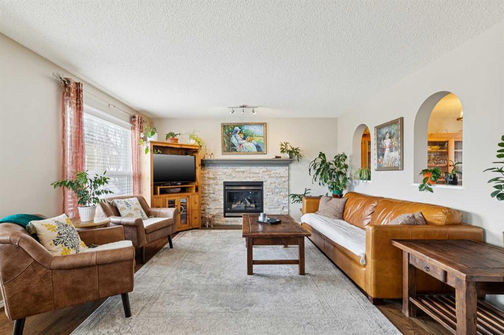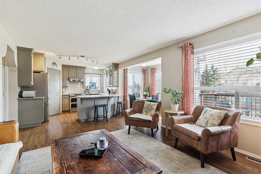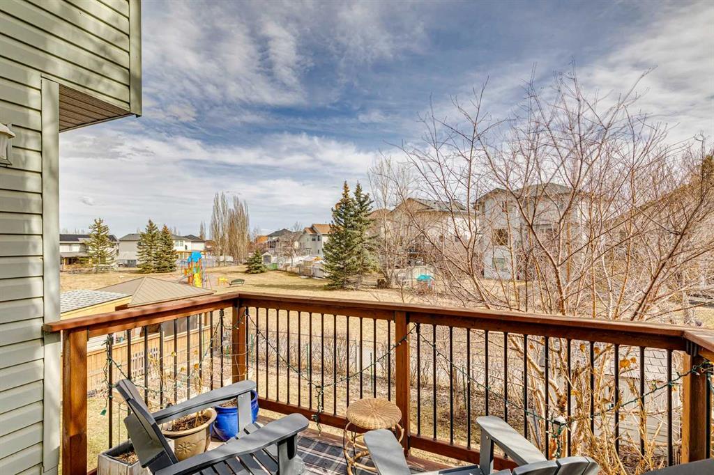 OPEN HOUSE April 18 from 1 – 3 pm. This well-located home backs onto a playground and greenspace with walking paths that connect to the river valley. You can get right downtown on the pathway system without ever crossing a major road. The southeast-facing backyard enjoys great natural light and features a large deck overlooking the green space. Inside the home has been lovingly updated with refinished hardwood floors, painted cabinets, newer stainless appliances, and new quartz counters. The comfortable main floor layout features an open concept living, dining and, kitchen space with tons of windows. The living room is centered around a gas fireplace, while the nook is surrounded by windows. There is a flex space at the front of the home that’s currently used as a formal dining area, and the laundry room is also on this level. Upstairs offers new vinyl plank floors, three bedrooms, plus a spacious bonus room with high ceilings. The finished walkout basement has a 4th bedroom and another full bathroom. The house also has A/C, a water softener, and a water filtration system. The fully fenced yard, nearby Sheep River pathway system, and convenient access to schools and shopping make this a solid choice in a family-friendly setting.