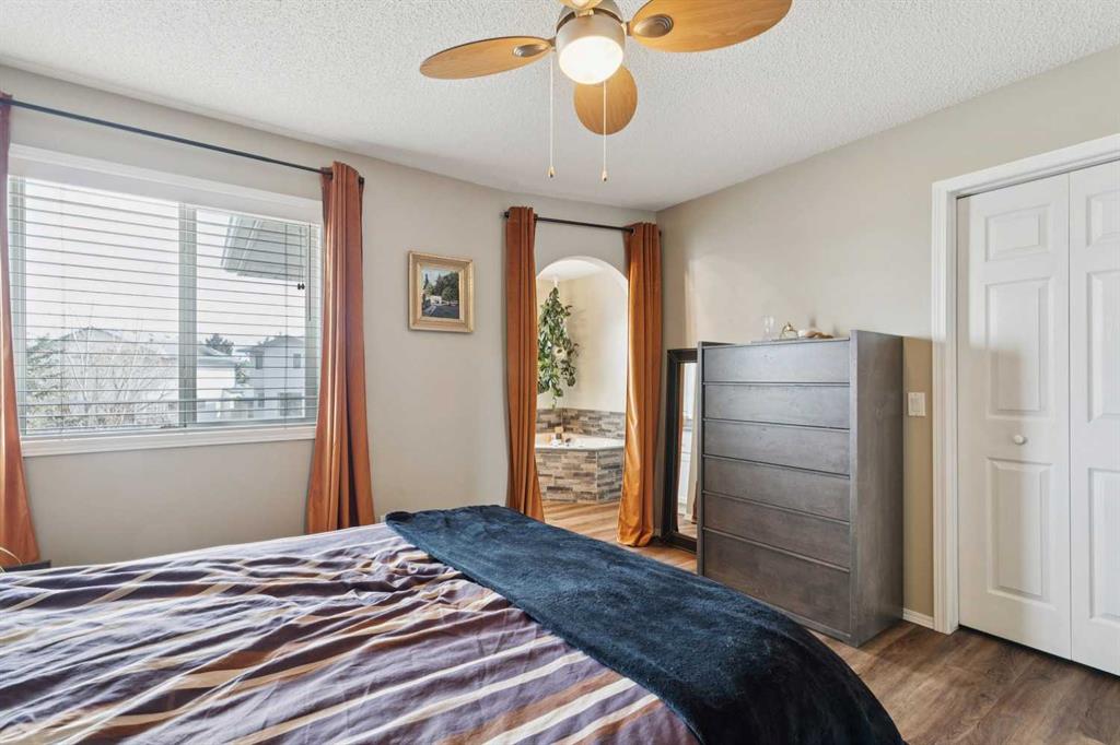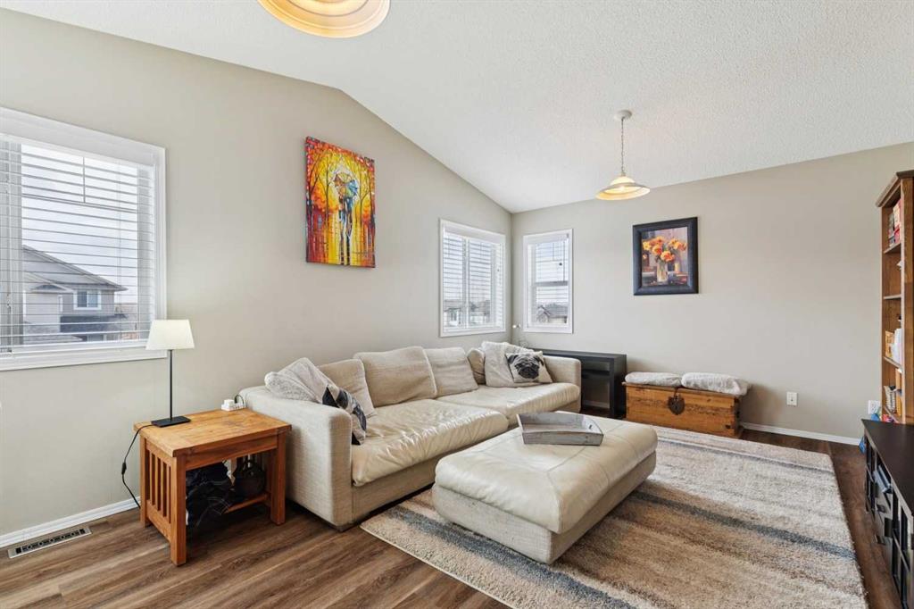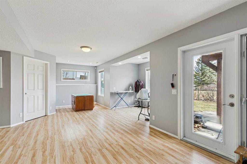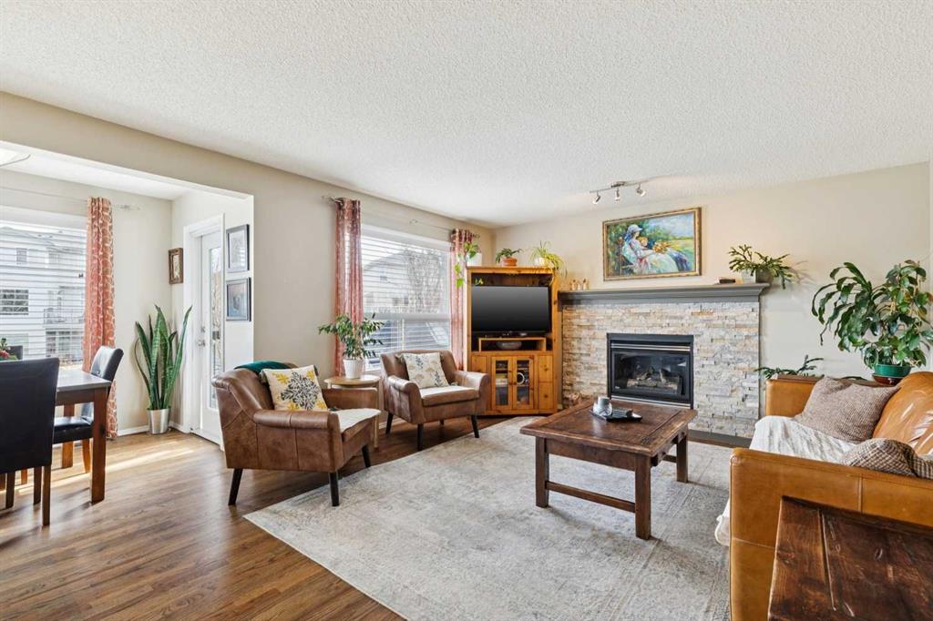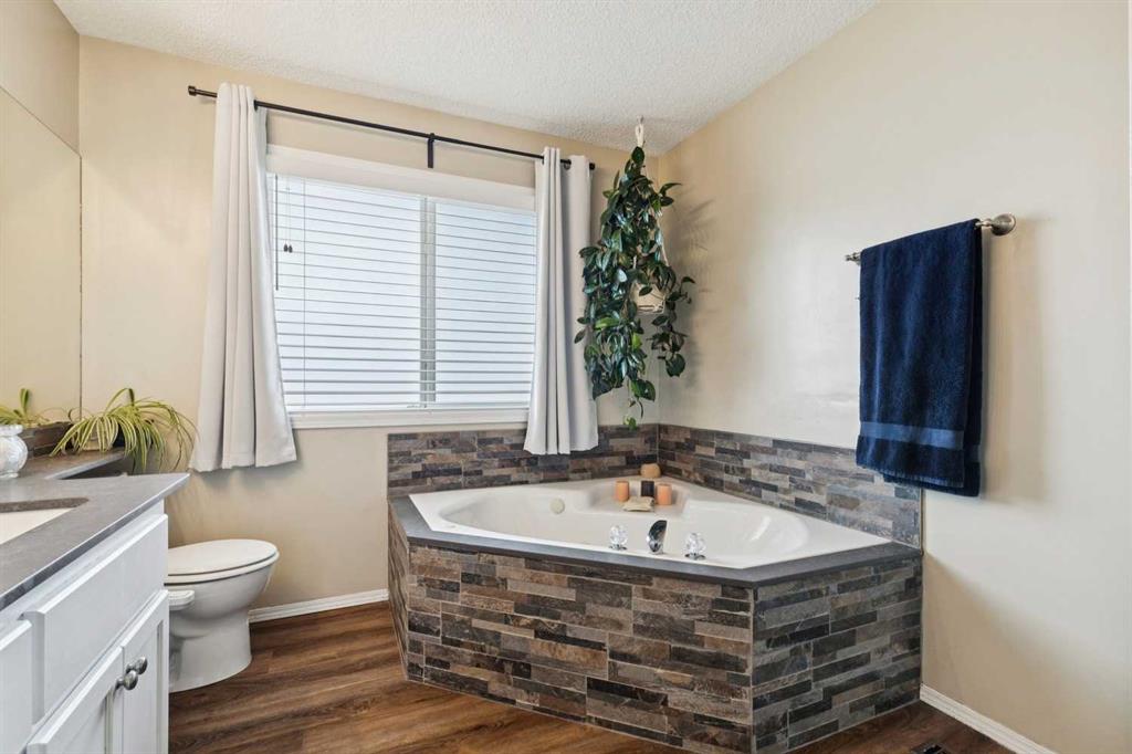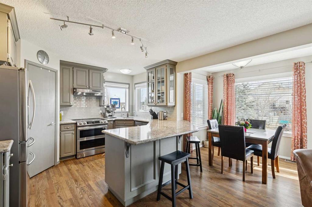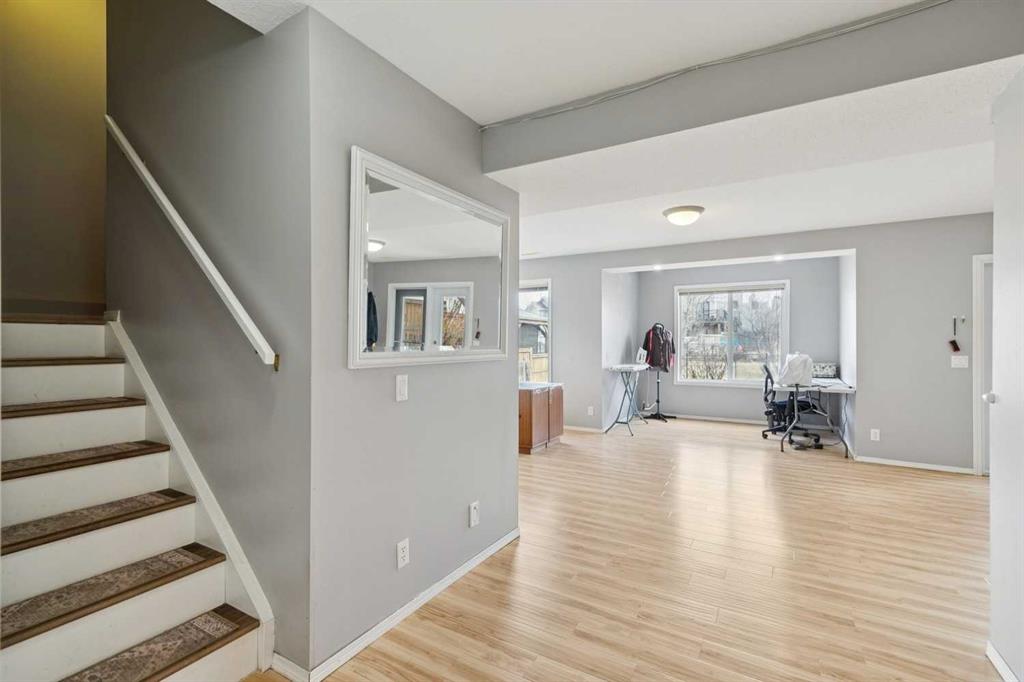 OPEN HOUSE April 18 from 1 – 3 pm. This well-located home backs onto a playground and greenspace with walking paths that connect to the river valley. You can get right downtown on the pathway system without ever crossing a major road. The southeast-facing backyard enjoys great natural light and features a large deck overlooking the green space. Inside the home has been lovingly updated with refinished hardwood floors, painted cabinets, newer stainless appliances, and new quartz counters. The comfortable main floor layout features an open concept living, dining and, kitchen space with tons of windows. The living room is centered around a gas fireplace, while the nook is surrounded by windows. There is a flex space at the front of the home that’s currently used as a formal dining area, and the laundry room is also on this level. Upstairs offers new vinyl plank floors, three bedrooms, plus a spacious bonus room with high ceilings. The finished walkout basement has a 4th bedroom and another full bathroom. The house also has A/C, a water softener, and a water filtration system. The fully fenced yard, nearby Sheep River pathway system, and convenient access to schools and shopping make this a solid choice in a family-friendly setting.