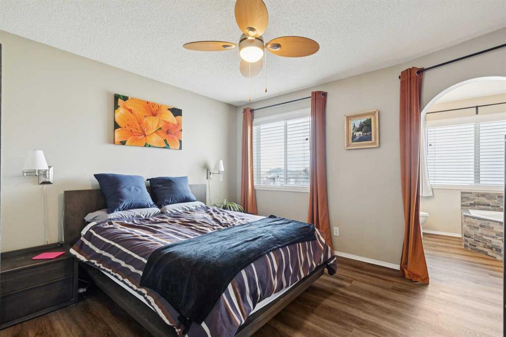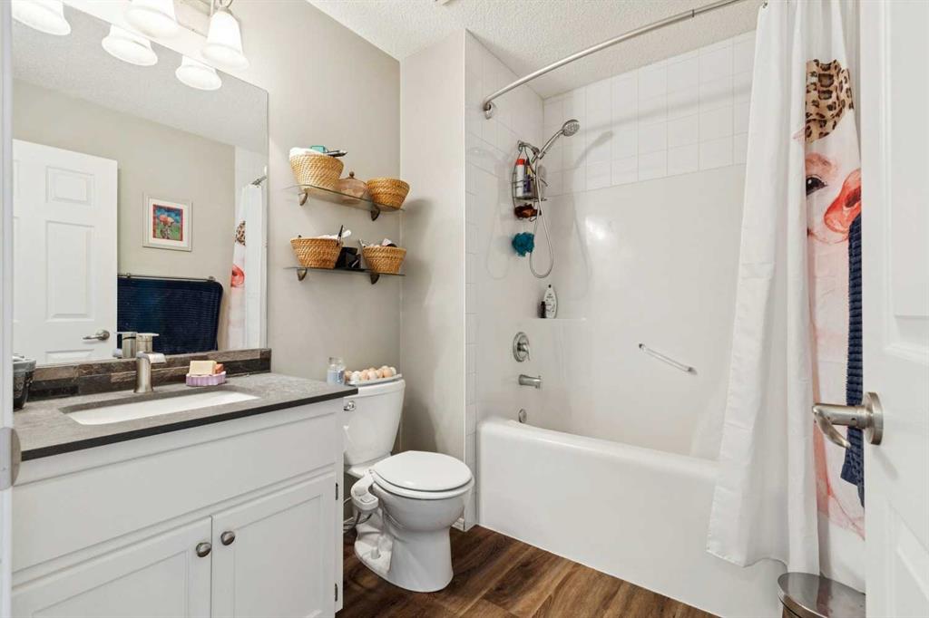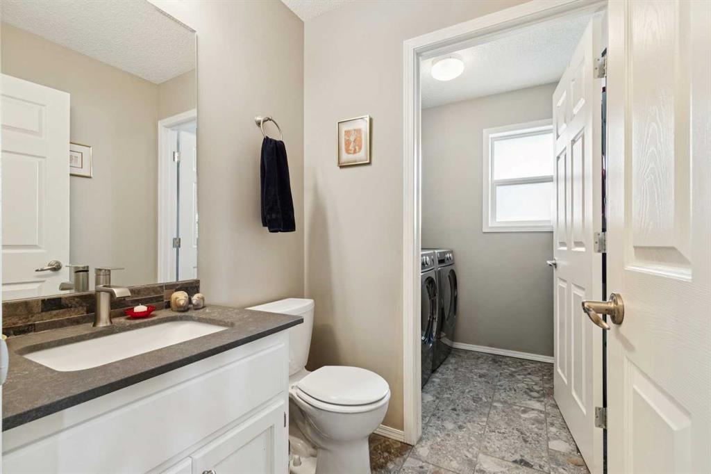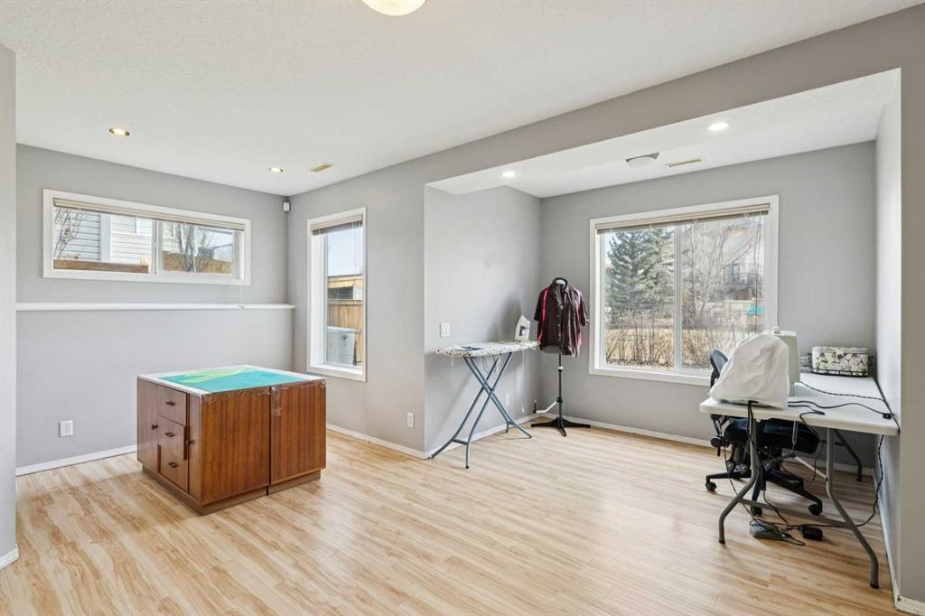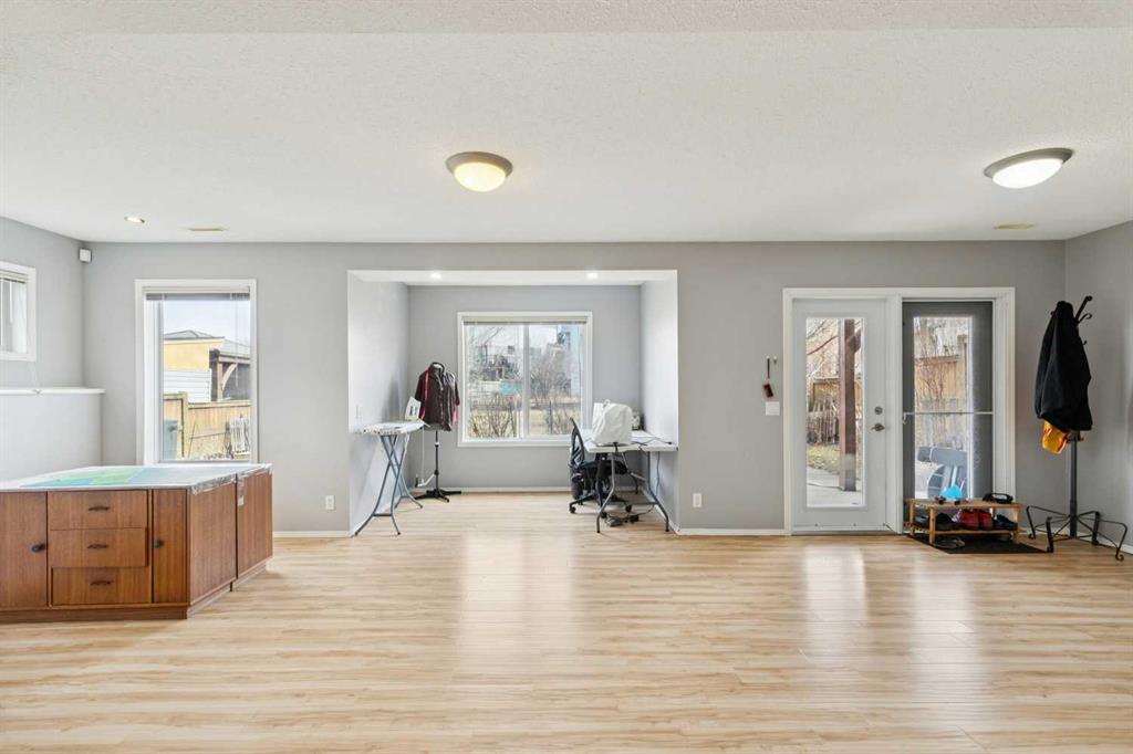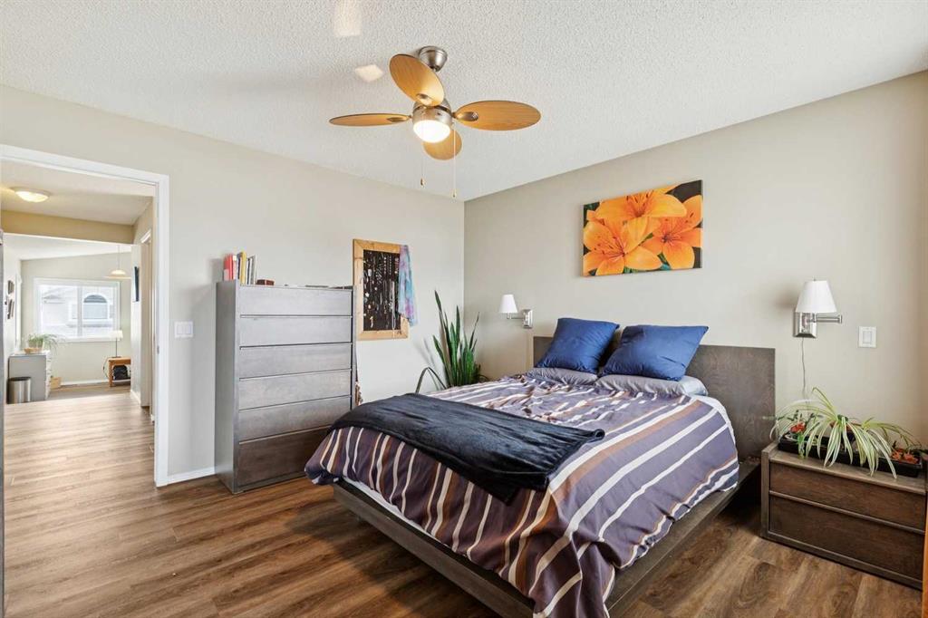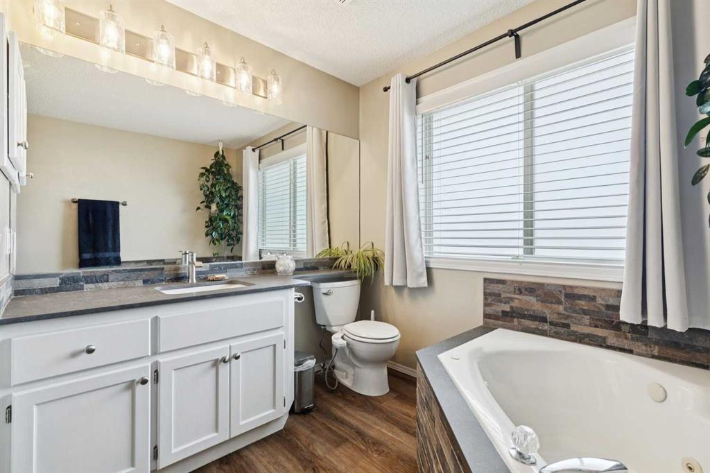 OPEN HOUSE April 18 from 1 – 3 pm. This well-located home backs onto a playground and greenspace with walking paths that connect to the river valley. You can get right downtown on the pathway system without ever crossing a major road. The southeast-facing backyard enjoys great natural light and features a large deck overlooking the green space. Inside the home has been lovingly updated with refinished hardwood floors, painted cabinets, newer stainless appliances, and new quartz counters. The comfortable main floor layout features an open concept living, dining and, kitchen space with tons of windows. The living room is centered around a gas fireplace, while the nook is surrounded by windows. There is a flex space at the front of the home that’s currently used as a formal dining area, and the laundry room is also on this level. Upstairs offers new vinyl plank floors, three bedrooms, plus a spacious bonus room with high ceilings. The finished walkout basement has a 4th bedroom and another full bathroom. The house also has A/C, a water softener, and a water filtration system. The fully fenced yard, nearby Sheep River pathway system, and convenient access to schools and shopping make this a solid choice in a family-friendly setting.