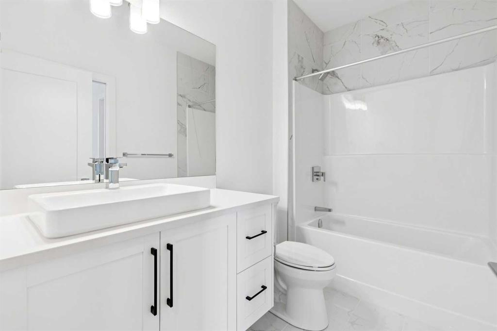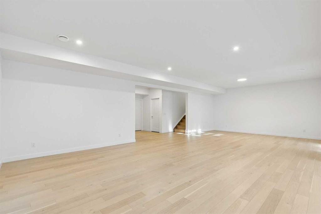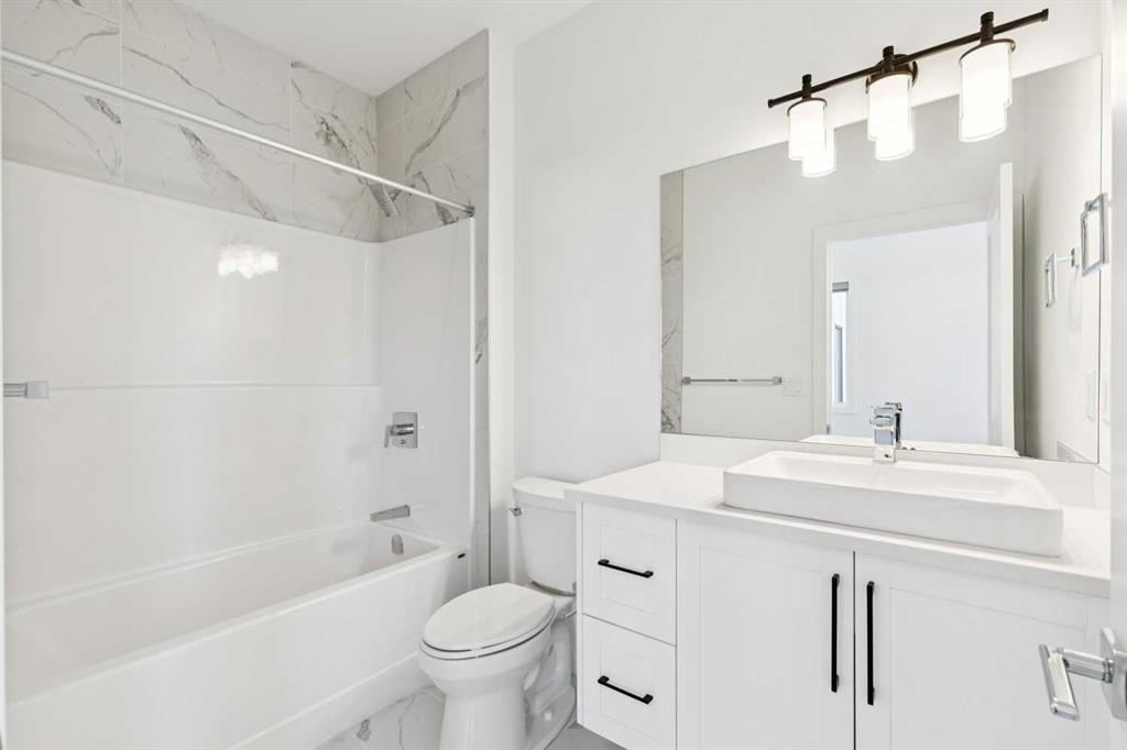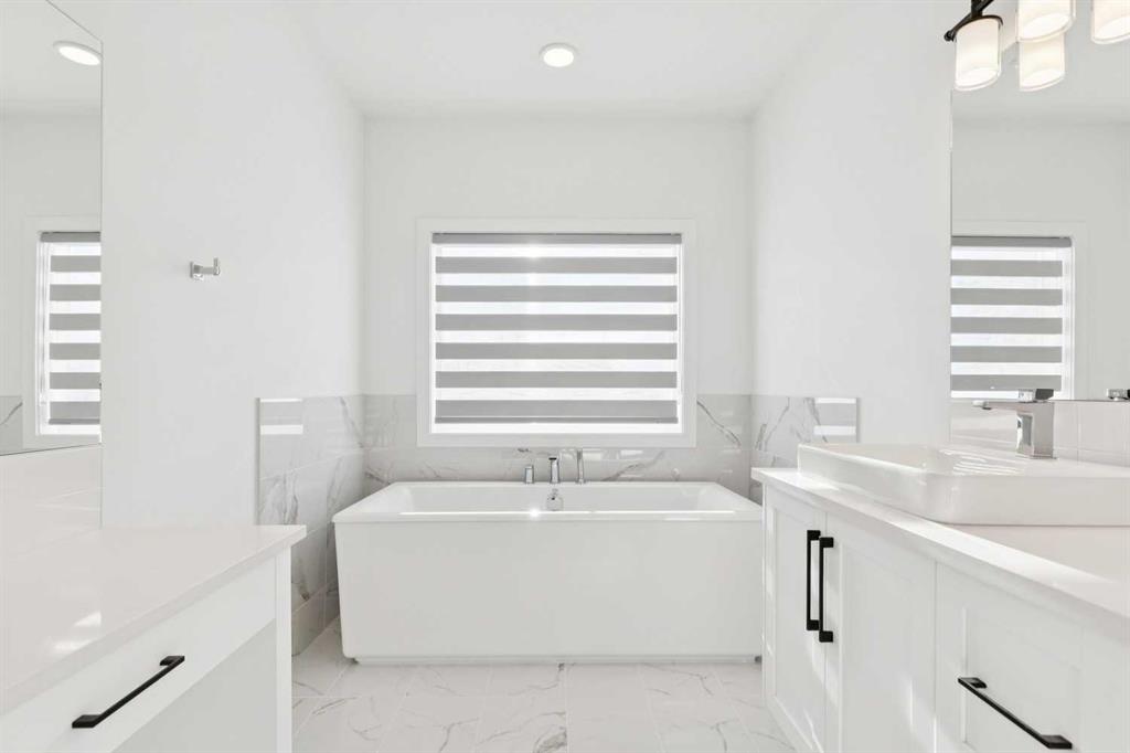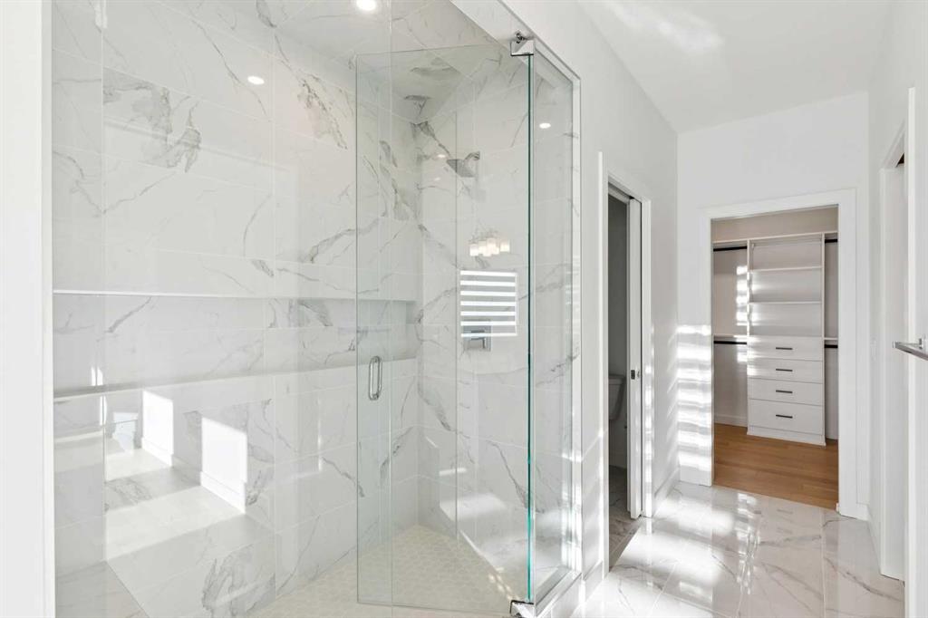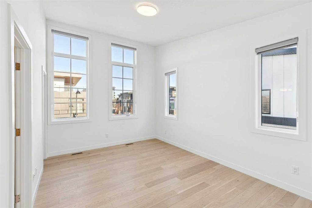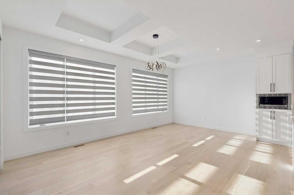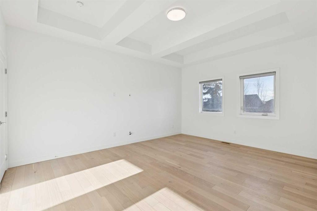 A RARE FIND! Why buy new? Save the GST and a year off construction. Chose your possession date & move in to enjoy your exceptional new home. Custom built by Truman, this barely lived-in stunning home is located on a premium south-facing, mature lot in the heart of highly sought-after West District. Offering over 4,380 sq. ft. of luxurious open concept living space, including a fully developed walk-out lower level. The Pulsar II features soaring two-storey vaulted tray ceilings, 8’ doors throughout the main floor, a dramatic wall of windows spanning the back of the home, upgraded 9’ ceilings on every level, walk-in closets & an ensuite attached to every bedroom! From the moment you step into the formal entry, you’ll appreciate the abundance of natural light that flows through the home. The elegant great room features a gas fireplace beautifully finished with tile. The adjoining chef’s kitchen is truly exceptional, featuring oversized double islands, table-top breakfast bar, extensive double-height cabinetry with soft-close pull-outs, stunning upgraded quartz countertops, premium lighting & plumbing fixtures, top-of-the-line stainless steel appliances including a 5-burner gas range. A beautifully finished walk-through butler’s pantry provides additional storage. The expansive 20’ x 10’ dining area is perfect for entertaining & large family gatherings, with a garden door leading to the full-size deck, overlooking the sunny, fenced yard. Main floor office with French glass doors & private ½ bath complete the main. The upper level offers a central bonus room & 2 spacious bedrooms, plus, the primary suite is a true retreat! Features his/hers walk-in closets, luxurious 5-piece spa-inspired ensuite with marble flooring & wall accents, freestanding soaker tub, raised dual vanities & enclosed 5’ shower. The professionally finished walk-out lower level, completed by the builder, has a separate entrance with potential for conversion to a full suite. Approximately 1,150 sq. ft. of additional living space & features a massive open recreation area, perfect for entertaining, a spacious 4th bedroom, a 4-piece bathroom & ample storage. Large picture windows overlook the yard, with direct access to the patio. Additional $100,000+ of custom upgrades include separate heating zones for every level, 2 HE furnaces, central air conditioning, premium hardwood flooring. Wonderful triple garage with high ceilings allowing for addition of a car lift. Representing the pinnacle of master-planned neighbourhoods, enjoy the walkability, just steps from shops, restaurants, schools, parks & pathways. Enjoy a short commute to both hospitals & downtown, with easy access to Stoney Trail, just 45 minutes to Kananaskis. Top ranked school district, both public & private from K to Grade 12. Lovingly built and rarely occupied by a single professional who travelled extensively, this home offers a rare opportunity to own a nearly new, custom estate property. Unbeatable hidden gem in West Calgary!