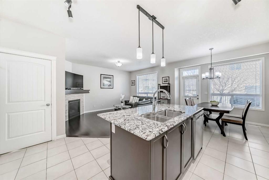 Step inside this immaculately maintained home, located an easy walk to the community hall and elementary schools. The spacious entry provides plenty of room to greet guests. The home is open with 9′ ceilings and knock-down stipple. The kitchen features rich cabinetry, stainless steel appliances including a gas stove, and a large granite island with undermount sink and seating. A walk-through pantry connects the kitchen to the mudroom making grocery drop-offs easy and efficient. The dining area overlooks the backyard and provides direct access to the deck, ideal for summer barbecues and outdoor dining. The living room is warm and inviting with dark laminate floors and a corner gas fireplace for those cooler evenings. A 2-piece powder room completes the main level.