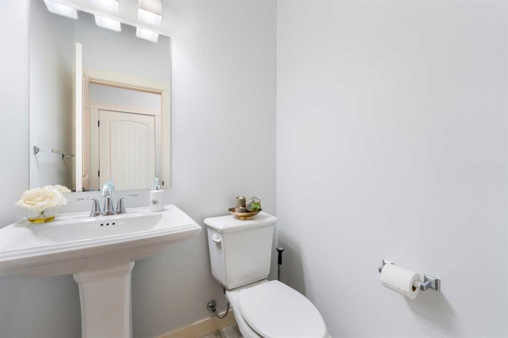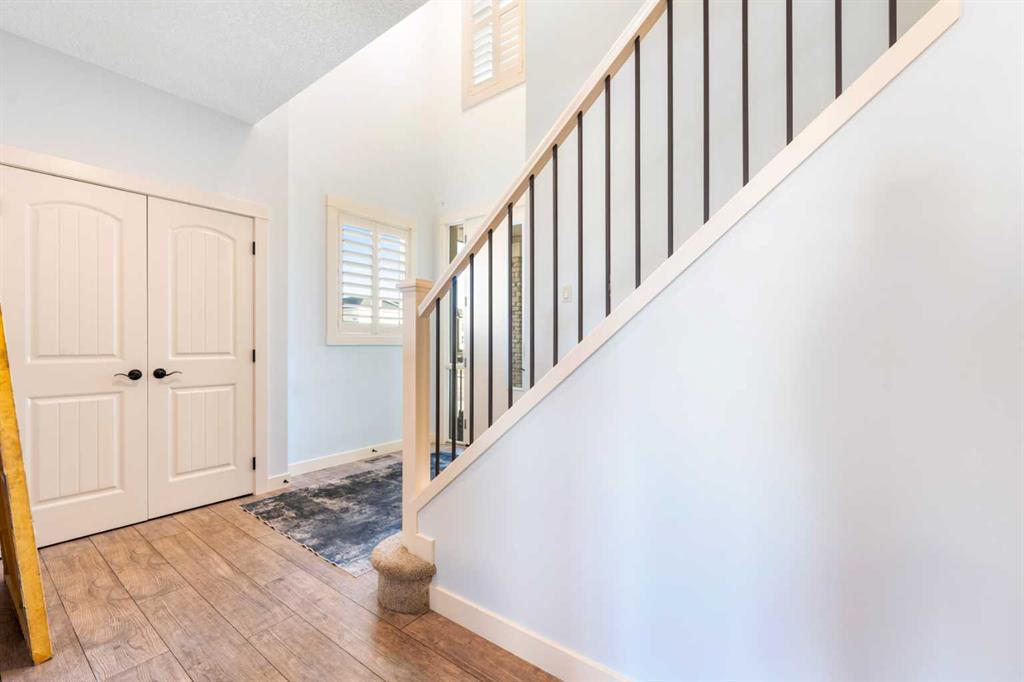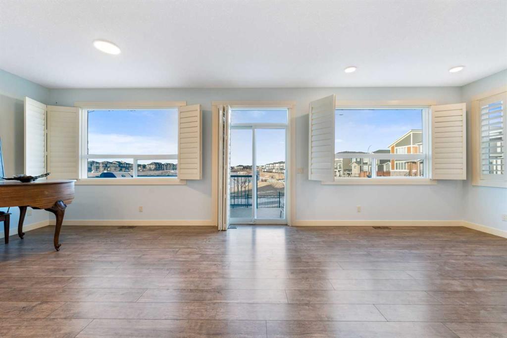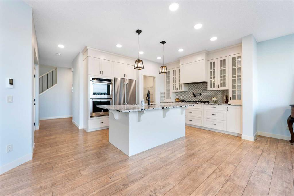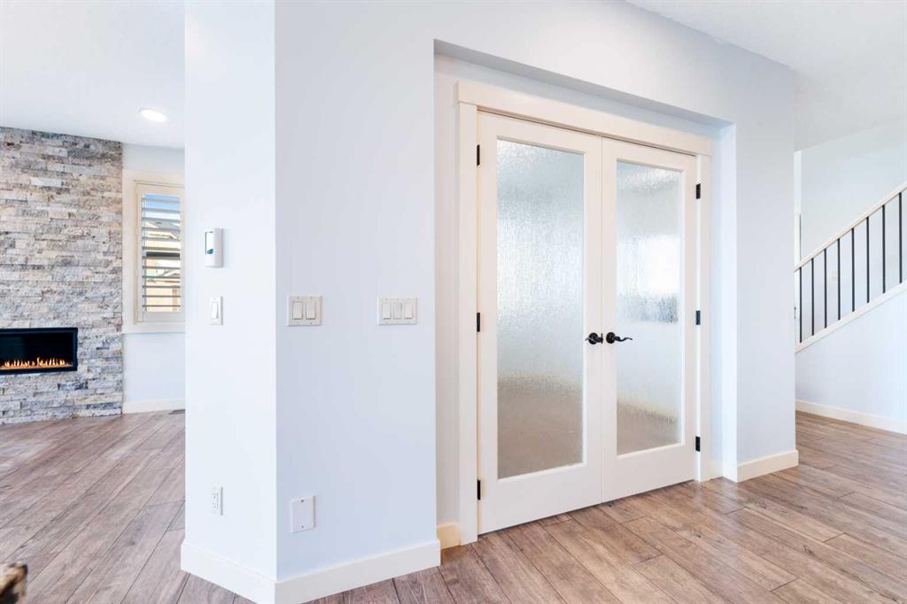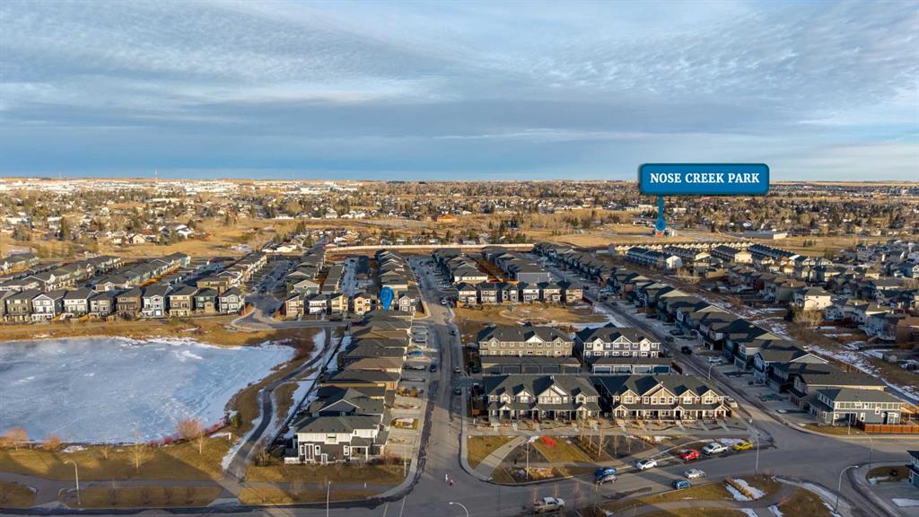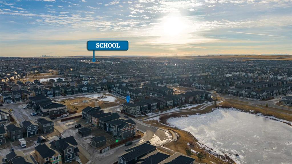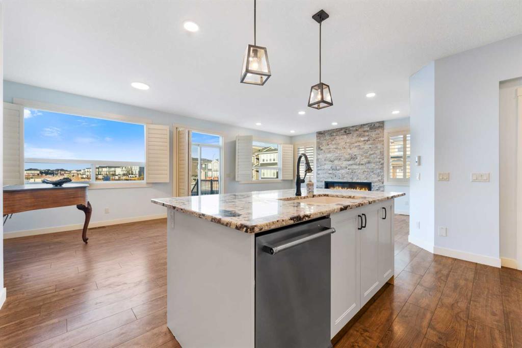 Welcome to this beautifully upgraded corner-lot family home in the heart of Midtown, Airdrie, backing onto the pond and walking paths with park-facing views that offer calming scenery and exceptional privacy. This home provides over 2,500 sq ft of thoughtfully designed living space above grade, plus an unfinished basement ready for future development. Inside, you’ll appreciate 9-foot ceilings throughout, a vaulted upper-level living area, and an expanded back wall that enhances natural light and usable space. The main floor features a functional open-concept layout with a spacious kitchen complete with double wall ovens, a pot filler above the range, a dedicated pantry fridge, and seamless flow into the dining and living areas anchored by an upgraded stone fireplace featuring one of the largest fireplace sizes available. Upstairs offers an ideal family layout with a generous primary retreat and spa-inspired ensuite with the largest tub option, additional well-sized bedrooms, a kids’ wet-room bathroom with three sinks, shower, and tub, convenient upper-level laundry, and excellent built-in storage. The outdoor space has seen over $30,000 invested, including a stone patio with fire pit, low-maintenance deck, and natural gas hookup, all perfectly positioned to enjoy pond views and the surrounding pathways. Practical upgrades include lifetime-warranty shutters on every window, a water softener system, a custom mudroom with cleaning closet and coat hooks, and an extra-long, extra-wide garage ideal for trucks, with natural gas and power roughed in for a heater, hose bibs, and security wiring. Located in the vibrant Midtown community, this home is steps from walking paths, parks, and green spaces, close to schools, shopping, restaurants, and everyday amenities, with easy access to major routes, making it a rare opportunity to own a premium, park-front, pond-backing home in one of Airdrie’s most desirable neighborhoods.