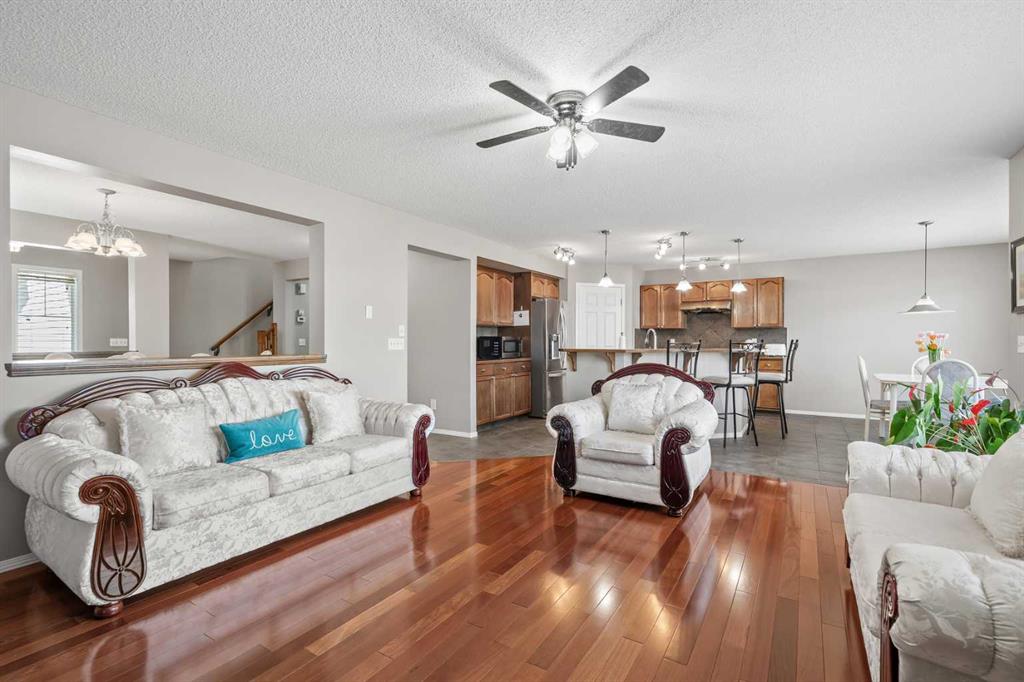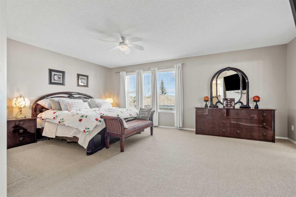 Location, quality, function, style and space! All on a quiet street across from a park in highly desirable Chaparral! Welcome to 8 Chapalina Rise, a one owner custom Avi built home with thought and quality throughout. This home boasts 2350 square feet of above grade living featuring ample, well balanced rooms, and a unbeatable floor plan. Enter through the bright foyer to the open plan commencing with the gracious dining room, flowing to the large living room featuring impeccable stunning Brazilian hardwood cherry flooring in both. The kitchen is open and functional, with large working island with eating bar, ample counter space, gas range and flow through pantry and laundry for ultimate convenience. Upstairs opens to a huge sun drenched bonus room overlooking a park, with plenty of room for media and multi use. The vast master suite boasts large walk in closet and well appointed 4 piece ensuite. Two other ample bedroom complete the flowing second floor. The large backyard includes a spacious sunny deck and ample room for garden beds and play equipment. Enjoy the comfort and ease of living in this remarkable home, featuring central air conditioning, central vacuum system, high efficiency furnace, main floor laundry, bbq line to the deck, no smoking or animals. This home has been lovingly maintained and updated by the original owner, and pride of ownership shines from every corner. 8 Chapalina Rise, fabulous home, fabulous location!