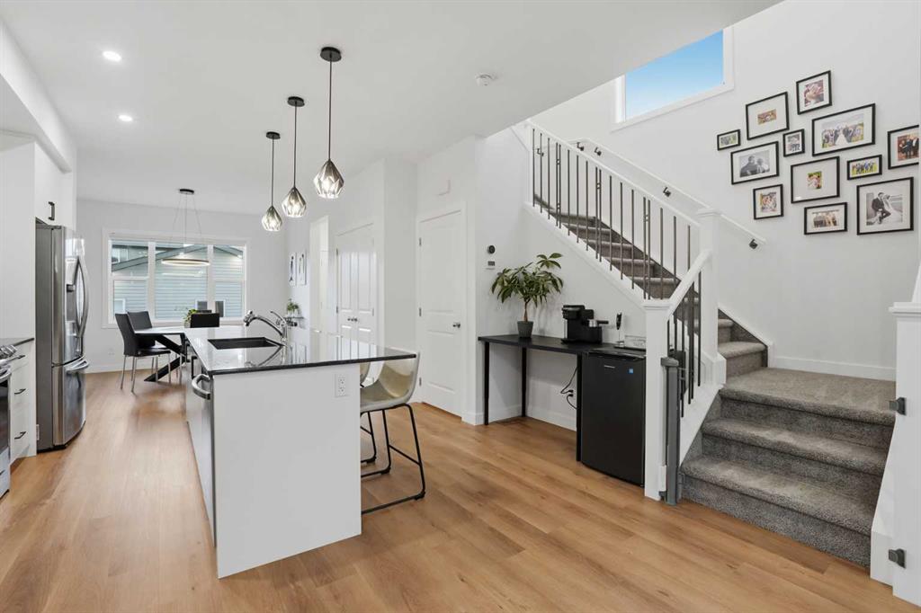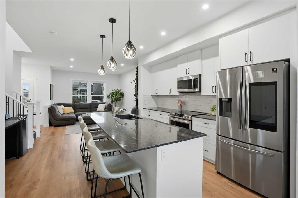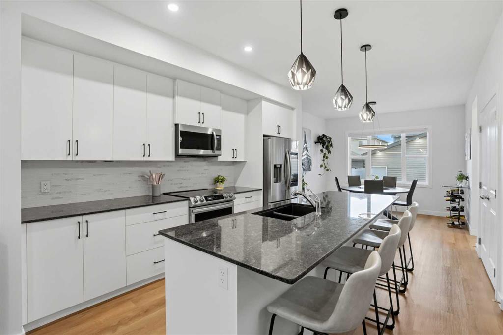 OPEN HOUSE: Sunday, Feb 8, 1pm – 4pm. Don’t miss your opportunity to own this exceptional home in Legacy! A RARE GEM: like-new, loaded with upgrades (including A/C), and situated on a truly OVERSIZED CORNER LOT offering a LARGE YARD where you can find a sunny spot at any point throughout the day! Inside, the home is flooded with natural light from the large windows, and the extra windows provided by the corner location! The main level feels bright and welcoming, with a lovely neutral aesthetic that will suit any new owner with ease, and natural wood-toned vinyl flooring that flows front to back. The kitchen is perfectly upgraded with a quartz counters, ceiling height cabinets, under-cabinet smart lights, upgraded stainless steel appliances including a SMART FRIDGE AND STOVE, a double-door pantry, and a great island for ample cooking/baking space and breakfast bar. The nook provides a flex space to suit your needs – currently used as a coffee bar. The main level is an excellent space to host, with an open flow from living room to kitchen and dining, and right out to the back patio! The stairwell to upstairs is like few others, with a large window and iron railing! Upstairs, you’ll find the convenient upper level laundry closet, with side-by-side washer and dryer, allowing space for hang drying and all your supplies! The spacious primary bedroom features a private en suite with quartz, and a large walk-in closet! There are two more additional bedrooms – one with an extra window and walk-in closet! A second full bath, also with quartz, completes the upper level. There are cellular shades throughout with thoughtful placement of blackout and top down/bottom up. A SEPARATE SIDE ENTRANCE to the basement allows for more flexible use of the basement space. While it is unfinished, there is underlay and carpet down (included!) to make great use of this space. The OVERSIZE DOUBLE GARAGE is heated and insulated, with its own 50 amp sub panel , overhead storage trusses, and pot lights lining the exterior that light up the yard! On the exterior, there are only two sides that are vinyl, while the front and the large, more exposed side of the home is smartly finished with cement fibre board! The vinyl fence is only two years old and includes a front gate, back gate, and side gate, with stone tiles leading to the side entrance. Legacy is a fantastic family community that offers excellent parks and playgrounds, restaurants, shopping, and all other amenities you may need close by.