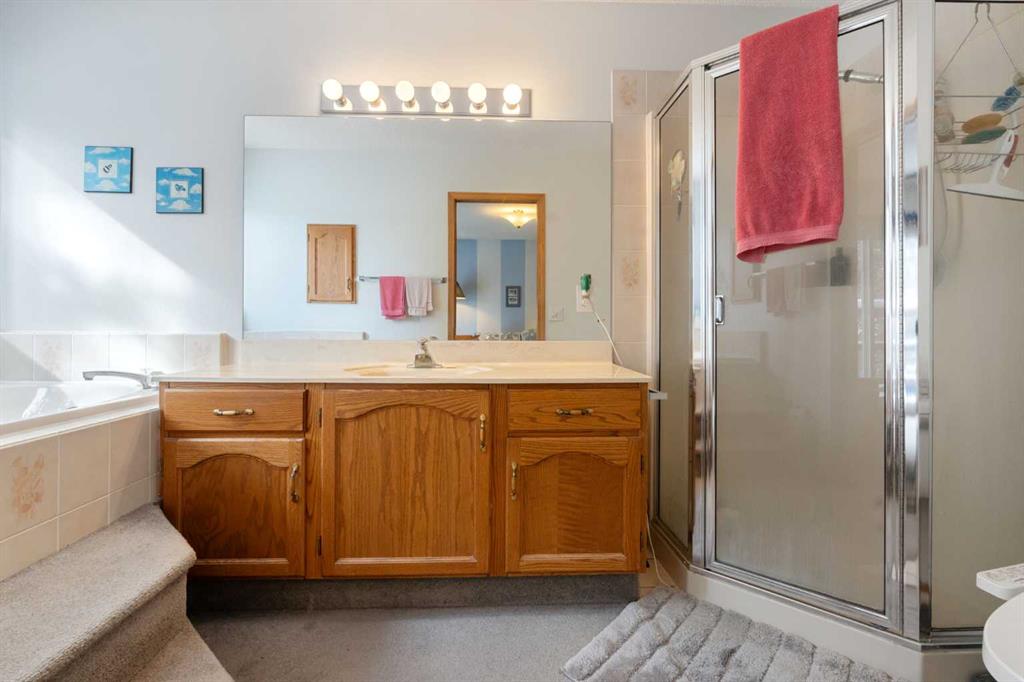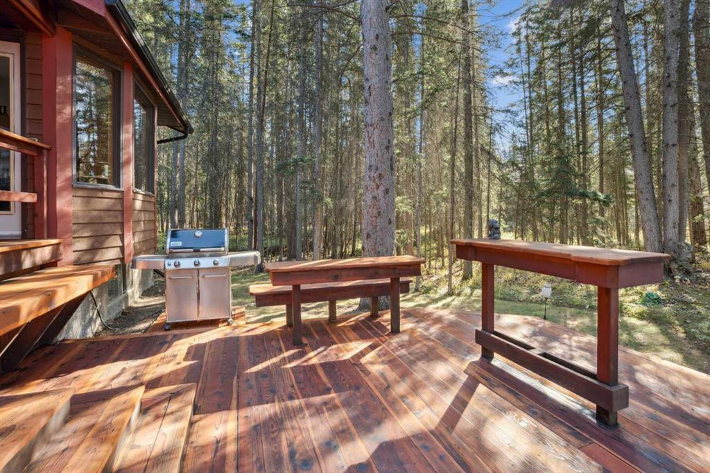 ***Open House Sunday Feb 22 1:00-4:30 PM- Dual Open House with 28 Wolf Drive*** Lovely family home on one of the nicest lots in Redwood Meadows! This half acre lot is located in a quiet cul-de-sac, and backs directly onto the Berm Trail and Elbow River beyond. Enjoy hiking trails, mountain biking, x-country skiing and fishing directly from your backyard. Entering the home you find a large open living/dining area with soaring ceilings and skylights that brighten this area and the kitchen beyond. A cute breakfast nook over looks the forest, and leads to a cozy family room with hardwood floors and gas fireplace. The main floor also has a flex room that could be a bedroom or office, a laundry, and a 2-piece bath. Upstairs features the primary retreat, a large room with 4-piece en-suite bath, walk-in closet, and a wonderful private balcony. There are two more bedrooms and another bath on this level. The unfinished basement provides potential for further development, and also has a workshop/craft room. The back deck, recently re-stained, is not only private but has a great barbecue area and built in bench and table. Great for entertaining! The house is completed by a large double attached garage. You cannot beat this location- check out the attached 3-D tour, and then come see it in person!
