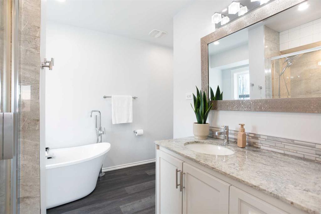 Welcome home to this impeccably maintained,2,785 SF two-storey residence in the desirable community of Thorburn. This impressive five-bedroom home greets you with a grand, welcoming foyer featuring dual closets before opening into a spacious and modern interior. The stunning open-concept main floor is anchored by warm vinyl plank flooring that flows seamlessly into an inviting, light-filled living room. Here, a cozy gas fireplace, elegantly flanked by custom built-in cabinets, serves as the perfect focal point for quiet evenings. The heart of the home is a true chef’s kitchen, boasting an abundance of cabinetry and counter space, a large center island with a breakfast bar, and a functional corner pantry. Adjacent to the kitchen, the generous dining room accommodates everything from intimate dinners to large gatherings, all while offering a lovely view of the private backyard. For added convenience, a stylish two-piece powder room is tucked discreetly around the corner on this level. The upper floor is designed for both relaxation and functionality, beginning with a massive bonus room illuminated by numerous windows. The serene primary retreat serves as a private oasis, featuring a spa-like five-piece ensuite complete with a granite vanity, a heated towel warmer, a soothing soaker tub, and a separate walk-in tiled shower. Two additional oversized bedrooms, a full four-piece bathroom, and a dedicated laundry space complete this level, ensuring the morning rush is a breeze for the whole family. The lower level expands your living space even further. This fully developed basement offers a massive recreation room perfect for movie nights or a home gym, along with two more large bedrooms and a modern three-piece bathroom, complete with another tiled shower. Whether you need space for guests, teenagers, or a home office, this level provides incredible versatility. Outside, your living area extends to a lovely rear deck overlooking a fully fenced backyard with established gardens, offering a peaceful escape for summer hosting. Parking is never an issue here; the property features an oversized, heated double attached garage, a spacious driveway wide enough to park 3 vehicles, and rear lane access to a dedicated parking pad—providing ample room for your boat and RV. A detached garage could be added into the backyard with City of Airdrie approval, as you can see from the neighbours on the block. Located on a quiet street just minutes from Genesis Place, Bert Church High School and East lake, scenic walking paths, and all essential amenities, this home offers the perfect balance of luxury and location. With its generous proportions and pristine condition, this property will not last long. Book your showing today to experience this Thorburn gem for yourself!