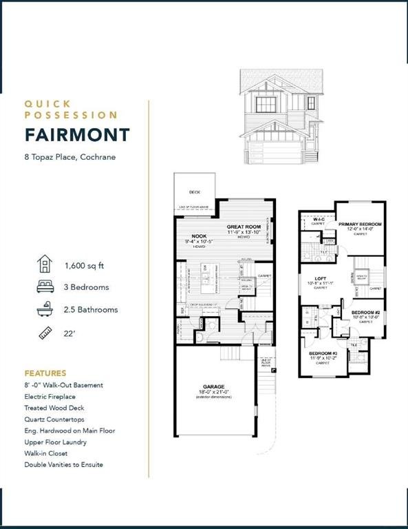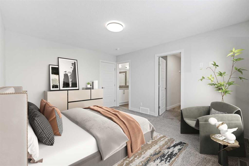 BRAND NEW HOME by Douglas Homes, Master Builder in central Greystone, short walking distance to parks, the Bow River, major shopping & interconnected pathway system. Featuring the Fairmont with a south facing back yard, walkout basement, deck off the main floor accented by built out columns on an R-MX zoned lot for POTENTIAL future lower level suite. NOTE: a secondary suite would be subject to approval and permitting by the city/municipality. Located on a quiet street, very close two Children’s Play Parks & paved back lane. This gorgeous 3 bedroom, 2 & 1/2 half bath home offers 1600 sq ft of living space. Loads of upgraded features in this beautiful, open floor plan. The main floor greets you with a grand glazed 8′ front door, soaring 9′ ceilings, oversized windows , & 8′ 0″ passage doors. Distinctive Engineered Hardwood floors flow through the Foyer, Hall, Great Room, Kitchen & Nook adding a feeling of warmth & style. The Kitchen is completed with an oversized entertainment island (7’0″ single level island) & breakfast bar, roomy closet pantry with 8’0″ French Door , Quartz Countertops, 42″ Cabinet Uppers accented drop bulkhead, Pots & Pans Drawers, soft close doors & drawers throughout, new stainless appliance package including Side by Side Fridge with Ice & Water Feature, Microwave/Hood Fan combo over the stove , Gas Range, Fridge & built-in Dishwasher. The main floor is completed with an expansive, open Great Room & Nook finished with over height windows & Napoleon “Entice” fireplace. Upstairs you’ll find a generous Primary Bedroom with 4 piece Ensuite including dual Quartz vanities with undermounted sinks, oversized 5’0″ x 3’0″ shower, Linen cubby, & ceramic tile flooring. There is also a nicely sized walk-in closet accessed from the Primary Bedroom. The 2nd floor is completed by a spacious, centralized family Loft & 2 good size additional bedrooms with double door closets. The 2nd & 3rd bedrooms have the convenience of a Jack & Jill main bath with Quartz countertop, undermounted sink & tile flooring. You’re certain to love the convenience of the 2nd Laundry Room completed with large access doors, light & tile flooring. Spacious, Beautiful and Elegant! The perfect place for your perfect home. Call today! Photos are from prior build & are reflective of fit, finish & included features. Note: Front elevation of home & interior photos are for illustration purposes only. Actual elevation style, interior colors/finishes, & upgrades may be different than shown & the Seller is under no obligation to provide them as such. Directions: Come to the Show Home first located at 500 River Avenue. Showings only during Show Home hours & days.