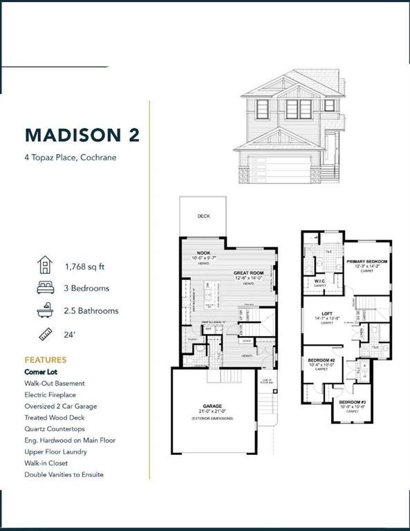 BRAND NEW HOME by Douglas Homes, Master Builder in central Greystone, short walking distance to parks, the Bow River, major shopping & interconnected pathway system. Featuring the Madison 2 on a corner lot, south facing back yard, walkout basement, deck off the main floor accented by built out columns on an R-MX zoned lot for POTENTIAL future lower level suite. NOTE: a secondary suite would be subject to approval and permitting by the city/municipality. Located on a quiet street, very close two Children’s Play Parks & paved back lane. This gorgeous 3 bedroom, 2 & 1/2 half bath home offers over 1760 sq ft of living space. Loads of upgraded features in this beautiful, open floor plan. The main floor greets you with a grand glazed 8′ front door, soaring 9′ ceilings, oversized windows , & 8′ 0″ passage doors. Distinctive Engineered Hardwood floors flow through the Foyer, Hall, Great Room, Kitchen & Nook adding a feeling of warmth & style. The Kitchen is completed with an oversized entertainment island (7’0″ single level island) & breakfast bar, roomy closet pantry with 8’0″ French Door , Quartz Countertops, 42″ Cabinet Uppers accented drop bulkhead, Pots & Pans Drawers, soft close doors & drawers throughout, new stainless appliance package including Side by Side Fridge with Ice and Water, Gas Range, Chimney Hood Fan, Built-In Microwave in the island & Built-In Dishwasher. The main floor is completed with an expansive, open Great Room & Nook finished with over height windows & Napoleon “Entice” fireplace. Ascending the second floor there is a large “U” shaped staircase complimented by black metal spindle railing naturally light by a large window. Upstairs you’ll find a generous Primary Bedroom with 5 piece Ensuite including dual, separate, Quartz vanities with undermounted sinks, oversized 4’0″ x 3’0″ shower, 6’0″ soaker tub with large window above, private water closet, & ceramic tile flooring. There is also a generous sized walk-in closet accessed from the Ensuite. The 2nd floor is completed by a spacious, centralized Family Loft & two additional, good size bedrooms, one with WIC. The 2nd & 3rd bedrooms have the convenient access to the main bath with Quartz countertop, undermounted sink & tile flooring. You’re certain to love the convenience of the 2nd Laundry completed with large access doors, light & tile flooring. This is a very popular plan, great for young families or for the sizing down crowd. Spacious, Beautiful and Elegant! The perfect place for your perfect home. Call today! Photos are from prior build & are reflective of fit, finish & included features. Note: Front elevation of home & interior photos are for illustration purposes only. Actual elevation style, interior colors/finishes, & upgrades may be different than shown & the Seller is under no obligation to provide them as such. Directions: Come to the Show Home first at 500 River Avenue. Showings only during Show Home hours & days. THIS HOME IS UNDER CONSTRUCTION