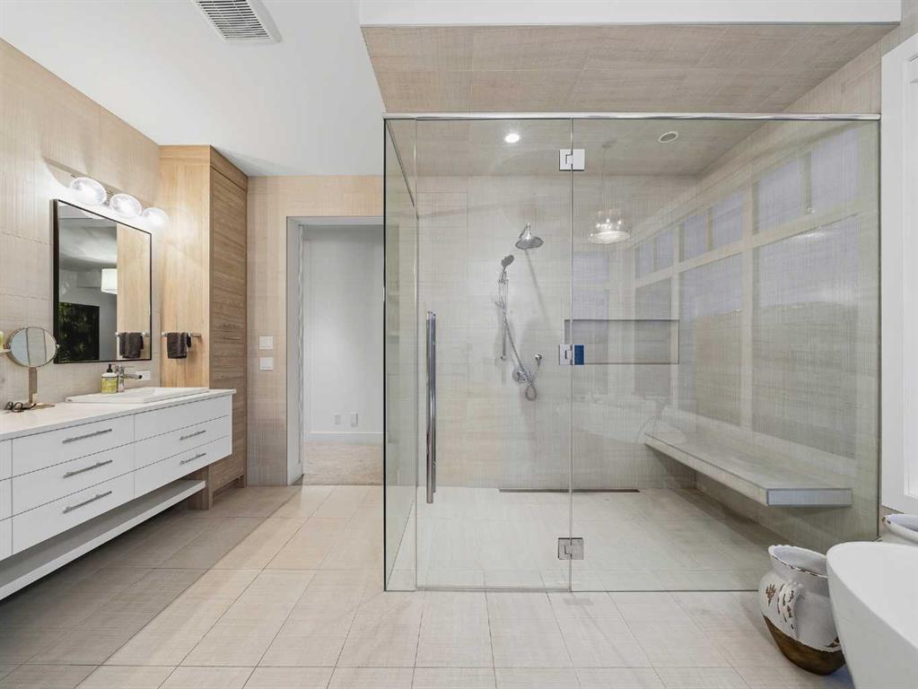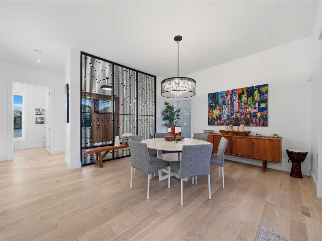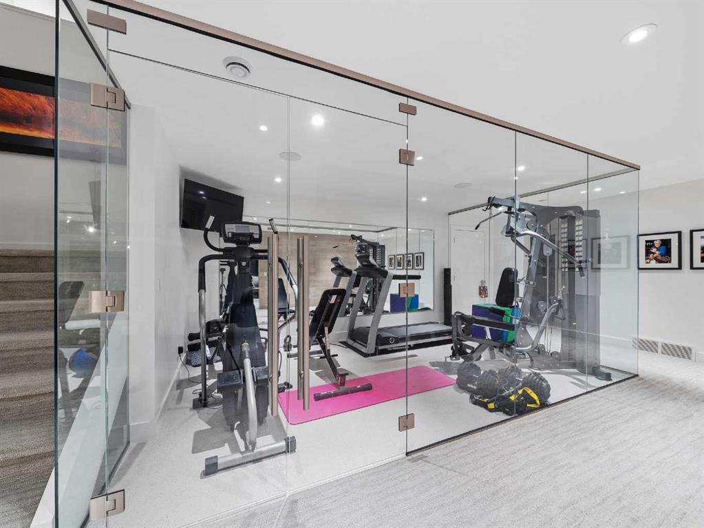 Designed specifically for this lot (7500+ sq.ft), the home showcases a bright and expansive layout with soaring ceilings and oversized windows that capture the surrounding views. The main living area is anchored by a striking FLOOR-TO-CEILING STONE FIREPLACE, creating a warm yet upscale focal point, while the open-concept design flows effortlessly into the dining space and CHEF-INSPIRED KITCHEN. There is also a dining area with access to the covered, heated deck/patio overlooking the ravine, as well as a private office. The kitchen features custom cabinetry, premium (SUB ZERO, BOSCH) stainless steel appliances including a gas cooktop and built-in wall ovens, and a clean, modern aesthetic that blends contemporary and transitional design. Every detail has been thoughtfully selected, with layers of light tones and high-end finishes carried throughout the home. Upstairs, you will find 3 LARGE BEDROOMS, each uniquely designed, including a stunning primary retreat with beautiful views and a spa-inspired ensuite complete with dual vanities, a freestanding soaker tub, and a glass shower. There is also a large SOUTH-FACING FAMILY/BONUS ROOM, another 5PC bathroom, a laundry room, and a wet bar. The fully finished lower WALKOUT level offers a spacious RECREATION/ENTERTAINMENT ROOM, a 4TH BEDROOM, a full bathroom, a custom WET BAR with built-in cabinetry, and a fully enclosed glass HOME GYM—an incredibly rare and impressive addition. There is also access to a covered patio and a beautifully landscaped backyard. Additional upgrades include IN-FLOOR HEATING in the basement, CENTRAL A/C, elevator rough-in, and a modern open staircase with glass railing. Often referred to as “Calgary’s best-kept secret,” this premier estate community is nestled along Fish Creek Park and the Bow River, and features countless trails and parks. Conveniently located just minutes from South Health Campus, Seton YMCA, numerous schools, restaurants, shopping centres, and more. Book your private viewing NOW!