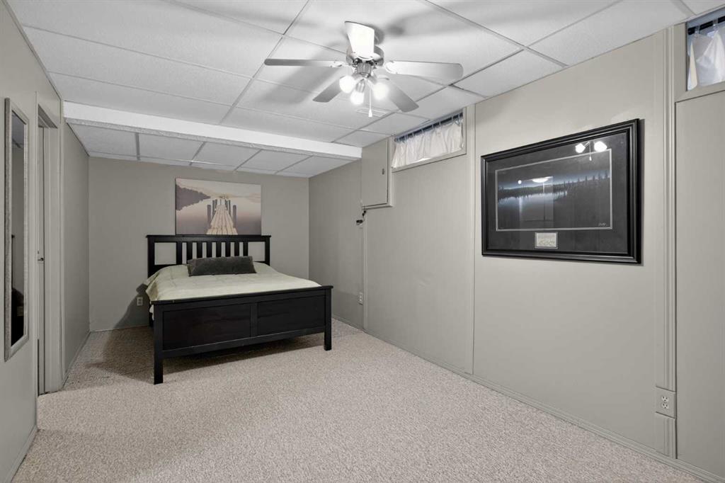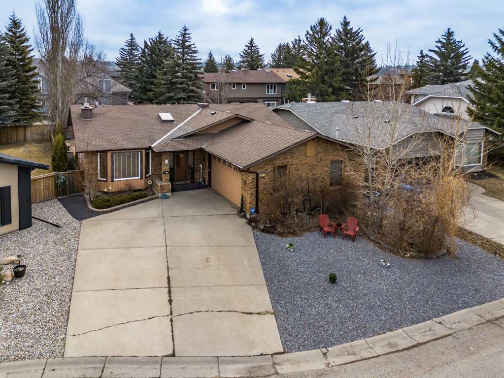 OPEN HOUSE SATURDAY APRIL 18 (12:00-2:00). Nestled on a quiet, tucked-away street in the prestigious ESTATES OF DEER RUN, this exceptional bungalow offers a rare combination of sophisticated upgrades and an unbeatable location just steps from the natural beauty of Fish Creek Park. The heart of the home is designed for both comfort and style, featuring elegant granite countertops, stainless steel appliances, and a main living area highlighted by unique antique mirror shelving and a cozy, remote-controlled gas fireplace. Natural light pours into the space through a skylight equipped with remote-controlled blinds, while the functional layout includes the convenience of main-floor laundry and a dedicated wet bar for seamless entertaining. With four spacious bedrooms and three bathrooms, the home offers plenty of room for a growing family, including a basement bedroom that was originally a sauna and can easily be reverted for those seeking a private spa retreat.
