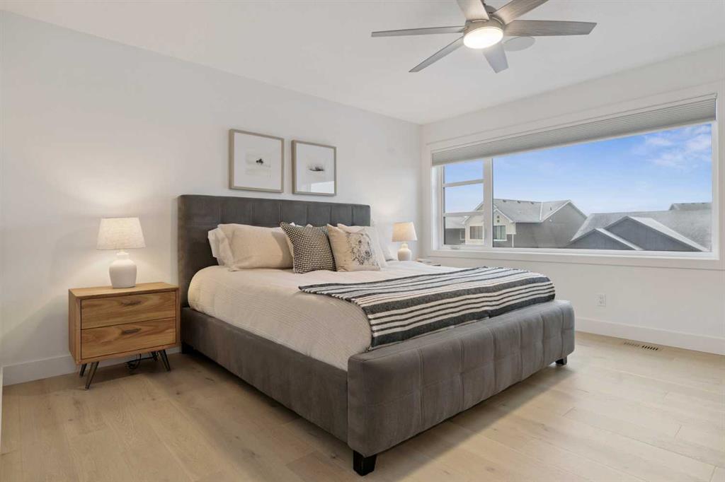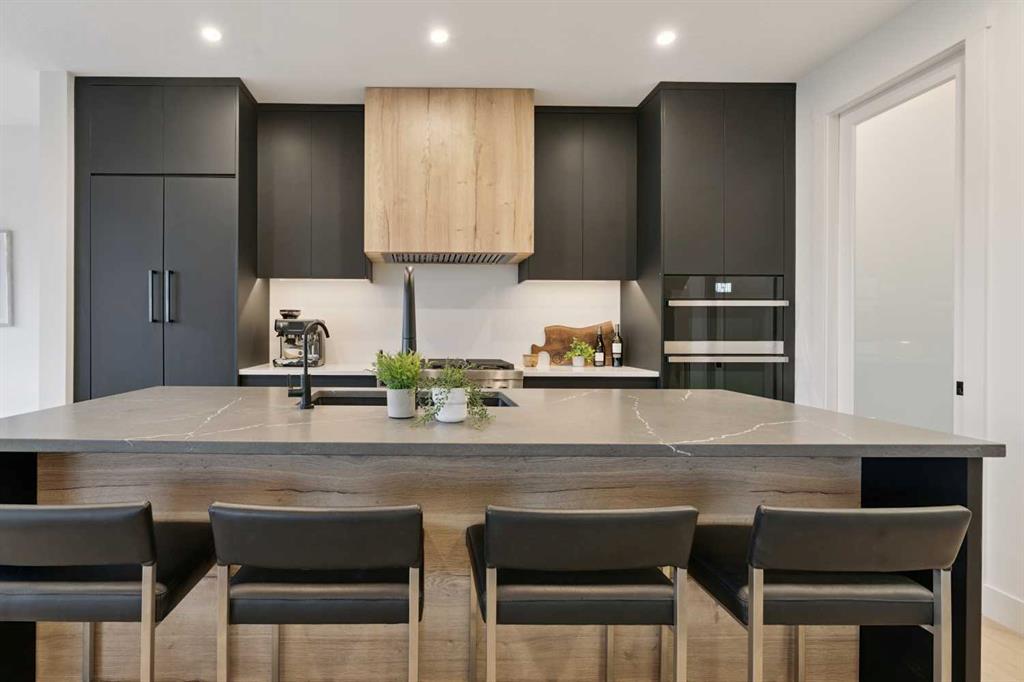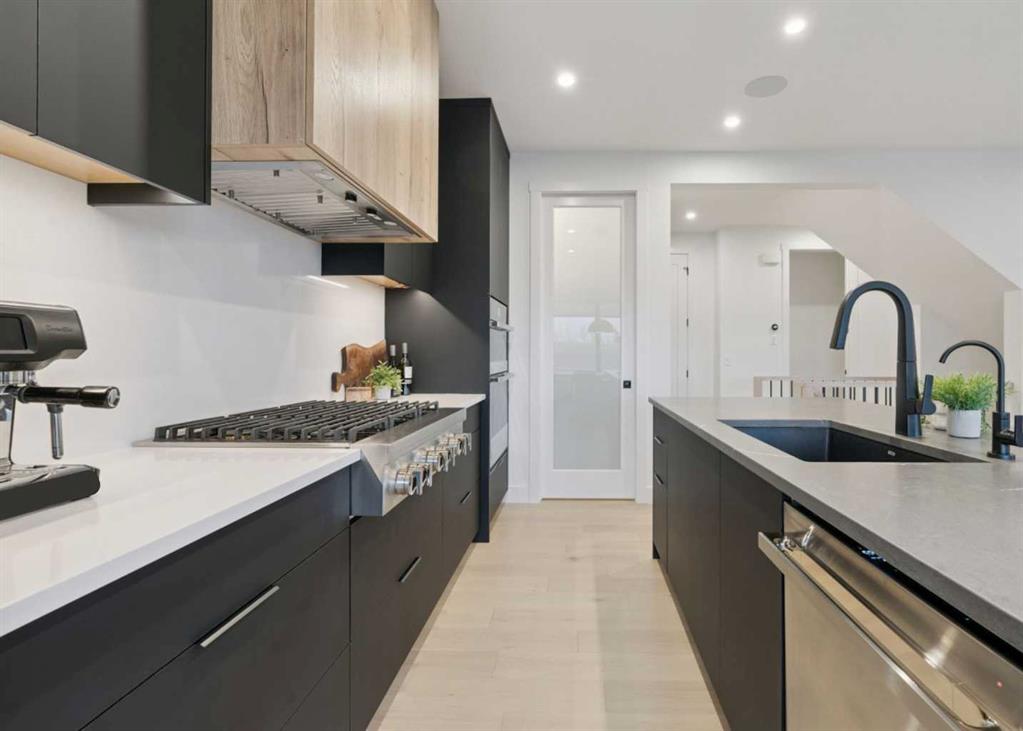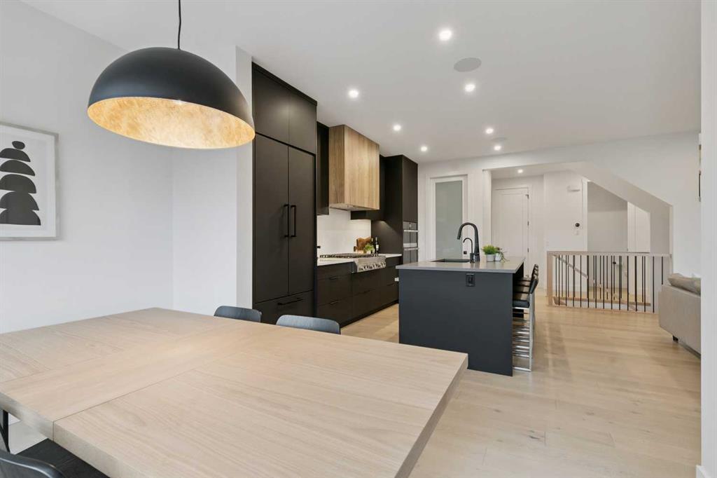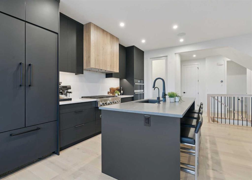 Welcome to this thoughtfully designed 2024-built, 1,975 ft² LIKE-NEW home offering 4 bedrooms, 4 bathrooms, and finished with PREMIUM UPGRADES throughout. The striking kitchen features matte black cabinetry, a matte quartz island, JennAir appliances including an integrated refrigerator, and a sleek modern aesthetic that anchors the main living space. Warm hardwood floors run throughout the home, including the staircase, creating a seamless and elevated feel.