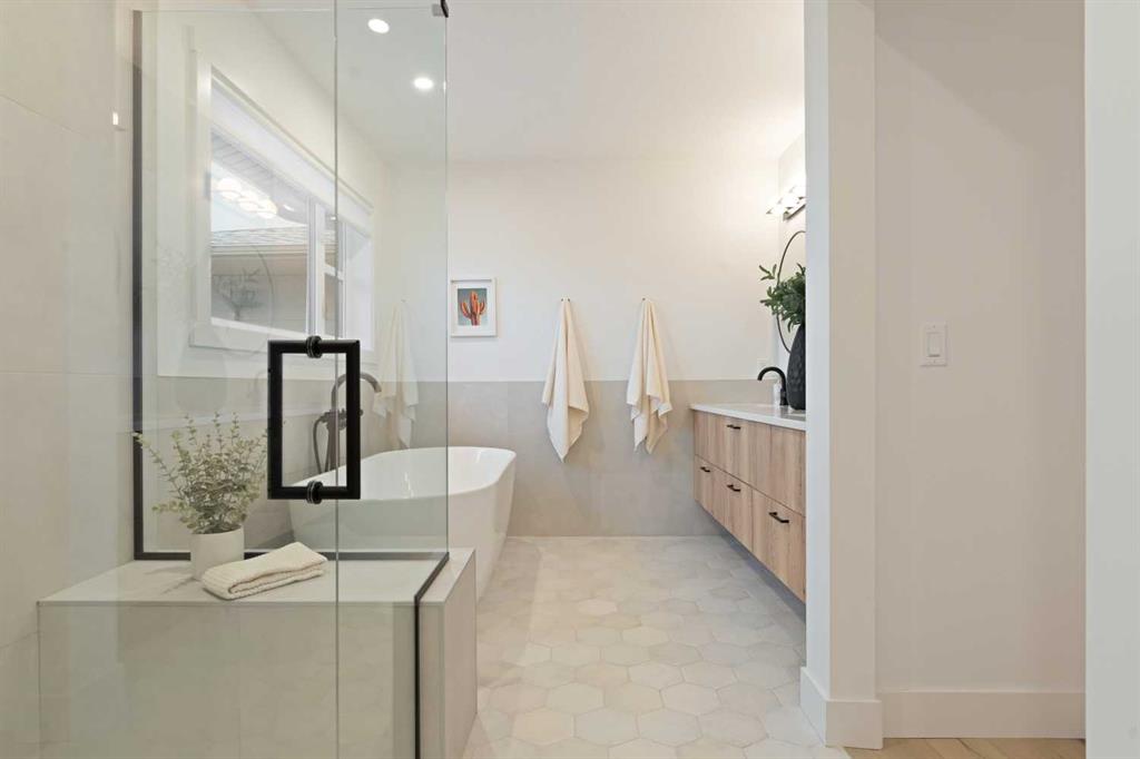 Upstairs, the second floor offers a bonus room, two additional bedrooms, and a beautifully appointed five-piece ensuite in the primary retreat featuring a floating double vanity and refined finishes. The laundry room is thoughtfully designed for convenience with access from both the primary walk-in closet and the main hallway.