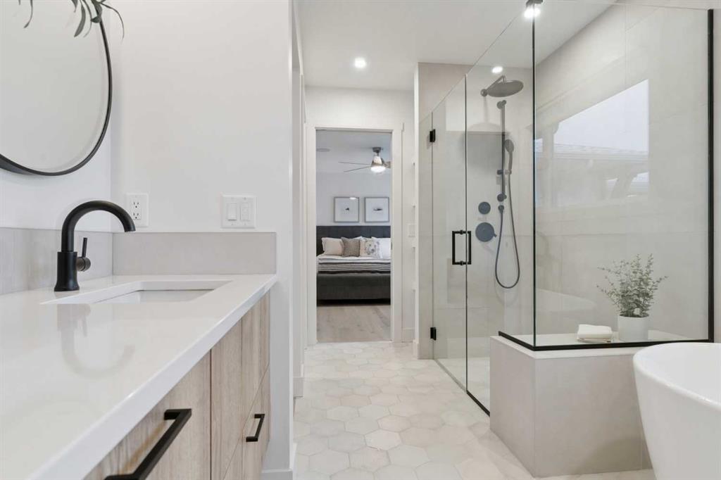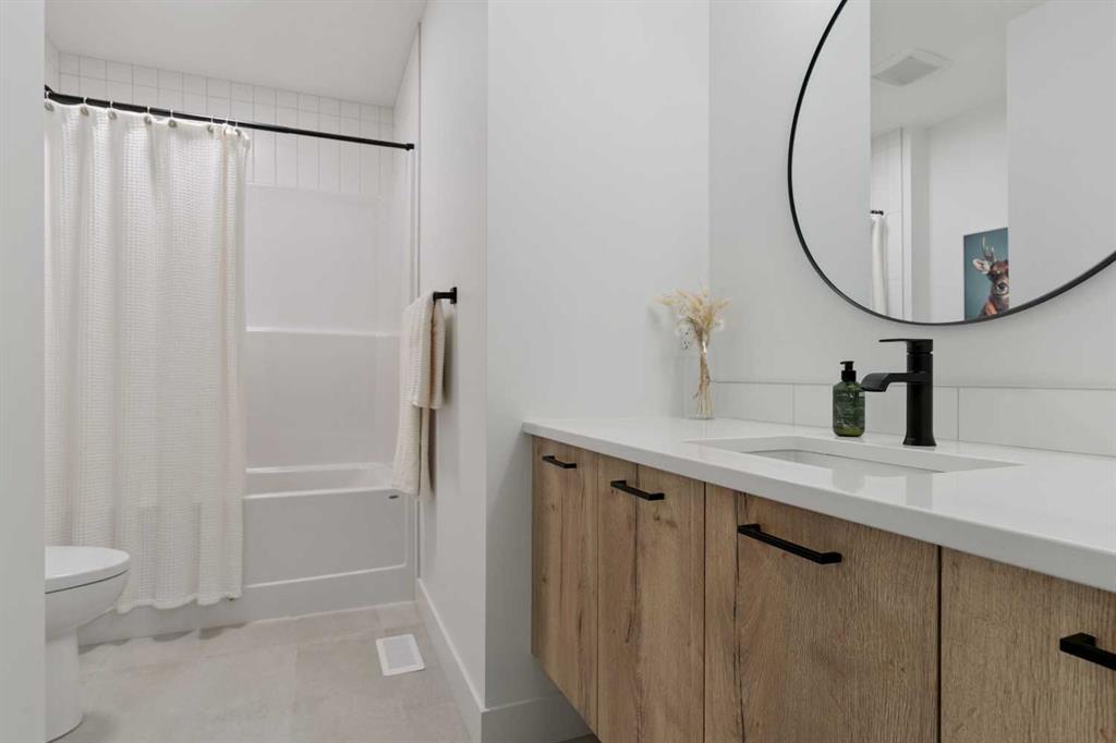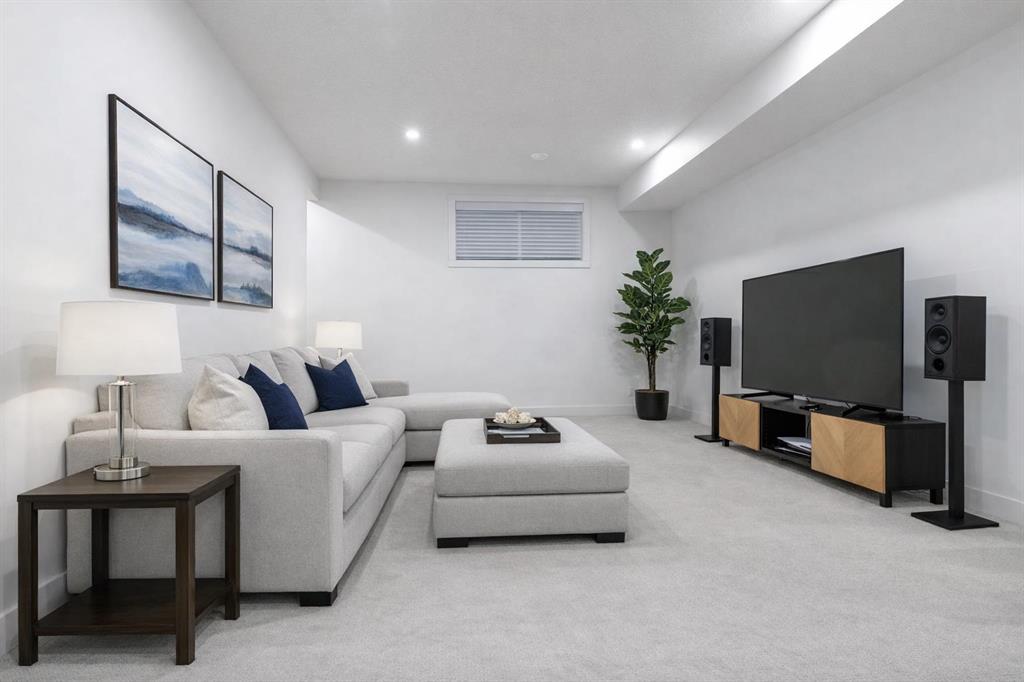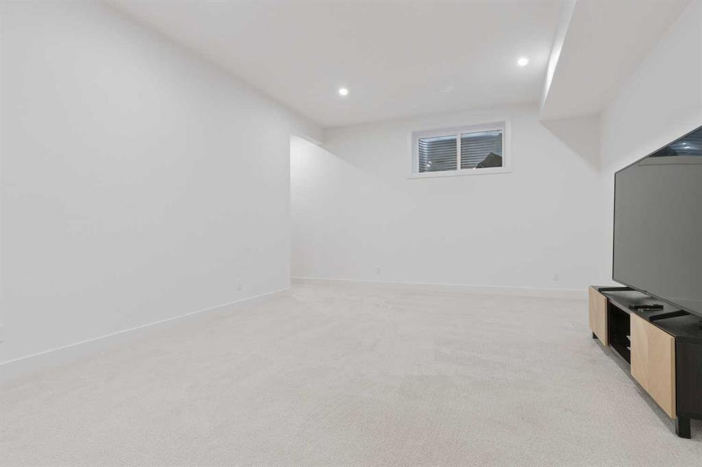 The fully finished basement features impressive 10-foot ceilings, plush carpet, an additional bedroom, and a four-piece bathroom, creating the perfect extension of living space.