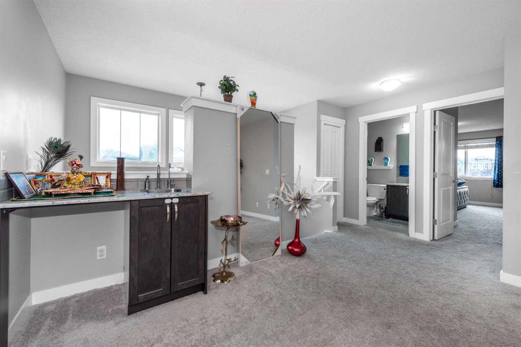Upstairs offers three generous bedrooms plus a versatile bonus room with a wet bar and filtered water tap—ideal for movies, gaming, or a family lounge. The primary suite features a walk-in closet and private ensuite, while two additional bedrooms share a stylish 4-piece bath.