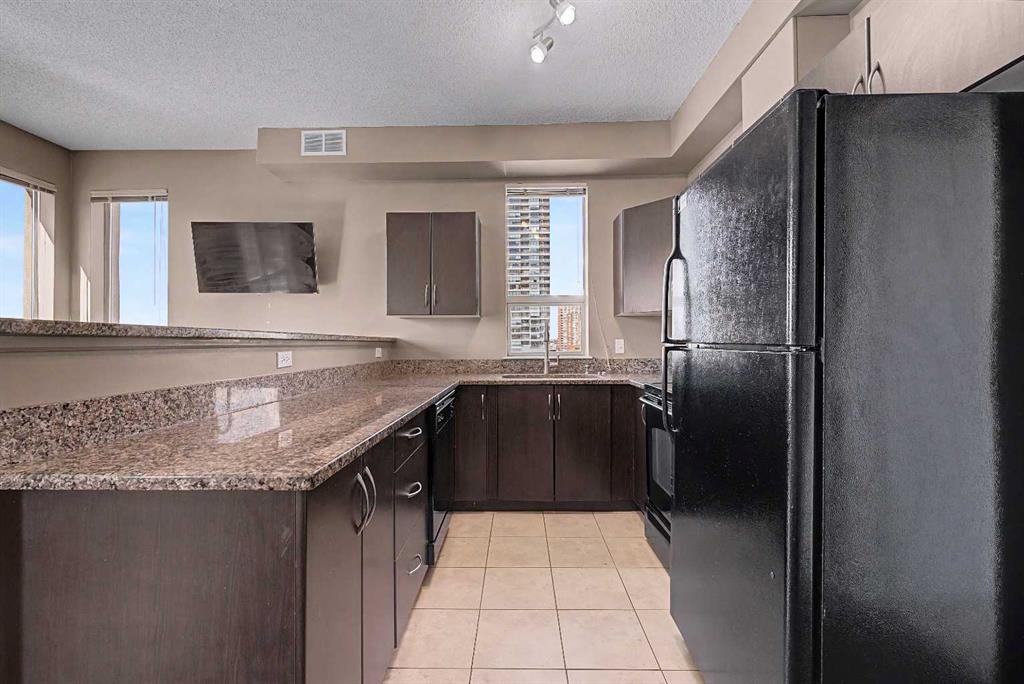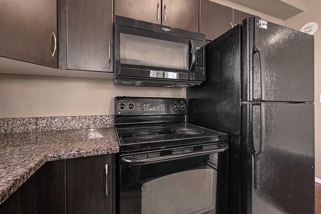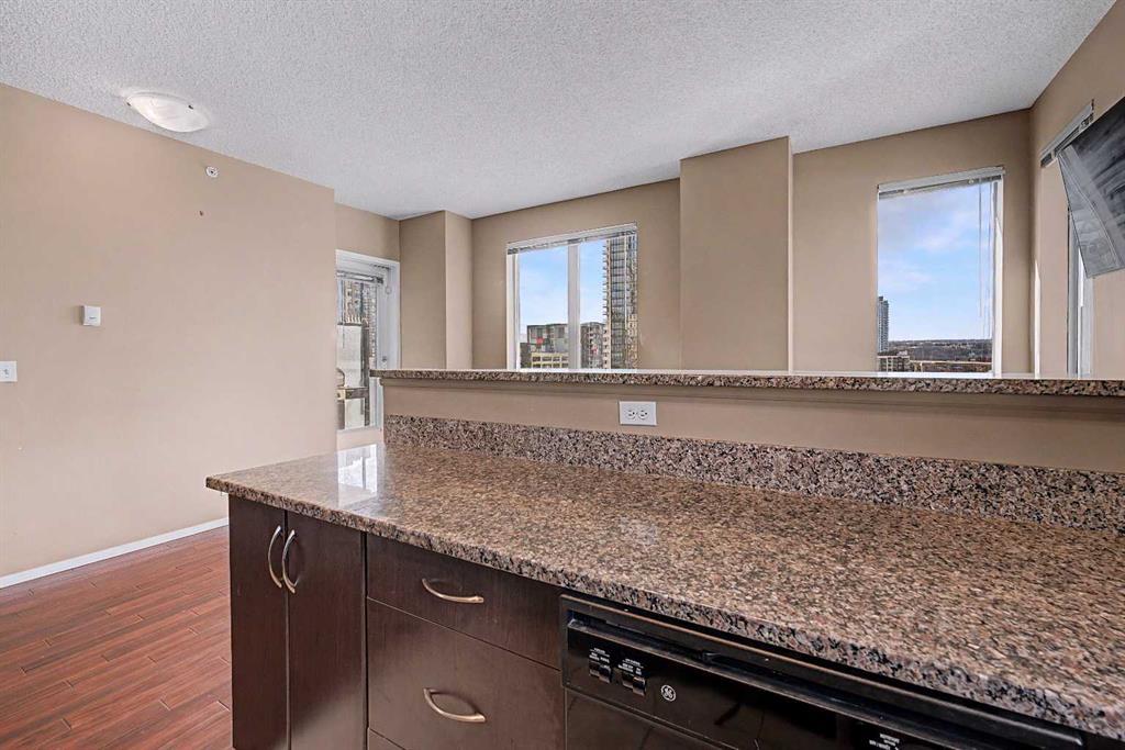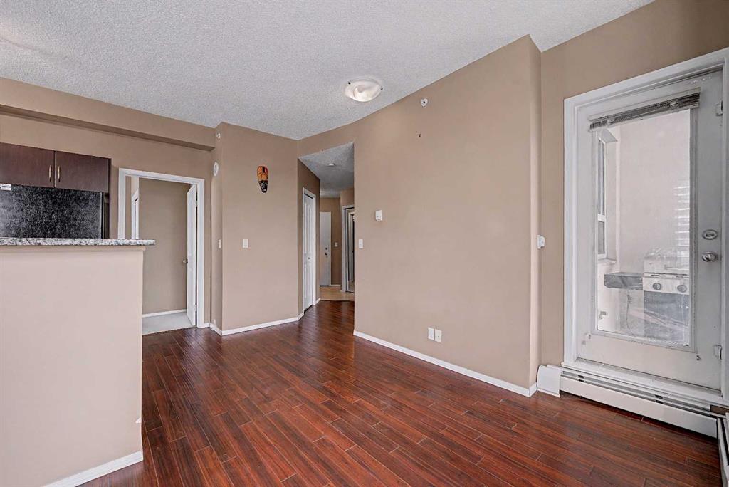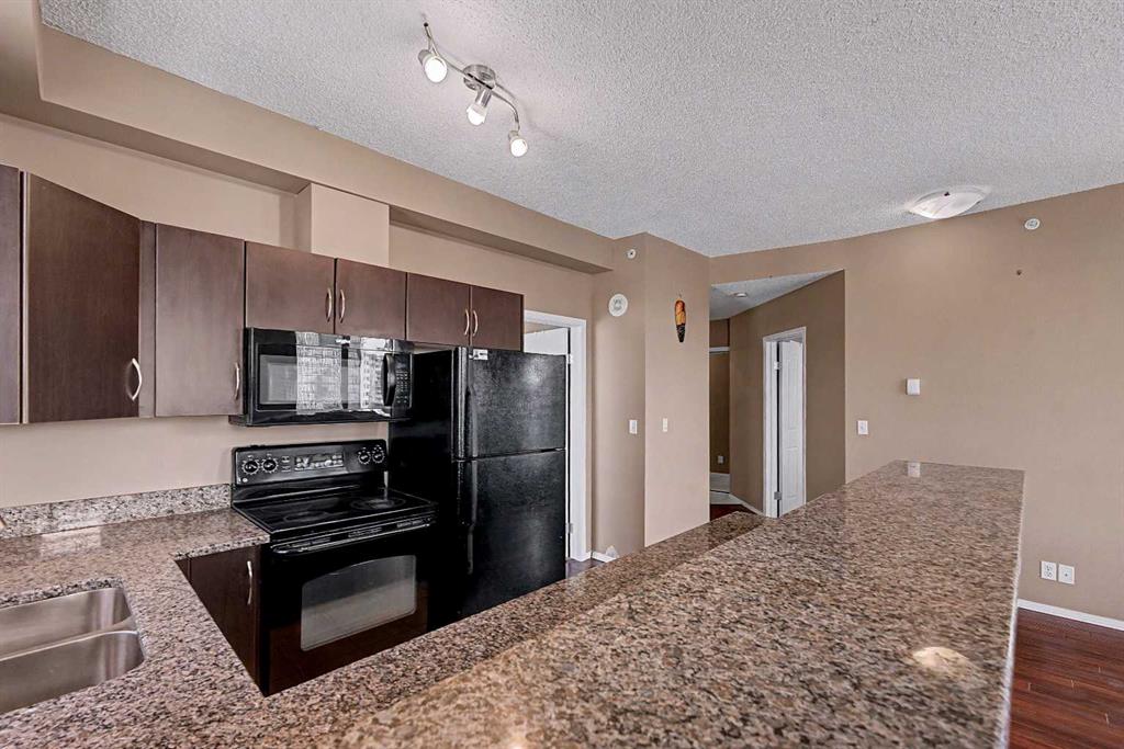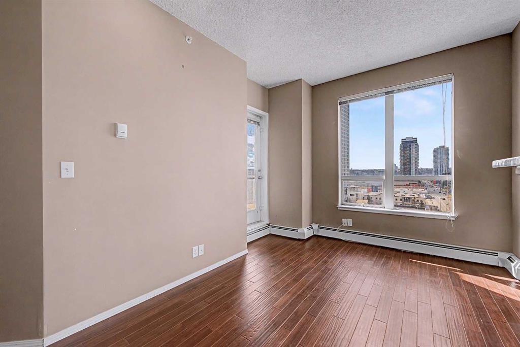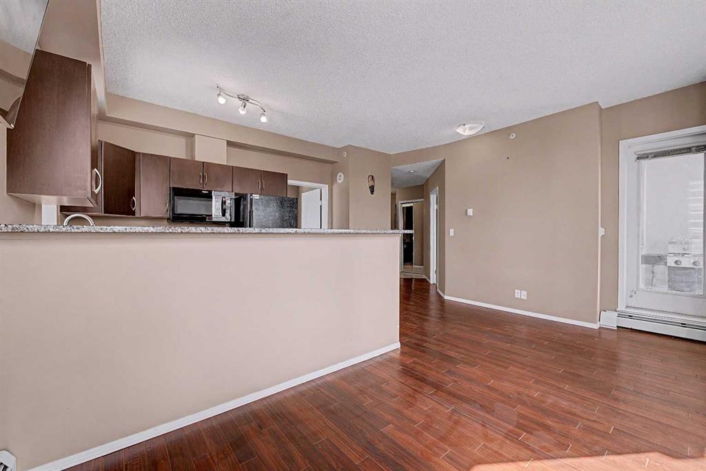 Prime unit in Vantage Pointe with west and north-facing views in the Beltline. This 2-bedroom, 1-bath condo offers 643 sq ft of open-concept living with 9 ft ceilings and finishes including granite countertops, tile, and engineered hardwood flooring. Both bedrooms have carpeting and the unit includes in-suite laundry. The balcony offers a gas hookup for BBQs. Includes secured underground heated parking (P3, Stall #89) located close to the elevator. Condo fees include electricity, heat, and water. Building amenities include a fitness centre, bike storage, and a party room. Great central location within walking distance to downtown, 17th Ave, bike paths, and nearby grocery stores. Book your showing today.