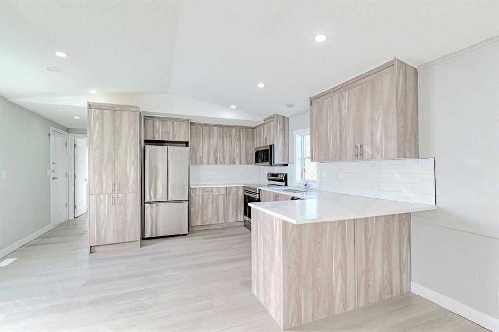 ***BRAND NEW SKIRTING has just been installed***BEAUTIFULLY RENOVATED: 3 bedroom and 2 bathroom home – nearly 1200 sq. ft located in the sought after park of Chateau Estates. This includes BRAND NEW KITCHEN with gorgeous custom cupboards, QUARTZ countertops, beautiful backsplash and BRAND NEW STAINLESS STEEL APPLIANCES! *** Brand new Luxury Vinyl Flooring throughout the whole home***New lighting throughout*** Bathrooms have been update with new toiles and vanities. The whole home has just been professionally painted. Brand new interior doors and baseboards everywhere! This spacious home is perfect for a family or someone that is looking to downsize and simplify life. The property comes with two decks, a patio and a large SHED! Extremely low pad fees ($630/month)! You have go to come here to view this NOW! Won’t last long!
