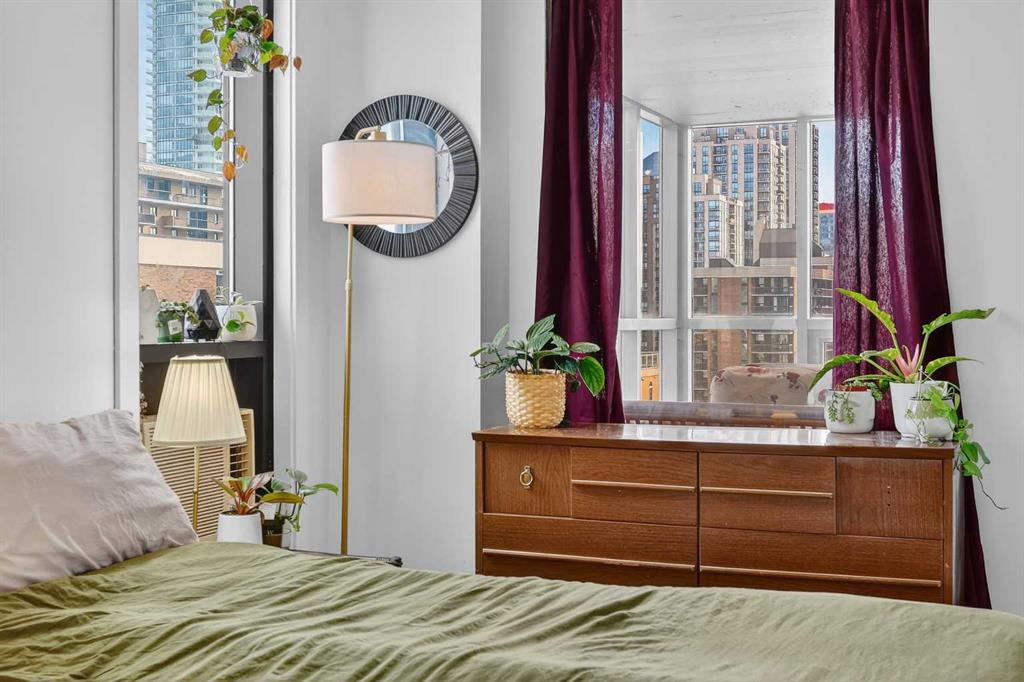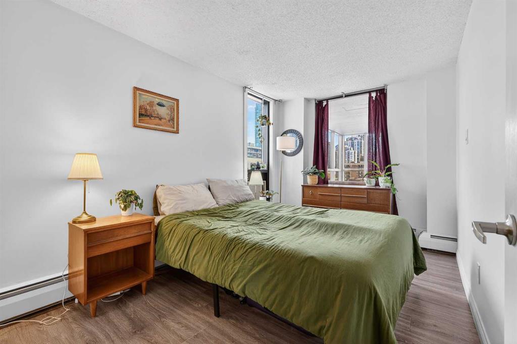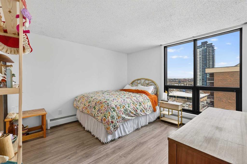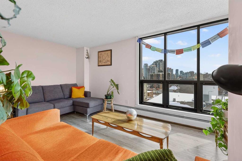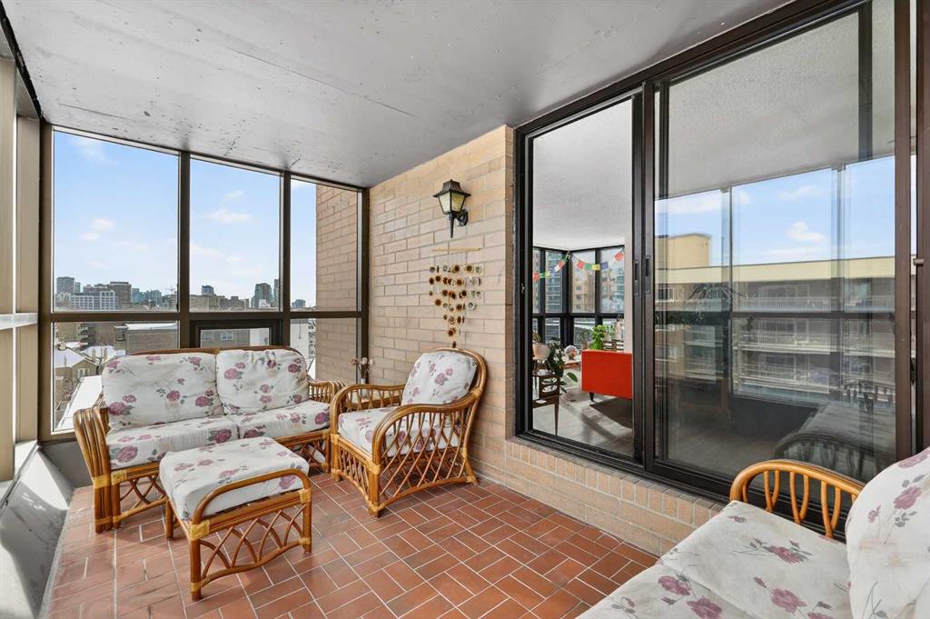 Offering an impressive range of amenities and set just minutes from downtown Calgary, this bright corner-unit condo showcases floor-to-ceiling windows that capture abundant morning light from its East exposure. The corner layout provides views in three directions, giving the home an airy, expansive feel. Inside, you’ll find a generous 931 sq ft open-concept floorplan with 9 ft ceilings, air conditioning, stylish oak cabinetry in both the kitchen and bathroom, and durable laminate and tile flooring throughout. Both bedrooms are comfortably sized with ample closet space, and the 4-piece bathroom includes a convenient cheater door connecting directly to the primary bedroom. Enjoy the luxury of a fully enclosed balcony/sunroom that can be used year-round—an ideal spot to unwind or let your plants flourish. Additional perks include in-suite laundry, a heated underground parking stall with a winter plug, and a separate storage locker. The Huntsman is a professionally managed, pet-friendly building pending board approval offering an impressive list of amenities: a fitness center, sauna, tennis courts, pickleball court, rooftop terrace, and community garden. Recent upgrades include modernized elevators and a refreshed lobby. Its prime location puts you within walking distance of downtown, close to the river pathways for jogging, and just a few blocks from the shops and restaurants along 17th Ave. With easy access to recreation, conveniences, and urban attractions, this unit delivers the comfortable, connected lifestyle you’re looking for.