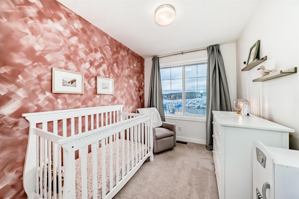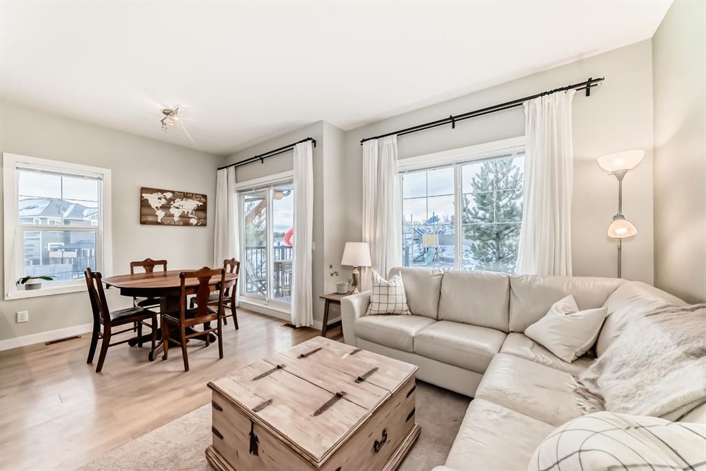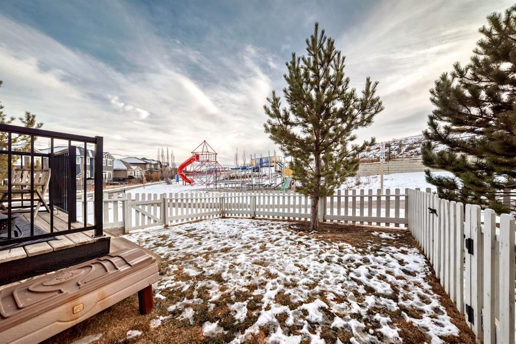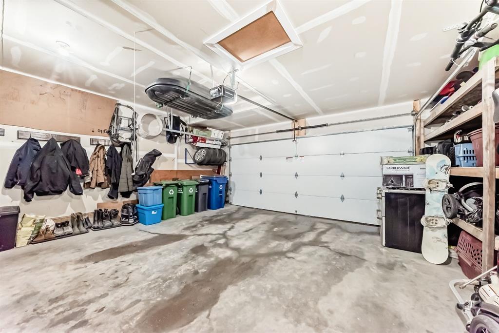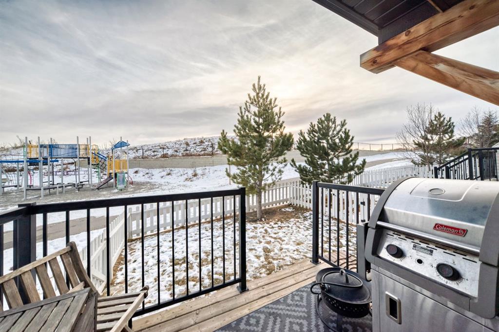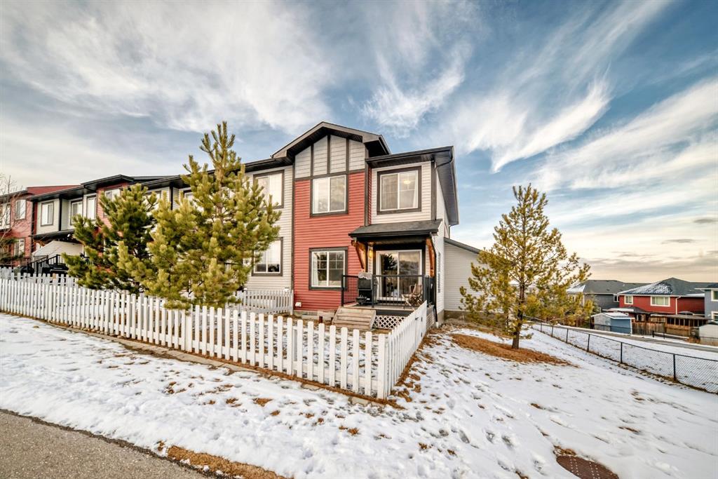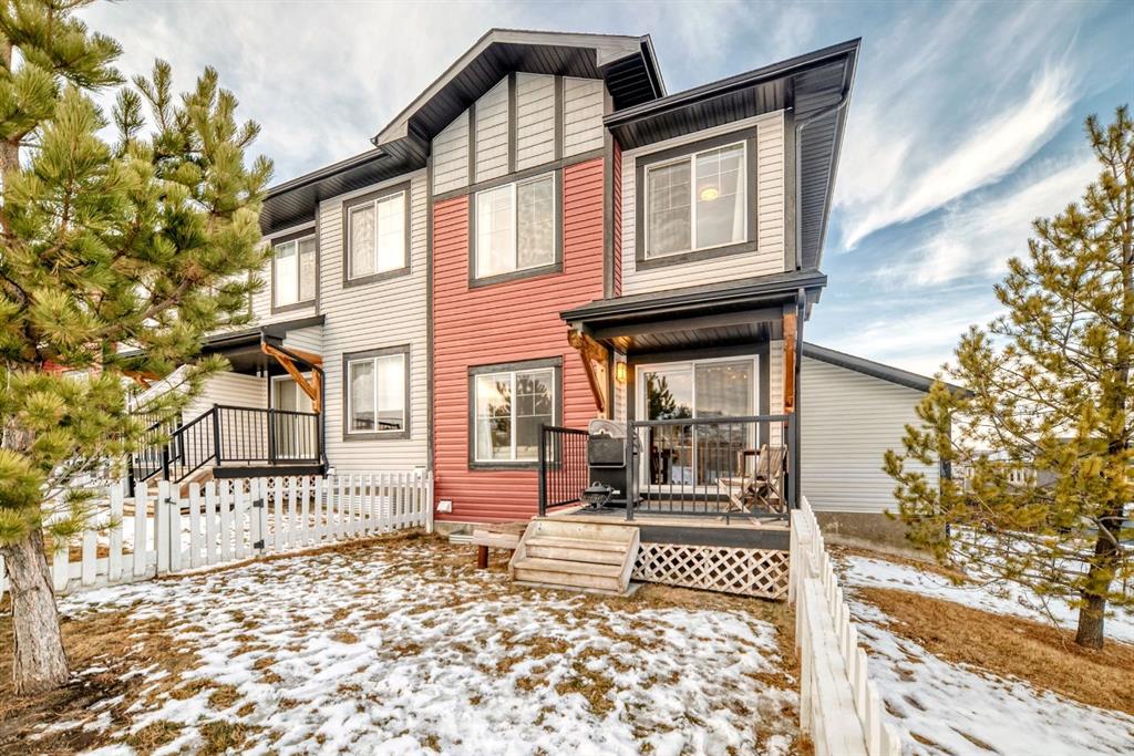Rare opportunity in Jumping Pound! location, location, location! Beautifully maintained and updated End Unit townhome with 1,156 sq. ft of well though out living space, and backing directly onto South facing green space and a playground, with no neighbours behind. This sought after home features a rare double attached garage, open plan kitchen/dining/living room with easy access to the south facing backyard from the dining area, and abundant natural light throughout. Upstairs offers a primary bedroom with walk in closet and ensuite, plus two additional good sized bedrooms, a full family bathroom, and convenient upper level laundry. Steps from walking and biking paths and just minutes to the Bow River; ideal for outdoor enthusiasts and commuters alike.