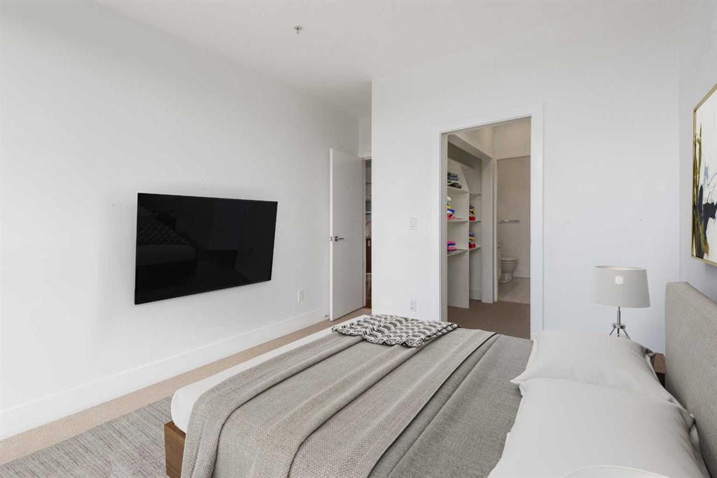 Experience refined inner-city living in this beautifully appointed 2 bedroom condo offering floor to ceiling windows and SPECTACULAR west-facing MOUNTAIN views! Designed with a sleek contemporary aesthetic, this home features quartz countertops, stainless steel appliances, CENTRAL A/C, and convenient in-suite laundry which is BRAND NEW! The thoughtfully designed layout places the two bedrooms on opposite sides of the spacious living area, ideal for privacy, guests, roommates, or a home office setup. The primary suite is a true retreat, complete with a generous walk-through closet and a large ensuite bathroom featuring a deep soaker tub and separate glass shower. Step outside to the well-sized balcony equipped with a gas BBQ line which is perfect for summer evenings while taking in the views! Complete with an oversized titled stall in the heated underground parkade and visitor parking, this is an exceptional opportunity for professionals, downsizers, or investors seeking style, convenience, and value in one of Calgary’s most walkable urban communities.