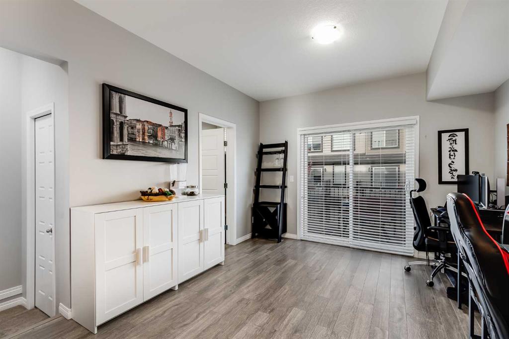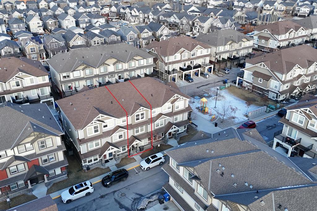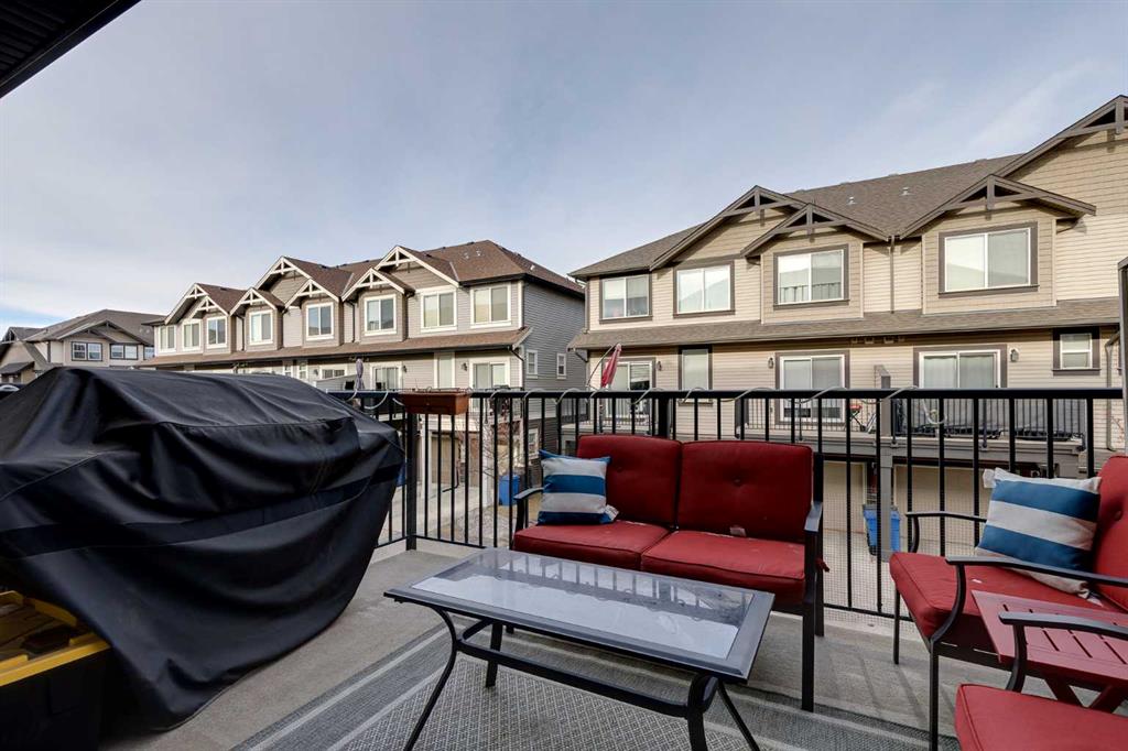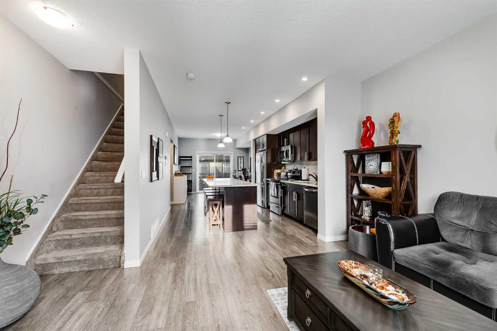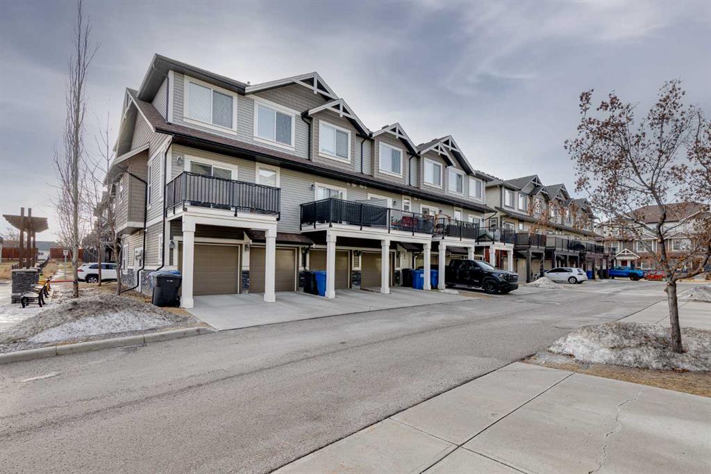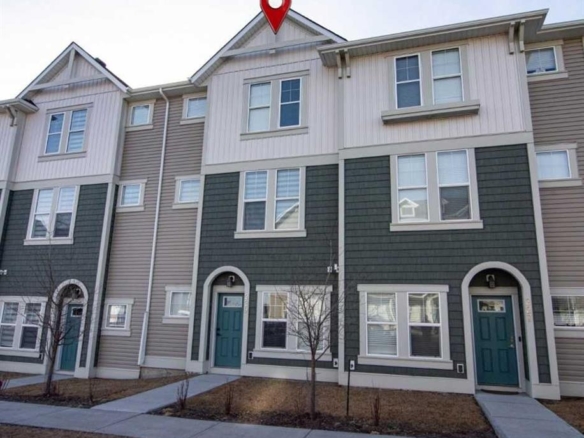 Bright and open 2-bedroom townhome in the community of Williamstown. An excellent value with condo fees that include the Airdrie monthly water and sewer bill. Before you enter you’ll notice the playground right beside the home, and the visitor parking stalls right in front, making it ideal for guests. The entry level offers a 40′ Long OVERSIZED DOUBLE GARAGE, plus driveway, allowing parking for up to 3 vehicles, plenty of storage, and a rare additional access door from the garage to the back, making taking out the garbage very easy! The open-concept main floor is complete with 9-foot ceilings, upgraded cabinetry, quartz countertops, stainless steel appliances, and an impressive 10 FOOT LONG KITCHEN ISLAND making for lots of counter space. Central AIR CONDITIONING makes this home comfortable all year round. The dining area is large enough for a big table, and with the balcony right here, it makes for the perfect space for entertaining. The living room features an electric fireplace and A main floor half-bath completes this level. Upstairs, the third floor features a large primary suite, including a walk-in closet and a 4-piece en-suite with Double Sinks. The second bedroom is also a great size and features double closets. The upstairs is complete with the main 4-piece bathroom, and UPPER LAUNDRY. In the community of Williamstown you can enjoy the environmental reserves thats just steps away with wetlands, walking paths, playgrounds. You’re also just a short walk from Herons Crossing K-8 School. Book your showing today!