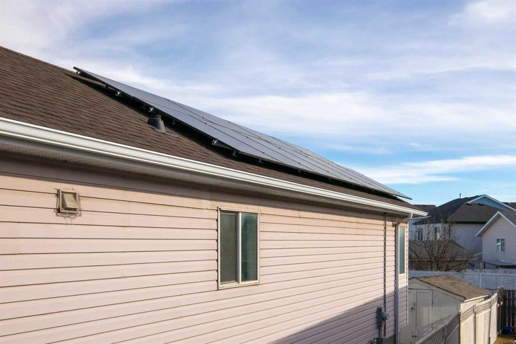 ORIGINAL OWNERS. This home features Beautiful Curb Appeal. A FORMER POPULAR DESCON HOMES SHOWHOME. IN THE FALL OF 2025 THE SELLER INVESTED NEARLY $50,000 TO ENJOY THE EFFICIENCY OF A MODERN 11 PANEL SOLAR SYSTEM. THIS SYTEM POWERS THE HOUSE AND THE EXTRA POWER GOES BACK TO THE GRID!!! . Three bedrooms up with a Private 2-pce ensuite with cultured marble sink and modern Dual-Flush toilet. The Main 4-pce bath is enhanced with Telephone Shower Head; Also features Cultured Marble Sink; Ceramic Tiled Floor and Tub Surround also Dual-Flush toilet. The Kitchen features Double Stainless Steel Sink and Vented Hood Fan. The Dining Room just off the Kitchen over looks the Very Popular Lower Living Room with 16′ Ceiling. The Bay Window enchaces the the flow of light into this Main & Lower floor. The very open Lower Level could possibly give the buyer the opportunuty to Modify the Living Room to a Traditional Main Floor LIVING Room and create a Lower Basement Suite with City Of Calgary Approval. Currently a Spectacular 16′ Vaulted View from Lower Living Room. Located opposite a Cul-de-Sac with a Cute Park. Great Location; On a bus Route; East access to 68 Street; Stony Trail and Trans Canada Highway. Monterey Park is a Very Popular and well Liked Residential Area with School and Community Centre very Close at hand. Easy access and mere Minutes to Popular SUNRIDGE MALL; COSTCO; MARLBOROUGH MALL AND EAST HILL SHOPPING CENTRE.