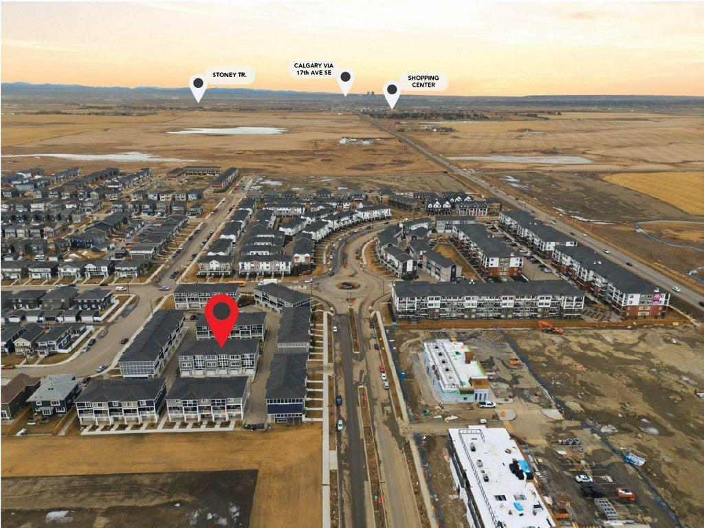Welcome to this beautifully appointed 2-bedroom, 2.5-bath townhouse in the Chelsea community of Chestermere, built in 2023 and designed for modern living. Located in a vibrant, family-friendly community, this home offers exceptional style, comfort, and convenience. Step inside to an open and contemporary floor plan featuring bright living spaces, high-quality finishes, and thoughtful upgrades throughout. The kitchen showcases sleek cabinetry, quartz countertops, stainless steel appliances, and a spacious island perfect for cooking and entertaining. Upstairs, you’ll find two generously sized bedrooms, each with its own bathroom—ideal for privacy, guests, or a roommate setup. Custom premium window blinds add a stylish touch while enhancing privacy and light control. Enjoy year-round comfort with central air conditioning, already installed for your convenience. Additional highlights include a private balcony, an attached garage, in-suite laundry, and low condo fees, making this home an excellent option for first-time buyers, down-sizers, or investors seeking low-maintenance living. Move-in ready and impeccably maintained, this 2023-built townhouse offers the best value in Chestermere living—modern, efficient, and close to parks, schools, shopping, and the lake.