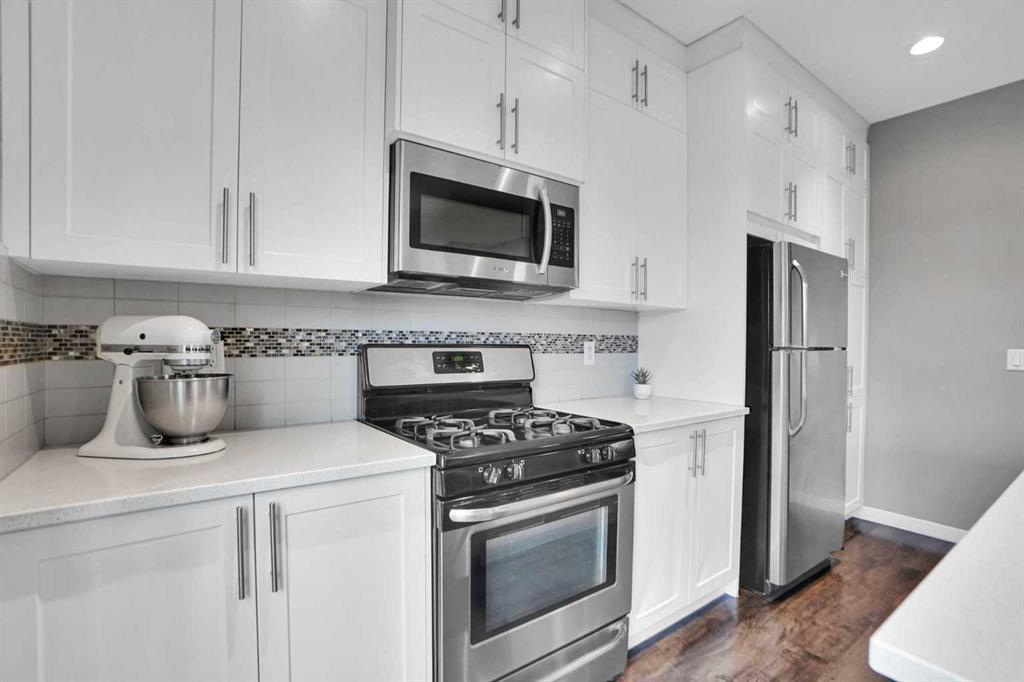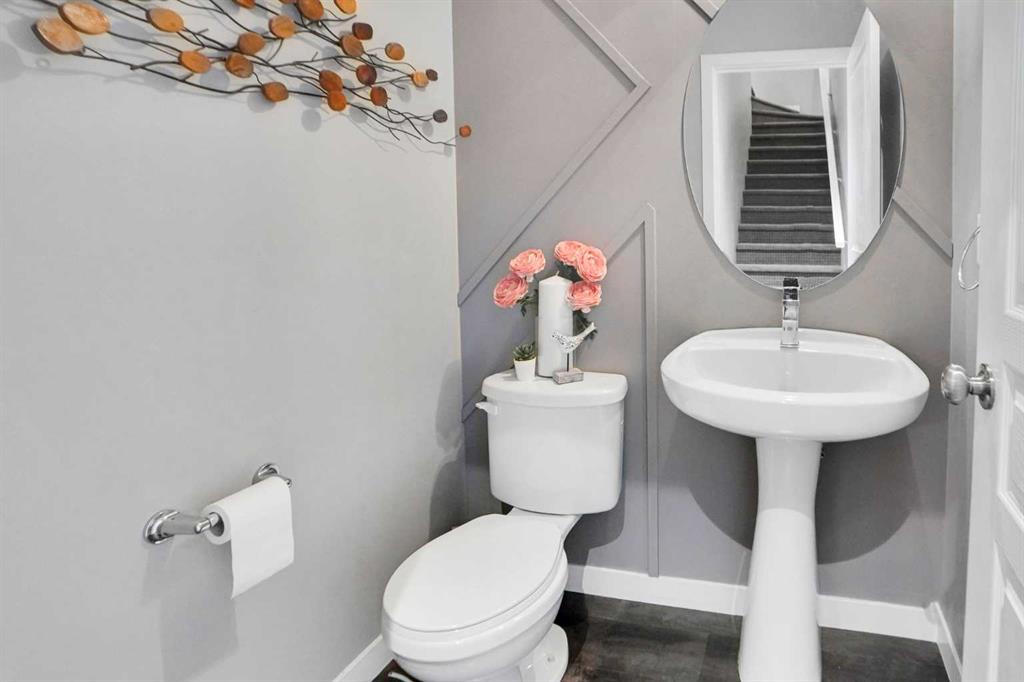 This east facing home welcomes you with an open concept layout. As you enter, you are met by a decent size foyer. You will love the gleaming LVP flooring on the main floor. Your new kitchen boasts lots of full height cabinetry and a built-in pantry, A DECENT SIZE KITCHEN ISLAND WITH QUARTZ COUNTERTOPS, all stainless steel appliances Gas Stove, Refrigerator, microwave Hood fan, Dish-washer, washer & dryer & Central A/C. The dining area is just off the kitchen with plenty of space for a large table. The spacious living room is flooded with tons of natural light. A 2-piece washroom completes the main floor.
