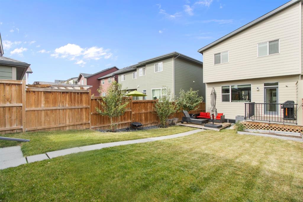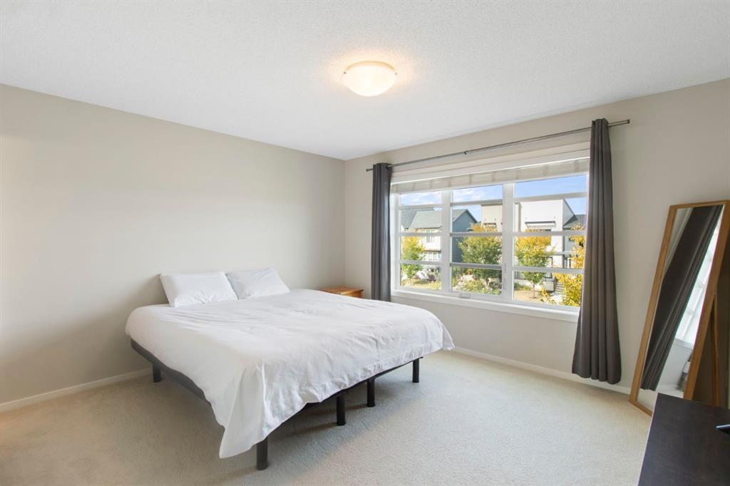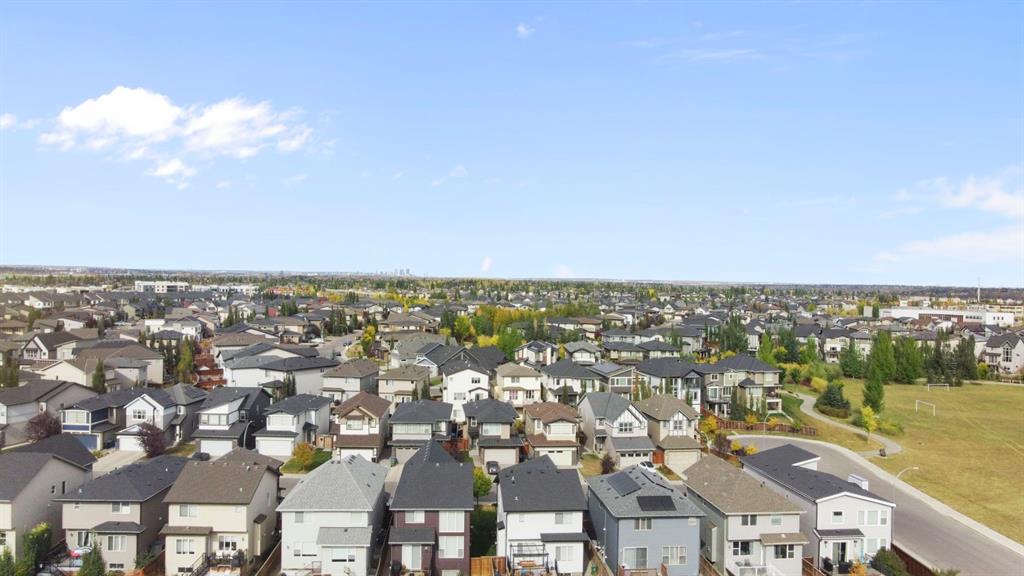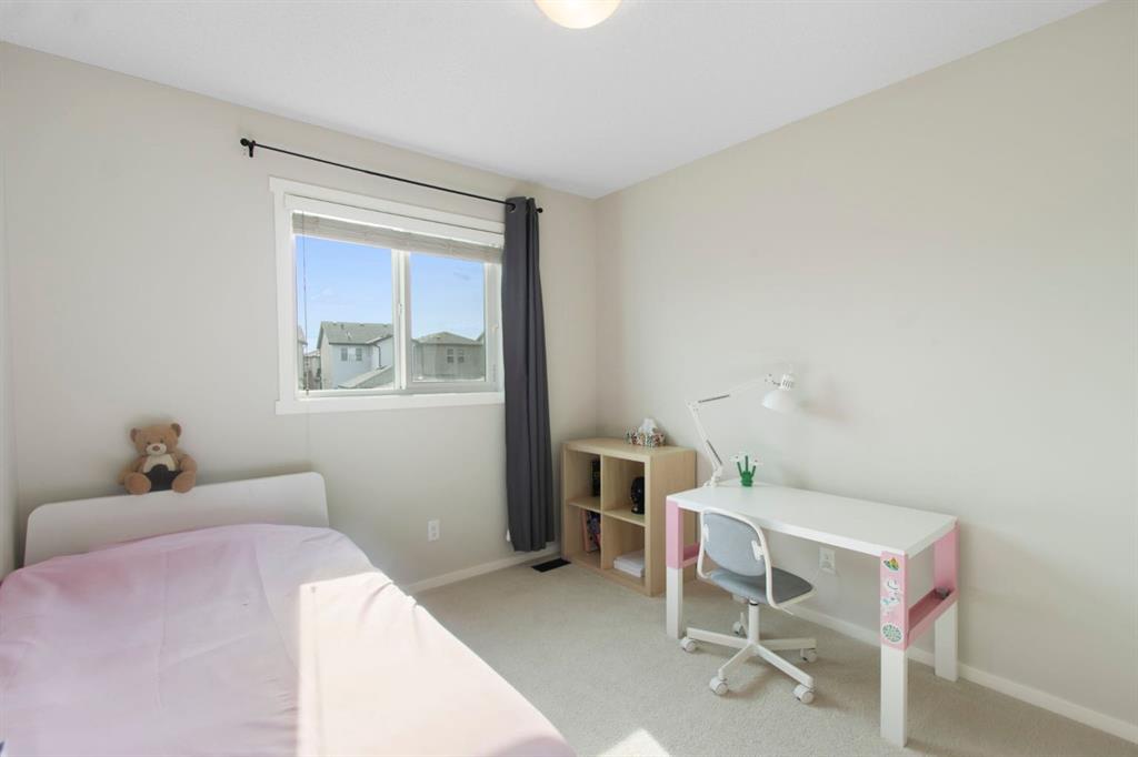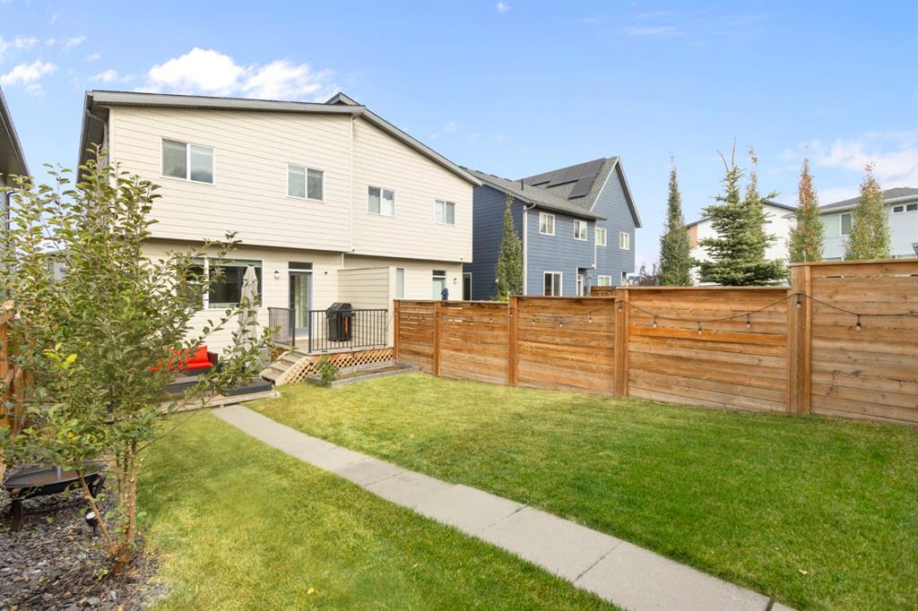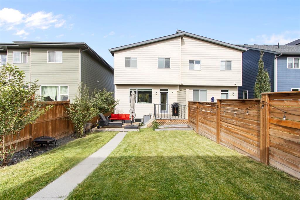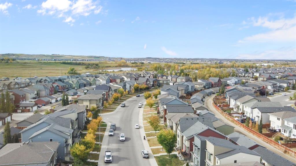 Located kitty corner to a large field, this four-bedroom, four-bathroom, fully developed home in Walden showcases pride of ownership throughout. Entering the home you’re welcomed with a large floor to ceiling window flooding the living room with natural light. The living room seamlessly opens into the centre-positioned kitchen, which features quartz countertops, ceiling height cabinets, stainless steel appliances and ample storage. The dining room has another generous SOUTH facing window that overlooks your large backyard. The main floor is complete with a 2 piece bathroom and back entry. Heading upstairs your primary retreat allows room for a king size bed, has a walk in closet and 3 piece en suite. There are an additional two bedrooms upstairs that share a 4 piece bathroom. Heading into your developed basement, you’ll find an additional recreation space/family room, your fourth bedroom, a 3 piece bathroom, a laundry room, and a storage/utility room. Heading outside you have a huge backyard with south exposure for maximum sunlight accompanied by a deck for all your patio furniture. This home is upgraded throughout with kitchen cabinets to the ceiling, a floor-to-ceiling front bay window, and air conditioning; it is in like new condition. This home is conveniently positioned across from a large field, just 2 turns away from the Legacy shopping centre and allows quick access to Macleod Trail.
