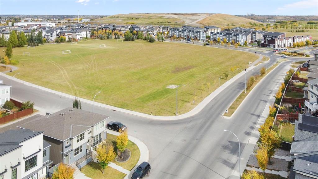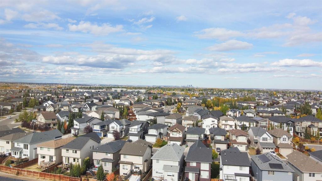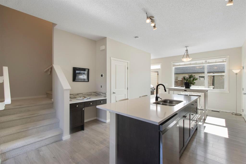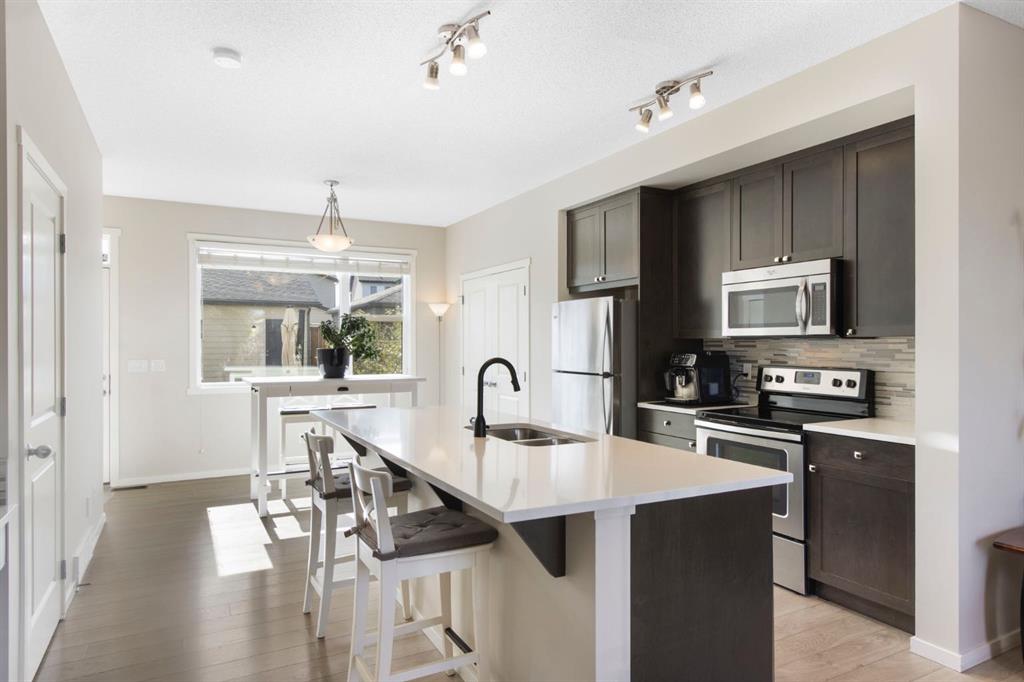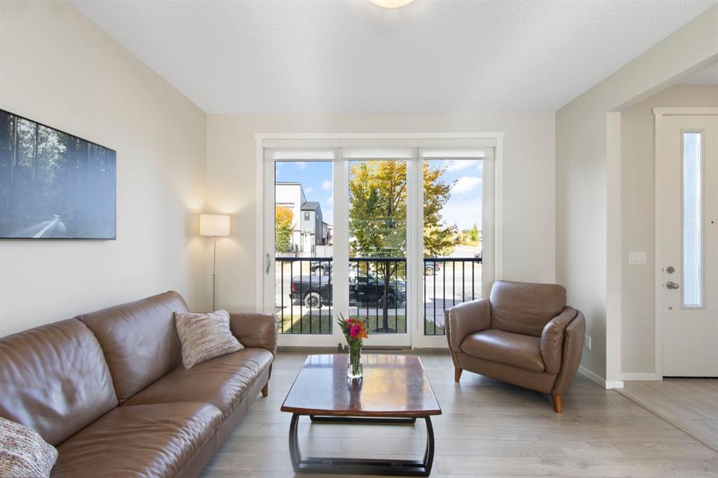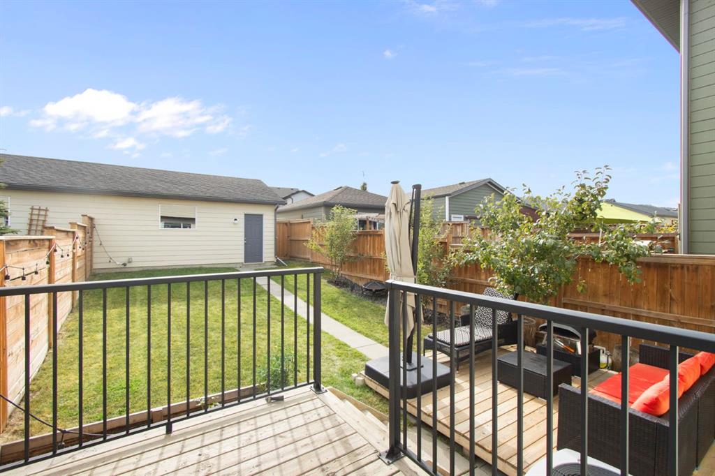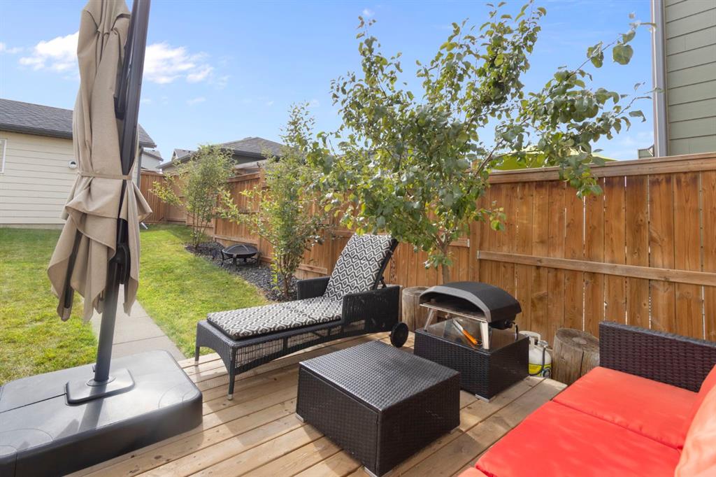 Located kitty corner to a large field, this four-bedroom, four-bathroom, fully developed home in Walden showcases pride of ownership throughout. Entering the home you’re welcomed with a large floor to ceiling window flooding the living room with natural light. The living room seamlessly opens into the centre-positioned kitchen, which features quartz countertops, ceiling height cabinets, stainless steel appliances and ample storage. The dining room has another generous SOUTH facing window that overlooks your large backyard. The main floor is complete with a 2 piece bathroom and back entry. Heading upstairs your primary retreat allows room for a king size bed, has a walk in closet and 3 piece en suite. There are an additional two bedrooms upstairs that share a 4 piece bathroom. Heading into your developed basement, you’ll find an additional recreation space/family room, your fourth bedroom, a 3 piece bathroom, a laundry room, and a storage/utility room. Heading outside you have a huge backyard with south exposure for maximum sunlight accompanied by a deck for all your patio furniture. This home is upgraded throughout with kitchen cabinets to the ceiling, a floor-to-ceiling front bay window, and air conditioning; it is in like new condition. This home is conveniently positioned across from a large field, just 2 turns away from the Legacy shopping centre and allows quick access to Macleod Trail.