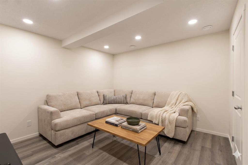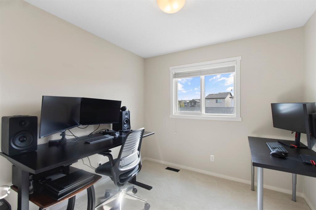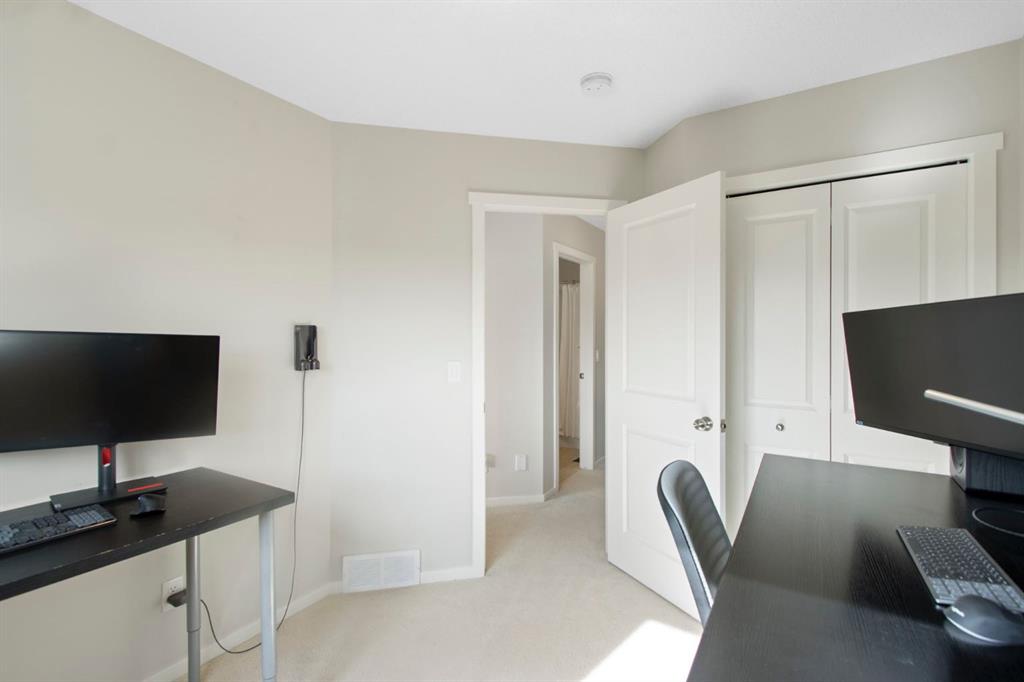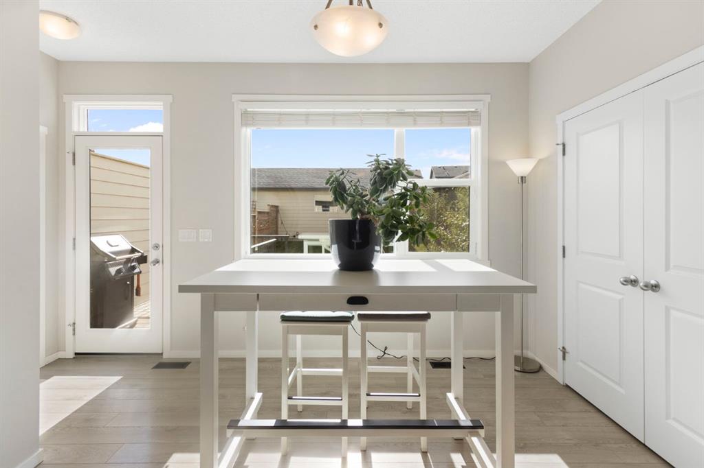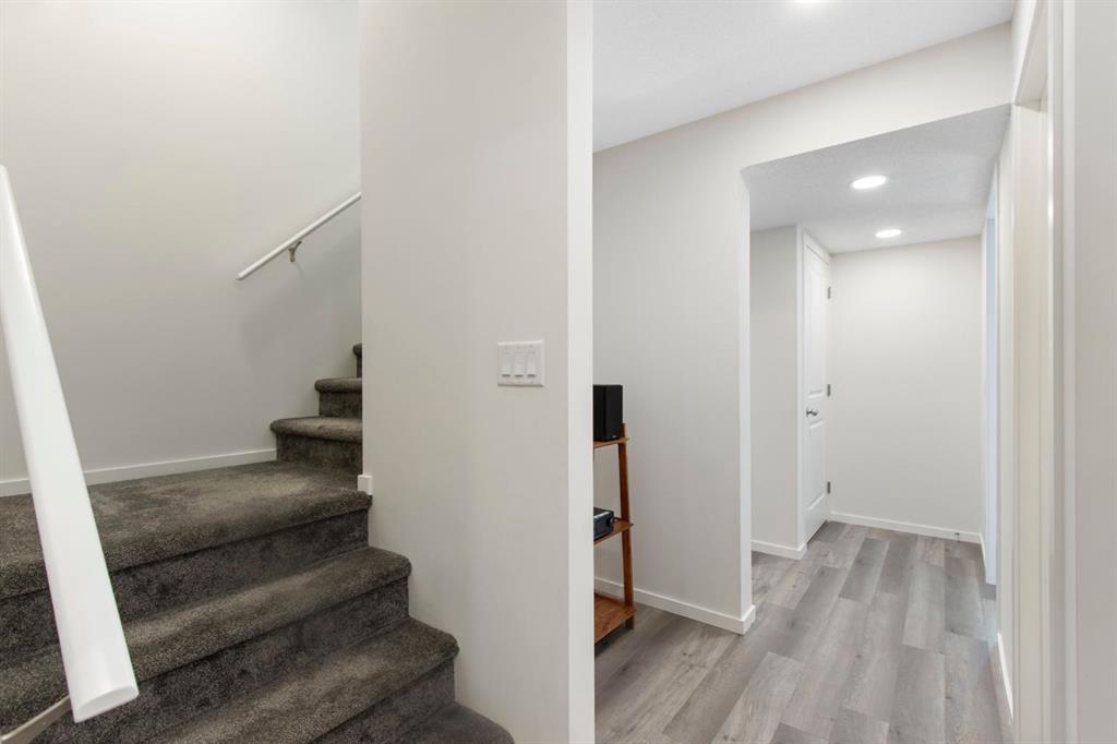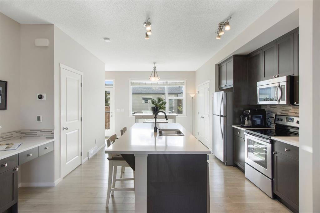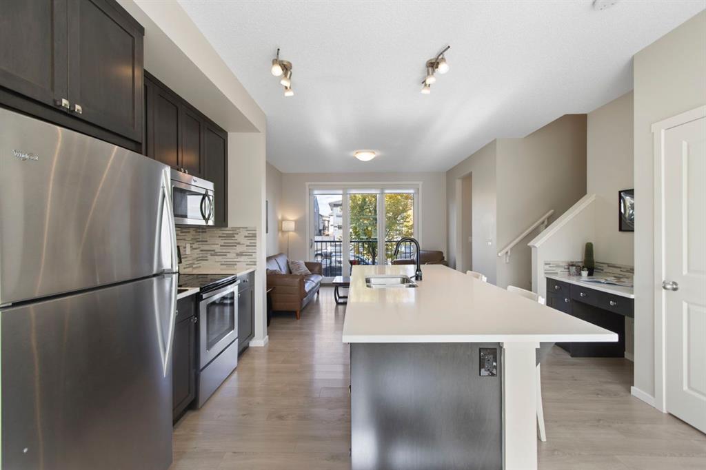 Located kitty corner to a large field, this four-bedroom, four-bathroom, fully developed home in Walden showcases pride of ownership throughout. Entering the home you’re welcomed with a large floor to ceiling window flooding the living room with natural light. The living room seamlessly opens into the centre-positioned kitchen, which features quartz countertops, ceiling height cabinets, stainless steel appliances and ample storage. The dining room has another generous SOUTH facing window that overlooks your large backyard. The main floor is complete with a 2 piece bathroom and back entry. Heading upstairs your primary retreat allows room for a king size bed, has a walk in closet and 3 piece en suite. There are an additional two bedrooms upstairs that share a 4 piece bathroom. Heading into your developed basement, you’ll find an additional recreation space/family room, your fourth bedroom, a 3 piece bathroom, a laundry room, and a storage/utility room. Heading outside you have a huge backyard with south exposure for maximum sunlight accompanied by a deck for all your patio furniture. This home is upgraded throughout with kitchen cabinets to the ceiling, a floor-to-ceiling front bay window, and air conditioning; it is in like new condition. This home is conveniently positioned across from a large field, just 2 turns away from the Legacy shopping centre and allows quick access to Macleod Trail.