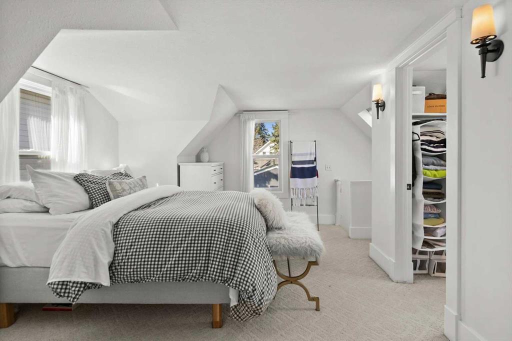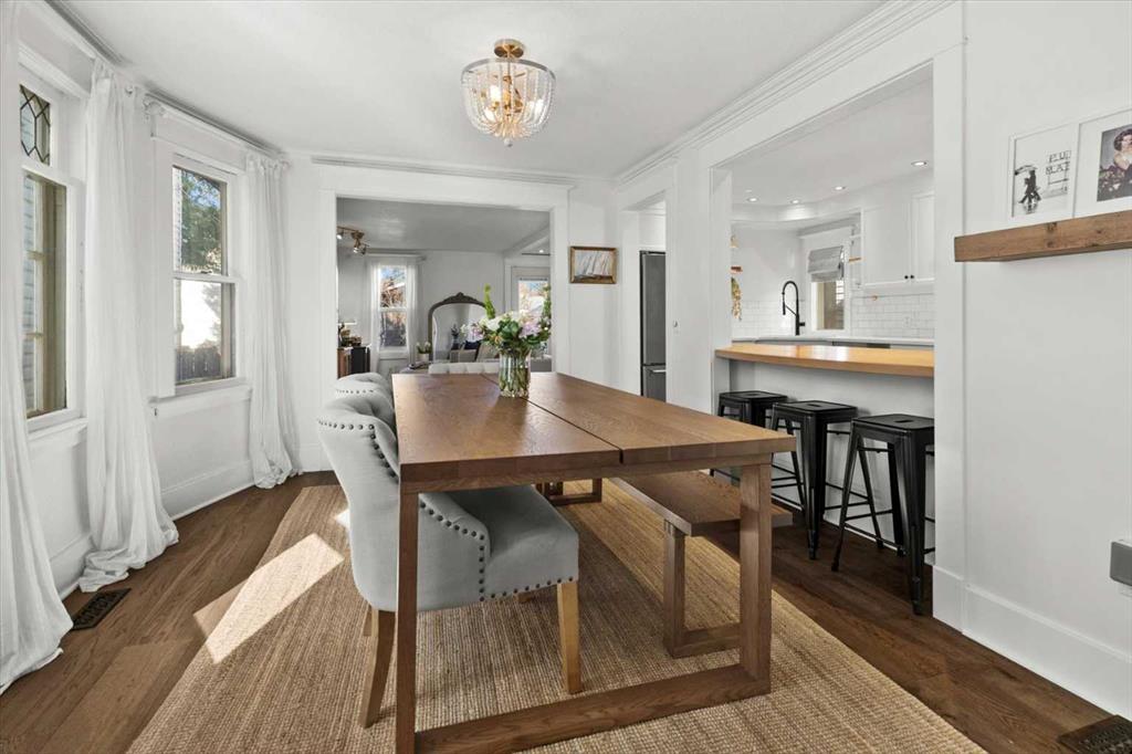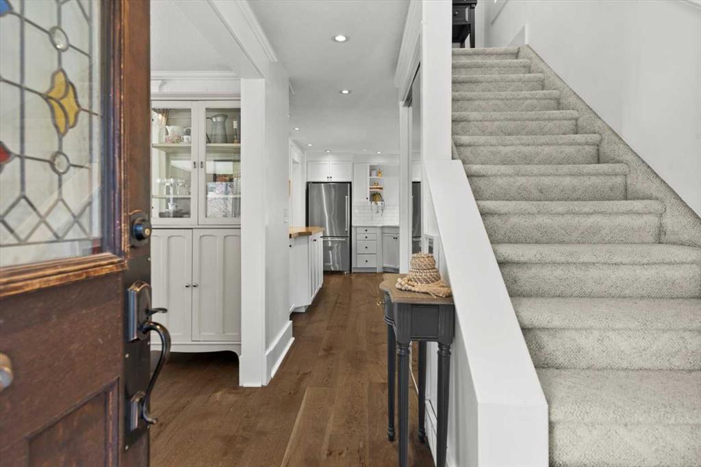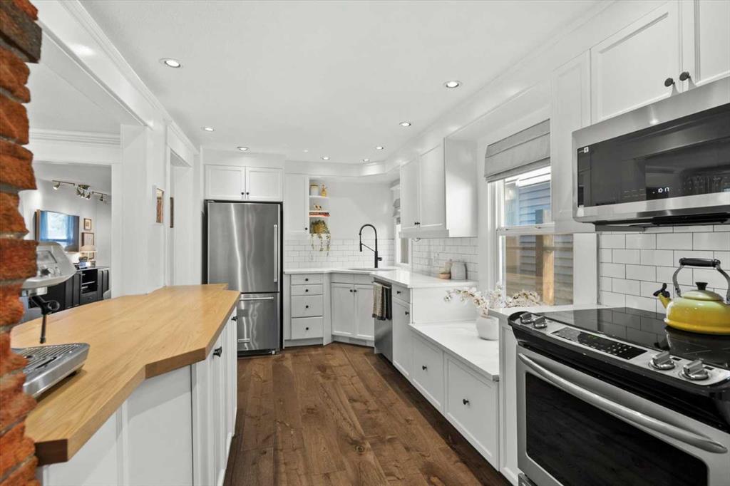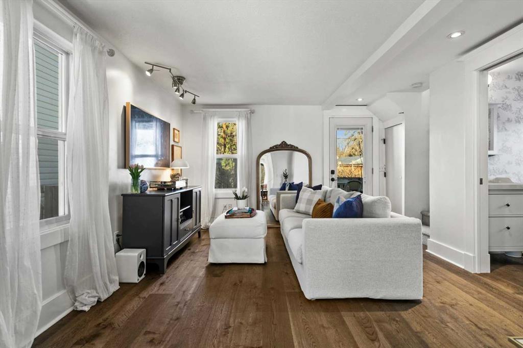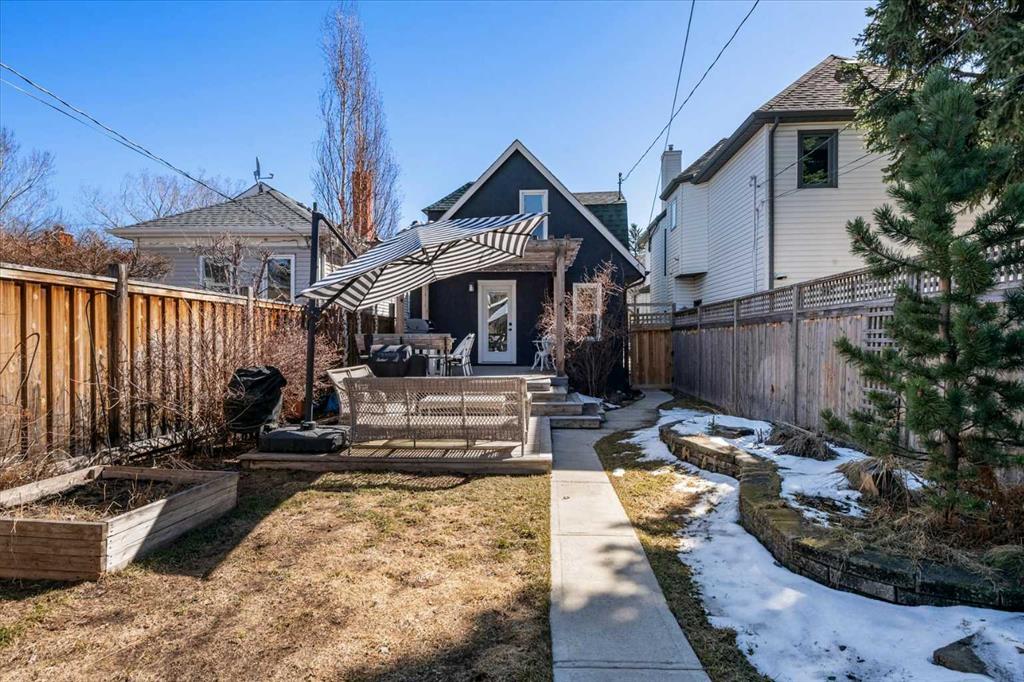 There’s something special about a home that tells a story. This gorgeous century home radiates timeless charm and character throughout, the kind that makes a house feel like home from the moment you arrive. Picture drinking your morning coffee on a sun-soaked front porch and evening BBQs in your sunny west-facing backyard, all wrapped in the heritage character that makes this Hillhurst gem truly one of a kind. As you enter, the original stained-glass door, exposed brick chimney, and classic moldings set the tone! The upgraded engineered hardwood floors and modern kitchen draw you in – featuring quartz countertops, a custom wood island with breakfast- bar seating, modern white cabinetry, and stainless steel appliances. The original brick chimney runs from the kitchen through to upstairs, adding timeless character you can’t replicate. The dining room is framed with bay windows and flows seamlessly to the living room. Thoughtful touches like the upgraded light fixtures add to the charm of this home, while the updated laundry and powder room make daily living effortless. Upstairs, a vaulted bonus room offers the perfect backdrop for a home office, reading nook, or creative studio. The primary bedroom is bright and generous in size with a walk-in closet, while the second bedroom adapts easily to a guest room, nursery, or home-office. The fully re-modeled bathroom is a showstopper featuring dual vanities, gorgeous brass plumbing fixtures, and timeless white tile. Some other notable features include central A/C and custom window coverings throughout. Outside, the 135 foot deep lot opens to a west-facing backyard that soaks in sunshine all day. Garden lovers – just wait until everything grows in! A two-tiered deck sets the scene for summer entertaining, and a double detached garage completes the package. All of this situated on a tree-lined street just steps to Riley Park, less than 5 minutes to groceries and the vibrant amenities of Kensington.