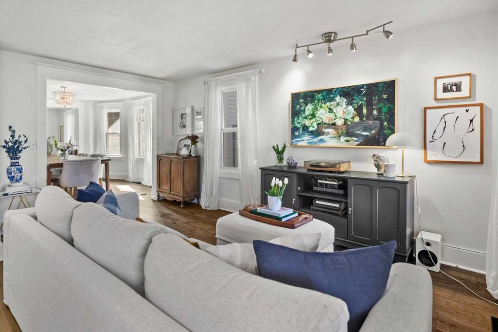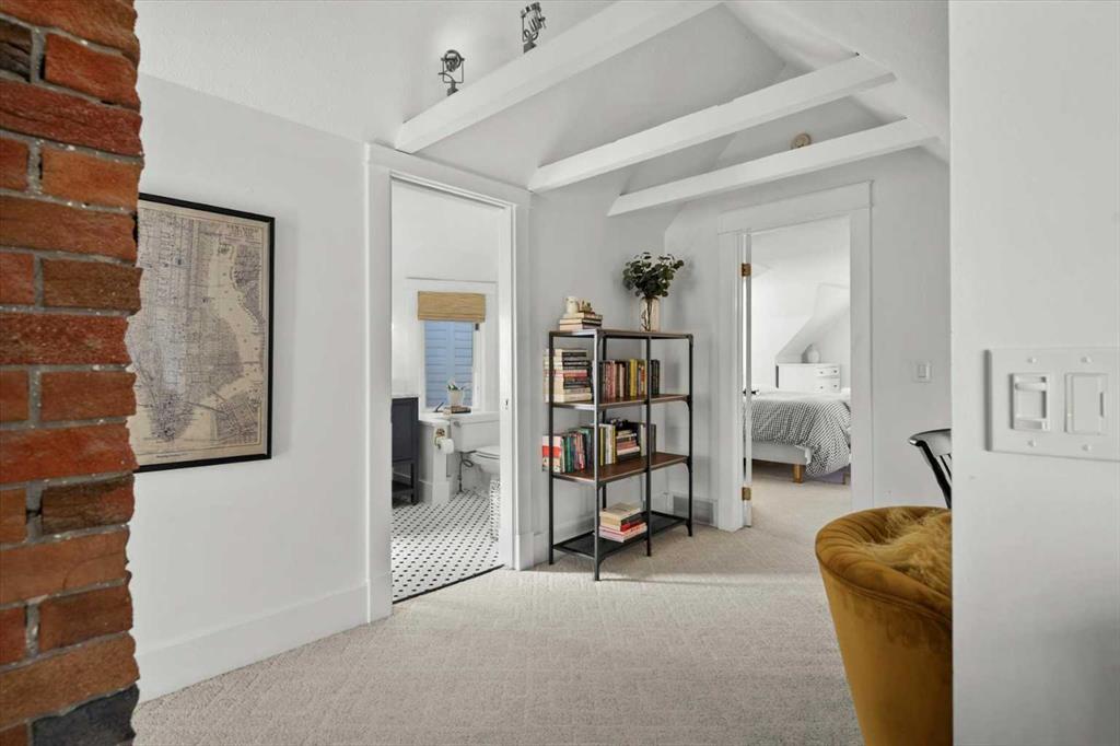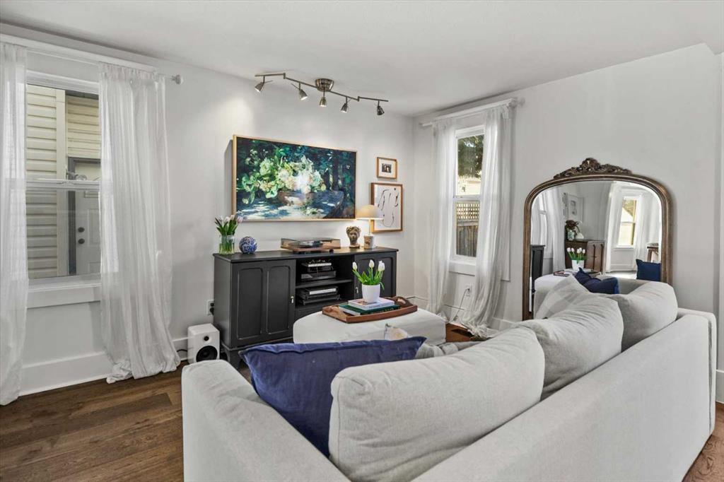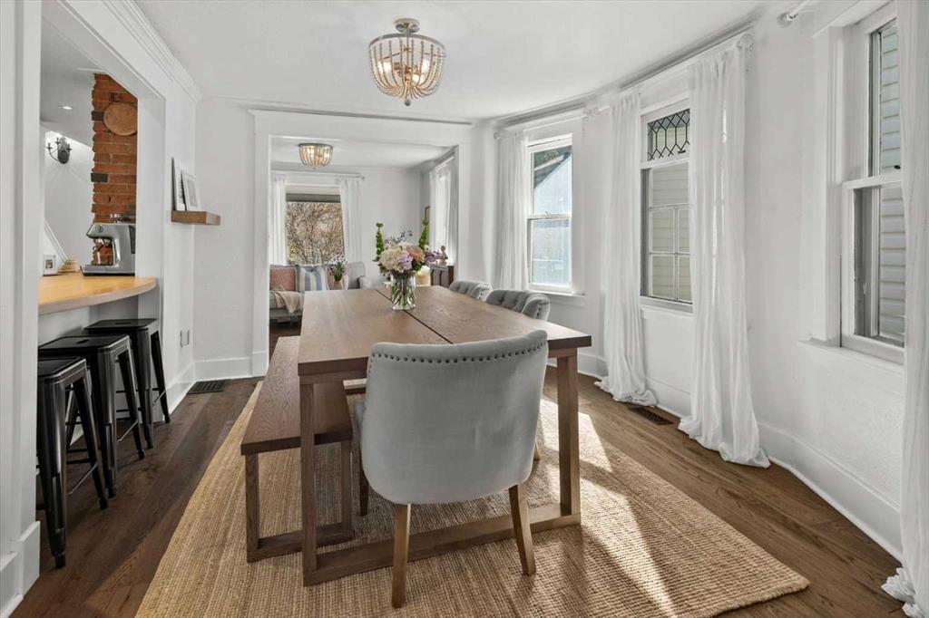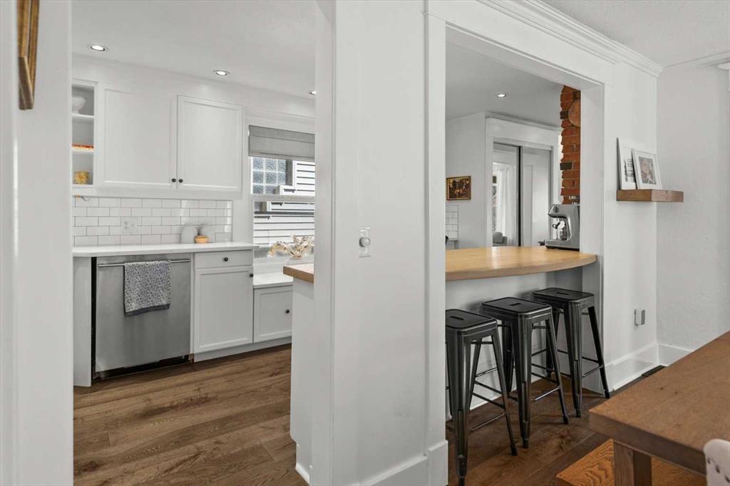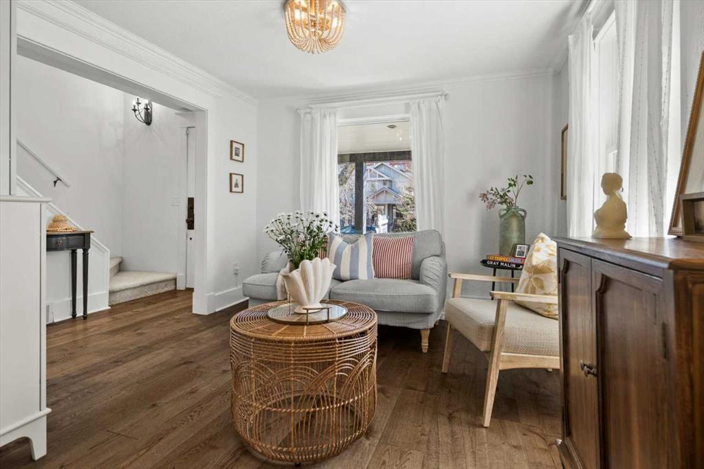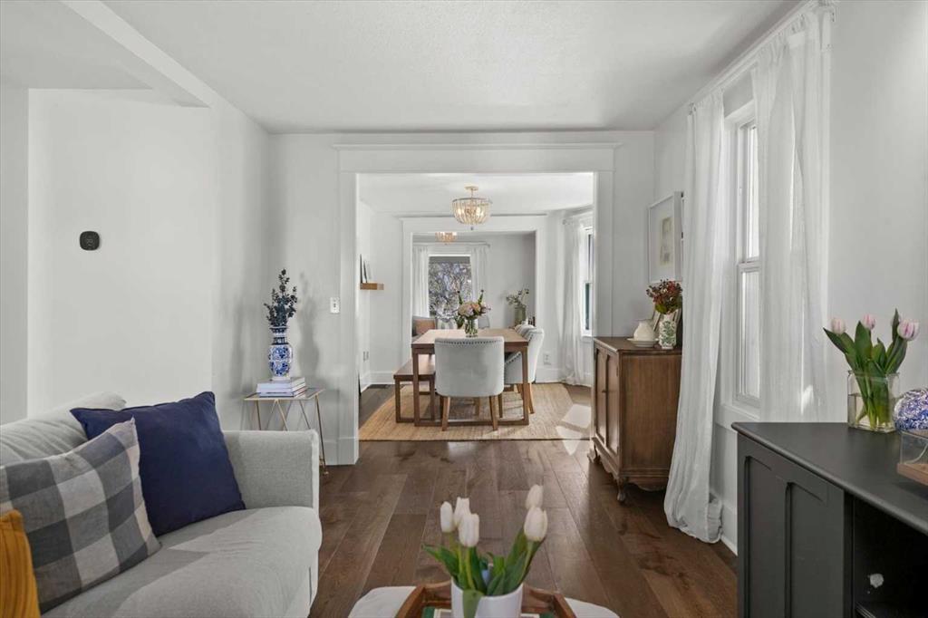 There’s something special about a home that tells a story. This gorgeous century home radiates timeless charm and character throughout, the kind that makes a house feel like home from the moment you arrive. Picture drinking your morning coffee on a sun-soaked front porch and evening BBQs in your sunny west-facing backyard, all wrapped in the heritage character that makes this Hillhurst gem truly one of a kind. As you enter, the original stained-glass door, exposed brick chimney, and classic moldings set the tone! The upgraded engineered hardwood floors and modern kitchen draw you in – featuring quartz countertops, a custom wood island with breakfast- bar seating, modern white cabinetry, and stainless steel appliances. The original brick chimney runs from the kitchen through to upstairs, adding timeless character you can’t replicate. The dining room is framed with bay windows and flows seamlessly to the living room. Thoughtful touches like the upgraded light fixtures add to the charm of this home, while the updated laundry and powder room make daily living effortless. Upstairs, a vaulted bonus room offers the perfect backdrop for a home office, reading nook, or creative studio. The primary bedroom is bright and generous in size with a walk-in closet, while the second bedroom adapts easily to a guest room, nursery, or home-office. The fully re-modeled bathroom is a showstopper featuring dual vanities, gorgeous brass plumbing fixtures, and timeless white tile. Some other notable features include central A/C and custom window coverings throughout. Outside, the 135 foot deep lot opens to a west-facing backyard that soaks in sunshine all day. Garden lovers – just wait until everything grows in! A two-tiered deck sets the scene for summer entertaining, and a double detached garage completes the package. All of this situated on a tree-lined street just steps to Riley Park, less than 5 minutes to groceries and the vibrant amenities of Kensington.