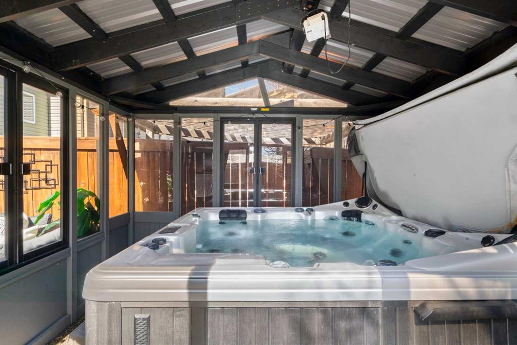 Step outside to a beautifully landscaped backyard with a deck, patio, gazebo, and hot tub, creating a serene, resort-inspired setting—perfect for entertaining or unwinding in style and comfort.