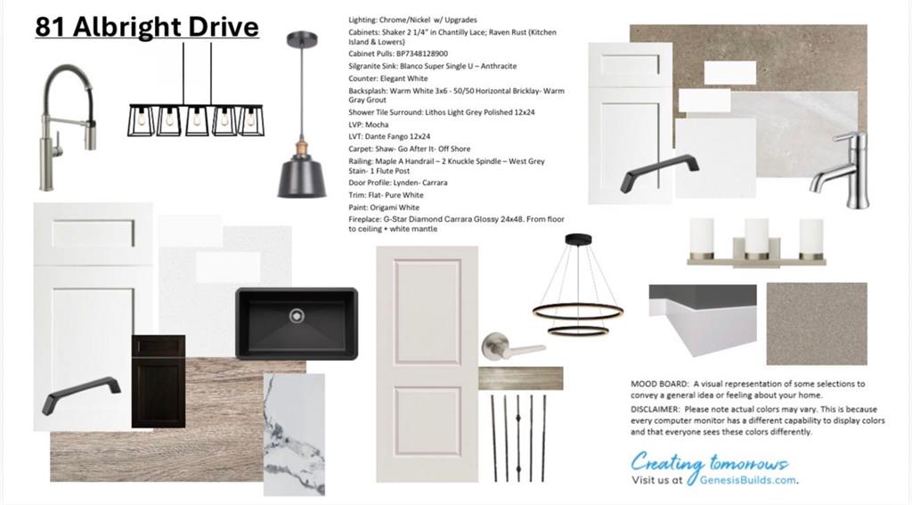 Welcome to 81 Albright Drive, presented by Genesis Builder Group, scheduled for completion in March 2026. Offering over 1900 sq ft of beautifully designed space with 3 bedrooms, 2.5 bathrooms, on a desirable lot backing onto a walking path. Stepping inside to 9’ ceilings, luxury vinyl plank flooring that spans the open concept main floor. The spacious kitchen is equipped with stainless steel appliances and a central island with an adjacent dining room, making it ideal for entertaining guests or enjoying family meals. The living room, with its inviting focal-point fireplace, is a space to unwind, and it seamlessly flows into your outdoor space, where a completed deck off the living area provides a perfect spot for outdoor relaxation. A convenient powder room completes the main level. Upstairs, a central bonus room offers separation from the primary suite and additional bedrooms. The primary bedroom boasts an ensuite bathroom with dual sinks, a soaker tub, a separate shower and a spacious walk-in closet, offering a private retreat. Two further bedrooms are generously sized, featuring their own walk-in closets and are complemented by a four-piece bathroom and an upstairs laundry for added convenience. Located in the vibrant community of Harmony, residents enjoy a wealth of amenities and outdoor recreational opportunities. The community features scenic walking trails, parks, and access to various recreational facilities, fostering an active and connected lifestyle. With its excellent location, Harmony offers easy access to shopping, dining, and entertainment, making it an ideal place to settle down or invest in your future. Don’t miss the opportunity to own a brand new home in this thriving community. *RMS has been converted from the builder’s blueprints, and taxes are to be assessed.