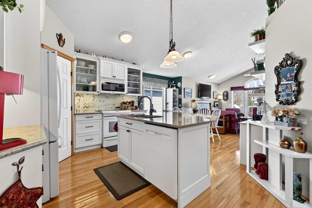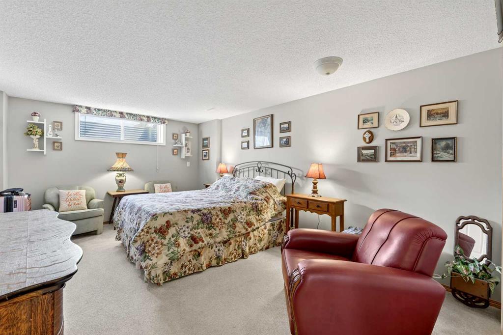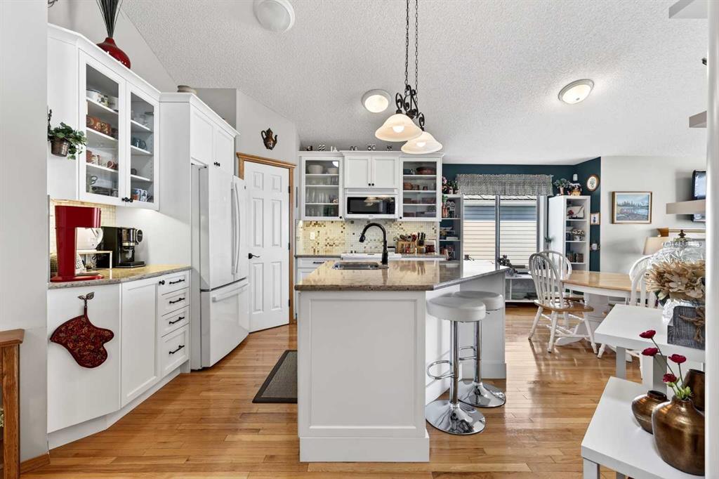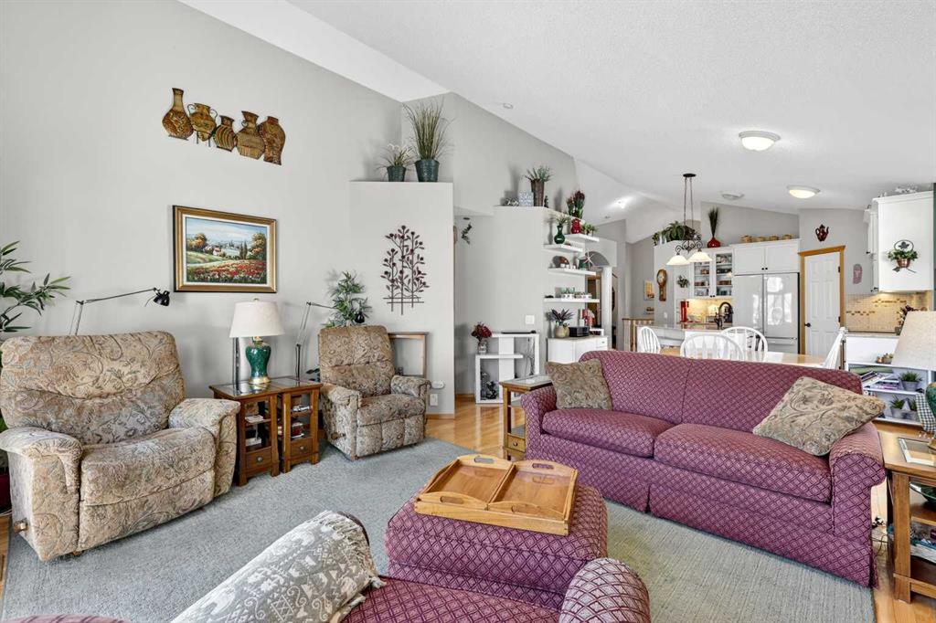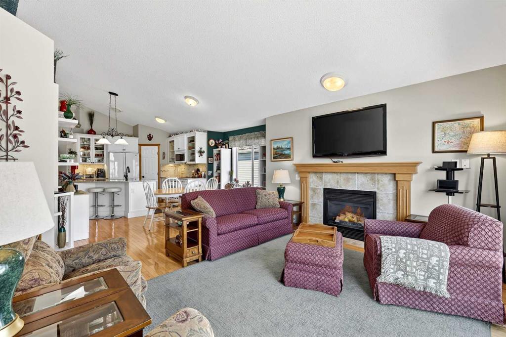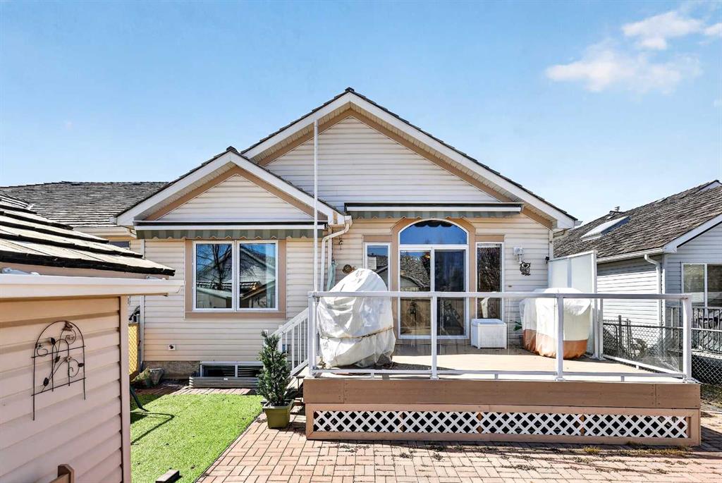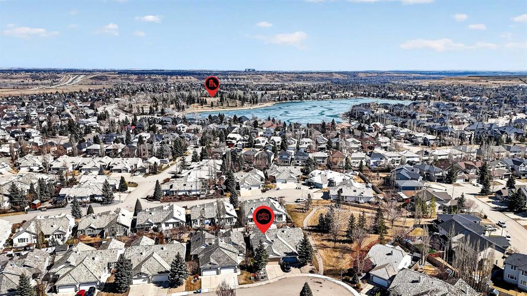 Welcome to 81 Chaparral Villas—where effortless living meets timeless comfort in one of Calgary’s most cherished lake communities. Tucked within the highly sought-after enclave of Chaparral Villas, this beautifully maintained and thoughtfully updated semi-detached bungalow offers over 2,300 sq ft of developed living space—perfectly tailored for those seeking a refined, low-maintenance lifestyle without compromise. From the moment you step inside, you’re welcomed by an airy, light-filled main floor spanning over 1,300 sq ft. A spacious den just off the foyer, framed by oversized windows, creates the ideal setting for a home office, reading retreat, or creative space. As you move into the heart of the home, soaring nearly 13-foot vaulted ceilings elevate the living experience, while expansive windows invite in an abundance of natural light. The fully updated kitchen is both stylish and functional, anchored by a generous flush centre island with stunning quartz countertops featuring crescent edges. Crisp white cabinetry, a modern backsplash, floating shelves, and newer white appliances create a bright and inviting space, complemented by an undermount sink and updated fixtures. The designated dining area, finished in warm hardwood, flows seamlessly into the cozy living room, where a central gas fireplace sets the tone for relaxed evenings. Step outside through the newer patio doors and discover your private outdoor retreat—featuring a composite deck with dual awnings, a stone patio, and beautifully curated low-maintenance landscaping with a charming garden area. This is a space designed for quiet mornings, warm summer afternoons, and easy entertaining. The spacious primary suite offers comfort and tranquility, complete with a newer window, custom built-ins, a walk-in closet, and a well-appointed 4-piece ensuite with a deep soaker tub and separate shower. Main floor laundry with added storage enhances everyday convenience, allowing for true single-level living. The fully finished basement extends your living space with a large family room centered around a second gas fireplace, an expansive bedroom for guests, a full bathroom, a dedicated wood workshop for the hobbyist, and an additional flex area to suit your lifestyle needs. Located in the vibrant lake community of Chaparral, residents enjoy year-round access to pathways, parks, shopping, and a wealth of amenities. Within this quiet villa enclave, pride of ownership shines—neighbours greet one another, daily walks are part of the rhythm, and a true sense of community is felt. This is more than a home—it’s a lifestyle of ease, connection, and comfort.