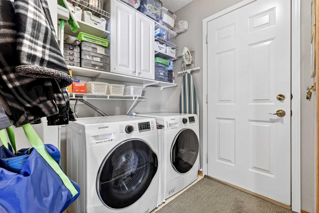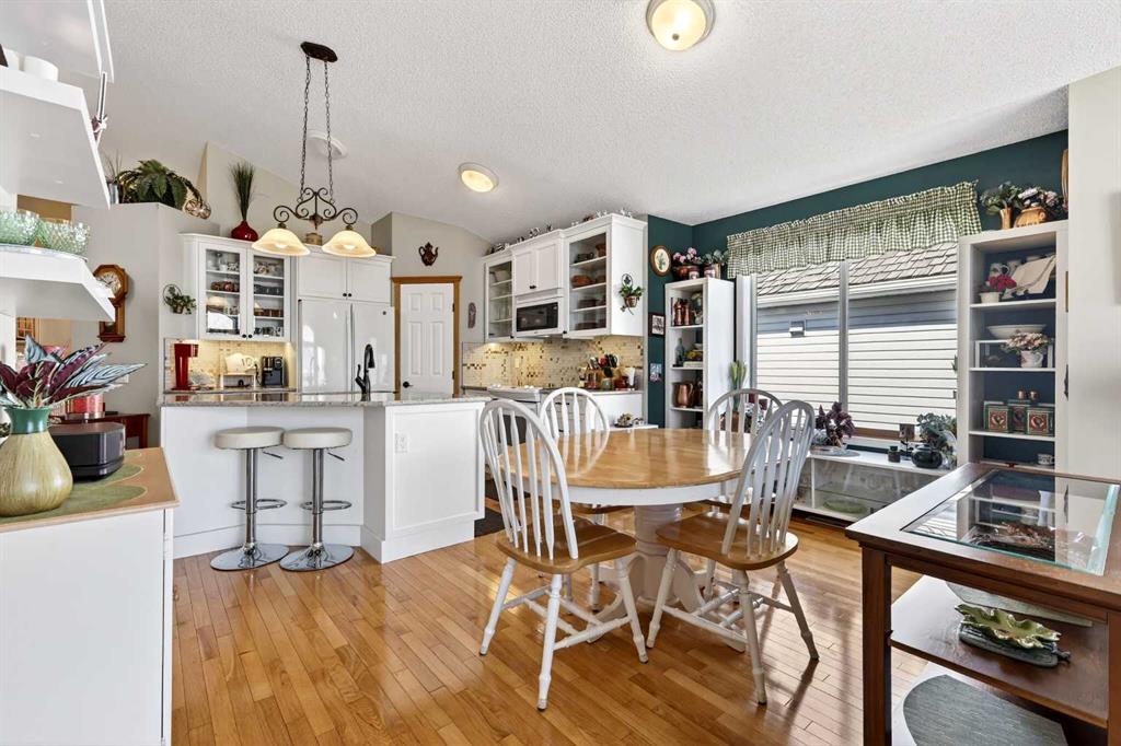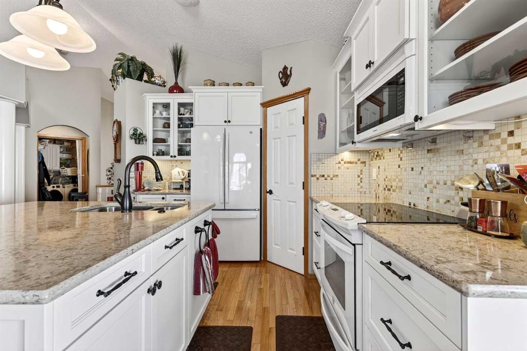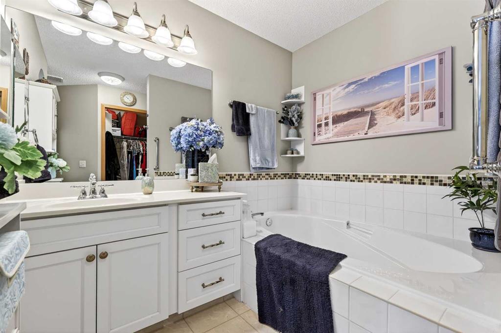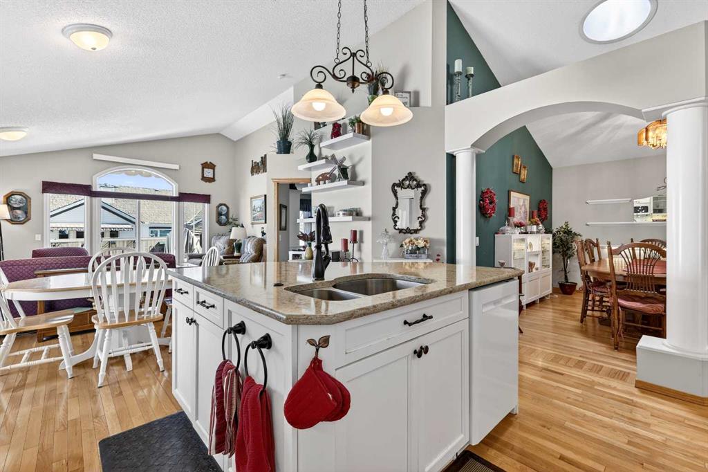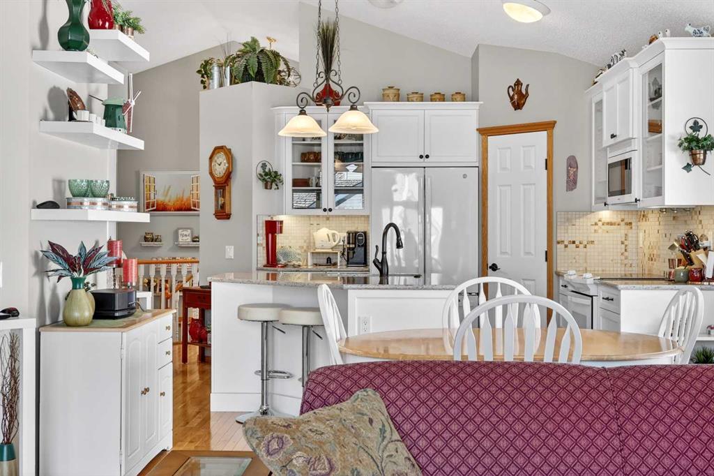 Welcome to 81 Chaparral Villas—where effortless living meets timeless comfort in one of Calgary’s most cherished lake communities. Tucked within the highly sought-after enclave of Chaparral Villas, this beautifully maintained and thoughtfully updated semi-detached bungalow offers over 2,300 sq ft of developed living space—perfectly tailored for those seeking a refined, low-maintenance lifestyle without compromise. From the moment you step inside, you’re welcomed by an airy, light-filled main floor spanning over 1,300 sq ft. A spacious den just off the foyer, framed by oversized windows, creates the ideal setting for a home office, reading retreat, or creative space. As you move into the heart of the home, soaring nearly 13-foot vaulted ceilings elevate the living experience, while expansive windows invite in an abundance of natural light. The fully updated kitchen is both stylish and functional, anchored by a generous flush centre island with stunning quartz countertops featuring crescent edges. Crisp white cabinetry, a modern backsplash, floating shelves, and newer white appliances create a bright and inviting space, complemented by an undermount sink and updated fixtures. The designated dining area, finished in warm hardwood, flows seamlessly into the cozy living room, where a central gas fireplace sets the tone for relaxed evenings. Step outside through the newer patio doors and discover your private outdoor retreat—featuring a composite deck with dual awnings, a stone patio, and beautifully curated low-maintenance landscaping with a charming garden area. This is a space designed for quiet mornings, warm summer afternoons, and easy entertaining. The spacious primary suite offers comfort and tranquility, complete with a newer window, custom built-ins, a walk-in closet, and a well-appointed 4-piece ensuite with a deep soaker tub and separate shower. Main floor laundry with added storage enhances everyday convenience, allowing for true single-level living. The fully finished basement extends your living space with a large family room centered around a second gas fireplace, an expansive bedroom for guests, a full bathroom, a dedicated wood workshop for the hobbyist, and an additional flex area to suit your lifestyle needs. Located in the vibrant lake community of Chaparral, residents enjoy year-round access to pathways, parks, shopping, and a wealth of amenities. Within this quiet villa enclave, pride of ownership shines—neighbours greet one another, daily walks are part of the rhythm, and a true sense of community is felt. This is more than a home—it’s a lifestyle of ease, connection, and comfort.