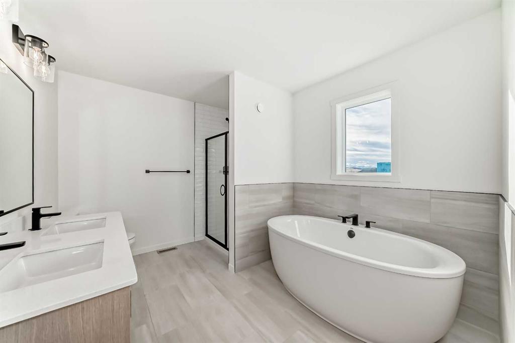 Upstairs, the thoughtful design continues. Two bedrooms are tucked at the back of the home, sharing a well-appointed 4-piece bathroom. A large central bonus room provides plenty of space for movie nights, playtime, or family gatherings, while the dedicated laundry room adds convenience to everyday living. At the front of the home, the primary retreat offers a true escape, featuring a luxurious 5-piece ensuite with dual sinks, a soaker tub, and a separate shower, along with a large walk-in closet.
