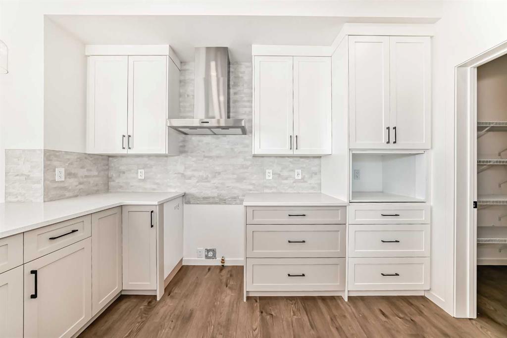 The main floor is all about connection and convenience. Step in through the garage to find a practical mudroom that leads directly into the walk-through pantry, keeping your daily routines seamless. At the heart of the home is a striking U-shaped kitchen with a flush eating bar, designed for both style and efficiency. The kitchen flows effortlessly into the bright dining nook and spacious great room, complete with an electric fireplace that adds warmth and character to the space. Just off the kitchen, a generous den offers the perfect setting for a home office, study, or quiet retreat, while a stylish powder room completes the main floor.