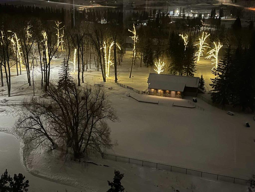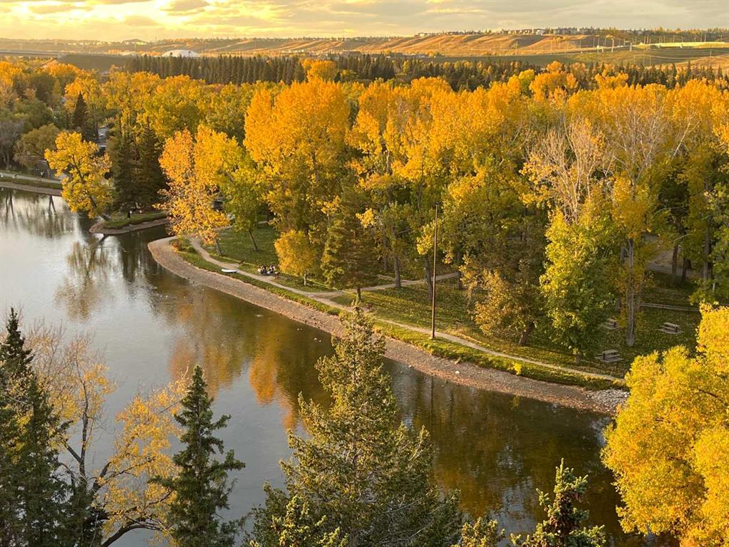Perched on the 8th floor, this exceptional condo offers **one of the largest floor plans in the building** and showcases truly breathtaking views overlooking Bowness Park and the picturesque Bow River. From vibrant seasonal landscapes to stunning natural light displays and dramatic sunsets, the expansive private balcony provides a front-row seat to it all.