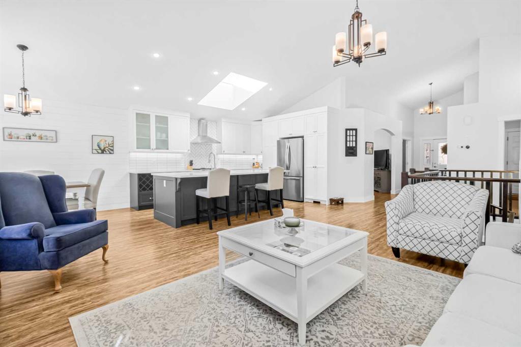 Welcome to Boulder Creek Estates in Langdon, where small-town charm meets refined bungalow living. This immaculate, fully finished 4 bedroom, 3 bath, 1800 sq ft bungalow offers over 3,000 sq ft of beautifully designed living space with vaulted ceilings, a triple car garage, and central air conditioning. A formal dining room and large den offer versatility for entertaining, working from home, or quiet relaxation. The chef-inspired kitchen features granite countertops, stainless steel appliances, a gas stove, skylight, and ample cabinetry, flowing into a warm living room with a gas fireplace. The spacious primary suite includes a stylish barn door and a luxurious 5 pc ensuite. The fully developed lower level adds a large recreation room with a second gas fireplace, two additional bedrooms, generous storage, and the convenience of two laundry rooms. Situated on a private reverse pie lot backing onto green space, the landscaped backyard with underground sprinklers creates a peaceful outdoor retreat. Boulder Creek Estates is a vibrant community with nearby amenities including Boulder Creek Golf Course, the Langdon Fieldhouse, skatepark, playgrounds, schools, and local shops and restaurants, scenic walking paths, and convenient access to major commuting routes.Thoughtfully upgraded and meticulously maintained, this exceptional home offers space, comfort, and elegance just minutes from Calgary.