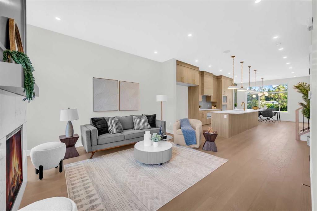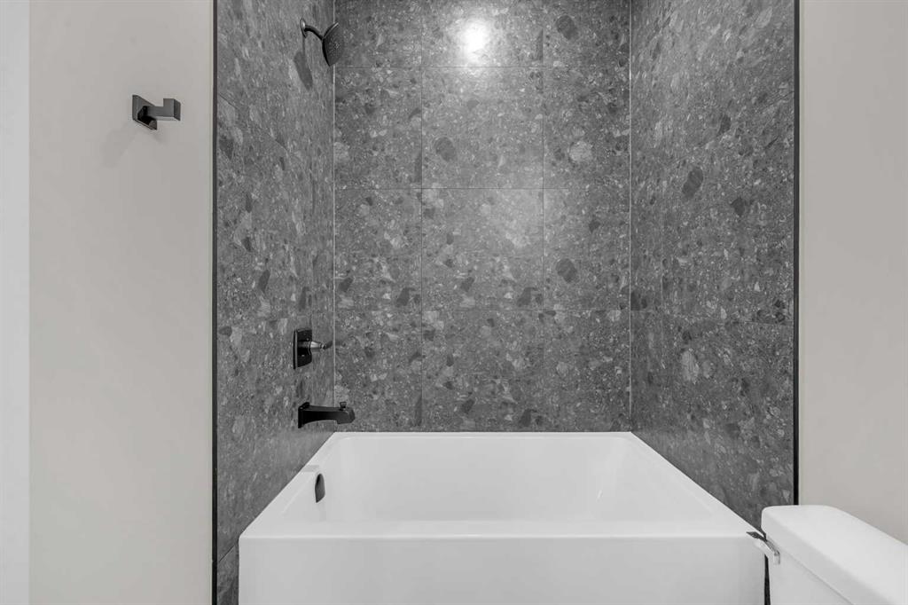 Calling all Investors! Looking for a brand new SXS Duplex with legal basement suites? This 8114 unit can be sold together with attached 8112 to provide an excellent cash flowing opportunity with the convenience of having all construction materials and components still under New Home Warranty. Both 8114 and 8112 are rented on long term leases with tenants who would prefer to stay. This unit rents monthly at $3100 for the upper suite + 70% utlitles and $1250 + 30% utilities for the lower suite. Amazing home boasting elevated design and incredible functionality, featuring a legal 2-bedroom basement suite and a sunny south exposed front with expansive valley views from the upper floor. Every detail was thoughtfully selected, from the wide-plank modern floors to the curated lighting and premium finishes throughout. Step inside to a bright, open-concept main floor with 10′ ceilings, oversized windows and neutral tones that create an airy, inviting vibe. The large, well-lit dining room is perfect for bigger families and/or hosting guests and shows off a vibrant and colourful feature wall, which flows seamlessly into a designer kitchen featuring modern warm toned cabinetry, paired with beautifully coloured glass backsplash, quartz countertops, matte black hardware, a huge walk-in pantry with built-in shelving, and a perfect-sized center island with bar seating with more natural wood tones, bringing everything together beautifully. The upgraded stainless steel appliance package includes an oversized sub zero fridge with french doors, a gas cooktop with stylish hood fan, and a thoughtfully placed wall oven and microwave. The rear living room is wide and spacious featuring additional large windows plus a cozy gas fireplace with stone surround and custom mantle, and which leads you out to the large backyard, which features an oversized concrete pad, perfect for end of the day BBQ’s and lounging. An enclosed mudroom with a large closet area and a sleek powder room that comes with a raised matte black sink complete the mainfloor. Upstairs contains the three large bedrooms, all with trayed ceilings, including the primary bedroom which is a true retreat that features a large walk-in closet with several custom built-ins plus a hotel like ensuite. Enjoy heated tile flooring, dual sinks, quartz countertops, matching tile surrounds, plus a free standing soaker tub and an oversized glass shower with rain shower head and roughed-in for steam. The upper laundry room comes with a sink, quartz countertops, additional wood toned cabinetry, and is situated beside the stylish full bathroom which features a tiled tub/shower combo. Downstairs features the thoughtfully designed legal 2 bedroom suite and features 9′ ceilings, luxury vinyl plank flooring, wonderfully warm toned cabinetry, stainless steel appliances and lots of pot lighting. A full bathroom with elegant tile is also featured plus a dedicated laundry room, separate side entrance and storage, making this perfect for rental income.