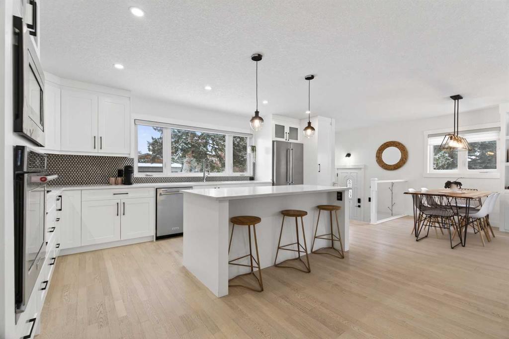 5 BEDROOMS | 3 1/2 BATHROOMS | BUNGALOW | OVER 2,600 SQFT OF LIVING SPACE | FULLY DEVELOPED BASEMENT | DOUBLE DETACHED GARAGE | CORNER LOT | Welcome to this gorgeous bungalow in the desirable Maple Ridge community, offering over 2,500 sqft of beautifully finished living space with 5 bedrooms and 3.5 bathrooms. Situated on a corner lot and close to parks, golf courses, and amenities, this home combines modern upgrades with a spacious and functional layout perfect for a growing family.As you enter the home, a bright and inviting living room welcomes you into the open layout. The living room features a large west facing window that fills the space with natural light and a feature wall with built-in shelving and an electric fireplace. The adjoining dining area flows seamlessly into the open and spacious kitchen, which features quartz countertops, white cabinetry, premium stainless steel appliances, a built-in microwave and oven, and a generous island with seating, making it ideal for preparing meals while entertaining guests. Engineered hardwood flooring runs throughout the main floor, enhancing the modern feel of the home.The main level features a spacious relaxing primary retreat with a walk-in closet and a 4-piece ensuite. The second and third bedrooms feature large closets and share a convenient three-piece Jack-and-Jill bathroom accessible from both rooms. Completing the well-designed main floor layout is a powder room just off the main living area. The fully finished basement adds even more versatile living space with vinyl flooring throughout, two additional large bedrooms, a full bathroom, a spacious recreation room perfect for movie nights or family gatherings, a wet bar with wine fridge, and a dedicated laundry room. Additional upgrades include central air conditioning (2022), hot water tank (2022), roof (2022) and sound system  throughout the home. The property also features a double detached garage and a fully fenced yard with back lane access.Located close to Maple Ridge Golf Course, Willow Park Golf & Country Club, Southcentre Mall, Fish Creek Library, and schools, and with easy access to Anderson Road, Southland Drive, Deerfoot Trail, and Macleod Trail, this home offers both convenience and lifestyle in one of Calgary’s most established neighbourhoods.Book your showing today!