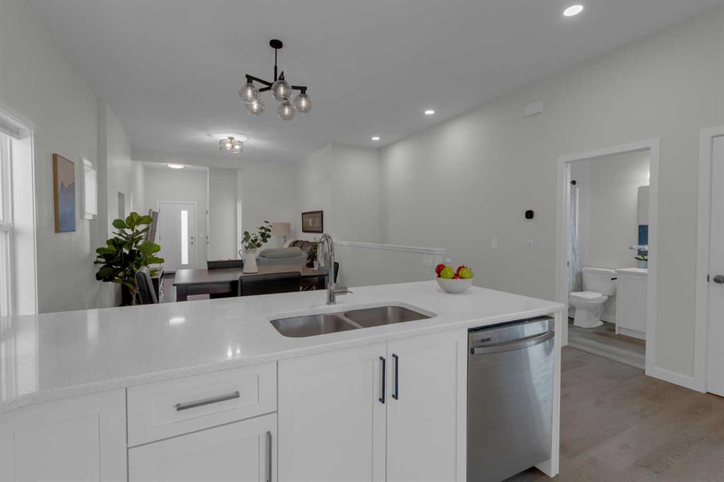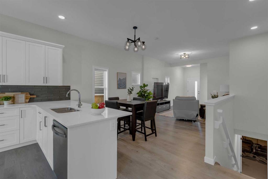 Modern BUNGALOW living with soaring 10’ ceilings, a heated DOUBLE DETACHED 19’x21′ GARAGE, and an unbeatable location across from a children’s park in Coopers Landing! Built in 2022 and offering 1,119 sq ft of thoughtfully designed space, this 2 Bedroom, 2 Full Bathroom home delivers stylish single level living with an open concept layout and clean contemporary finishes throughout. Step inside and immediately appreciate the airy feel created by the tall ceilings and expansive main living area finished in durable VINYL PLANK flooring. The bright white Kitchen is both timeless and functional, featuring quartz countertops, crisp white cabinetry, stainless steel appliances, and a long peninsula that offers generous prep space and a comfortable eating area, perfect for casual meals or entertaining guests. The Kitchen flows seamlessly into the Dining and Living areas, creating an inviting space ideal for everyday living. The spacious Primary Suite is designed as a comfortable retreat, complete with a large WALK IN CLOSET and a beautifully finished tiled Ensuite featuring a glass shower for a clean, modern look. A second Bedroom and full Bathroom provide flexibility for guests, a home office, or small family living. The unfinished Basement offers excellent future potential, ready for your vision with room to expand your living space exactly how you need it with 3 large windows and rough in plumbing for a bathroom. Outside, you’ll appreciate the fenced yard, heated and insulated DOUBLE DETACHED GARAGE, offering year round comfort and valuable storage. Conveniently close to 40th Avenue for quick access into Calgary, this home combines convenience, modern design, and low maintenance living in one of Airdrie’s most desirable communities. Welcome home!