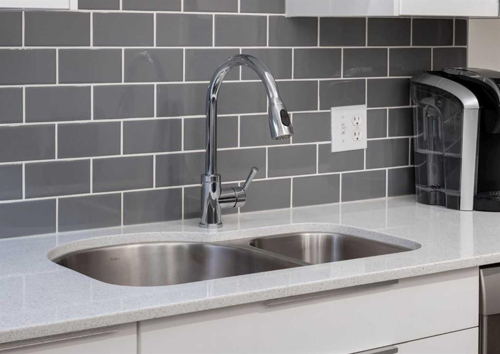 The bright, modern white kitchen is a true highlight, featuring quartz countertops, ample cabinetry, and convenient pull-out drawers—perfect for cooking, entertaining, or simply enjoying your morning routine.