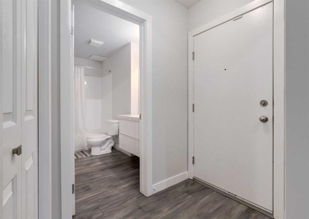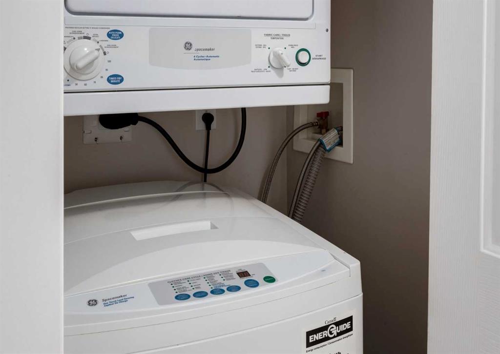 The four-piece bathroom offers a stylish new vanity with generous drawer space, combining functionality with modern flair. You’ll also appreciate the convenience of in-suite stacking laundry and a front hall closet for additional storage.