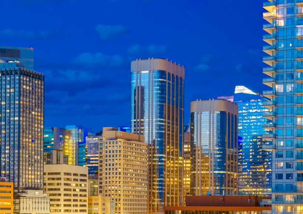 The inviting living room opens onto your own private balcony—an ideal spot to enjoy your morning coffee or unwind in the evening while taking in Calgary’s downtown skyline.