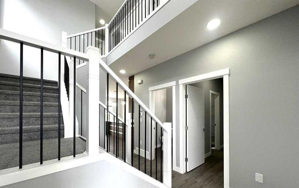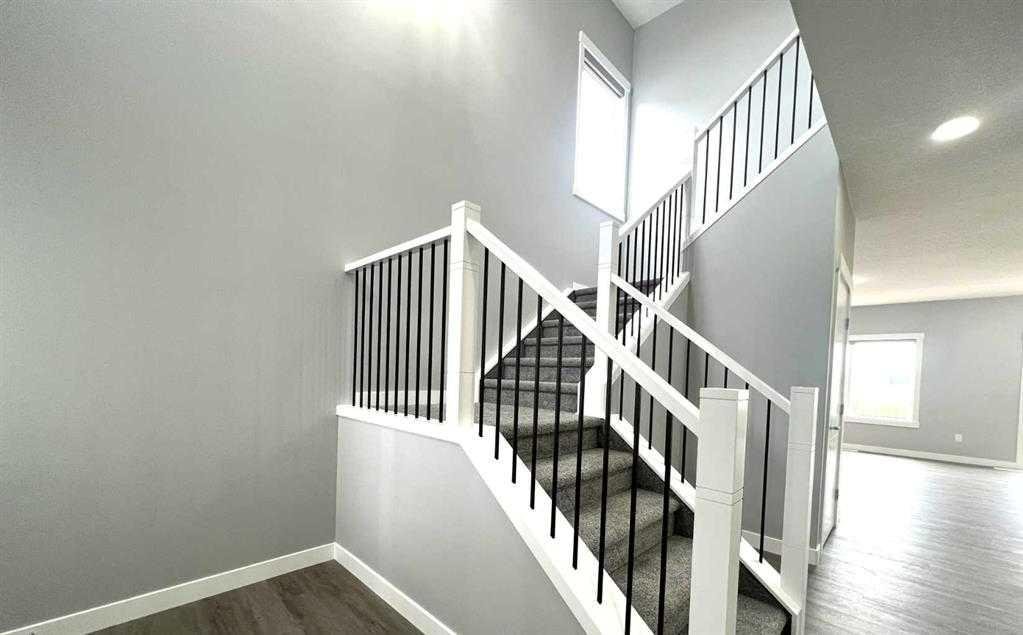 Welcome to this beautifully designed 3-bedroom, 2.5-bathroom home—perfect for families or anyone seeking space, style, and comfort. With a striking open-to-below layout and soaring ceilings, the home offers a bright, airy ambiance that’s sure to impress. Contemporary upgraded lighting enhances the elegance throughout. The main floor features a spacious mudroom, a convenient 2-piece bath, and a large open-concept living area complete with an electric fireplace. The dining area flows seamlessly into a gourmet chef’s kitchen, boasting high-end stainless steel appliances, quartz countertops, a walk-through pantry, and a sleek, modern design. Upstairs, you’ll find a cozy family room, a full 4-piece bathroom, laundry room, and three generously sized bedrooms—including a luxurious primary suite with a massive walk-in closet and a spa-inspired ensuite featuring a soaker tub, glass-enclosed shower, and double vanity. Enjoy the outdoors in your private backyard, perfect for kids or pets, with direct access to the green space behind. This home backs onto a field shared with a K-9 Elementary School and a nearby Sports & Recreation Centre—ideal for active families. Additional features include a DOUBLE attached garage, stainless steel kitchen appliances, and a washer & dryer included for your convenience. Don’t miss your opportunity to own this exceptional property!