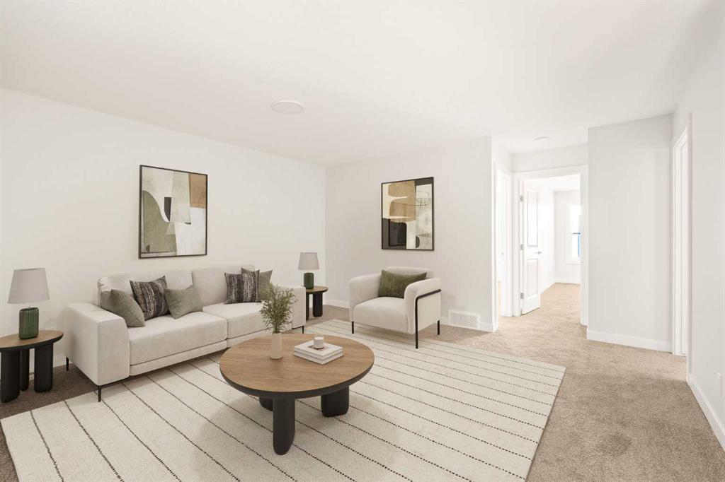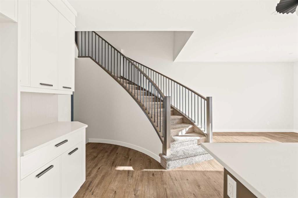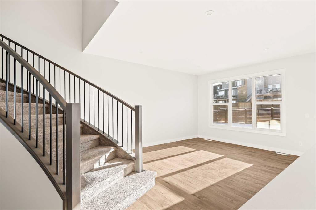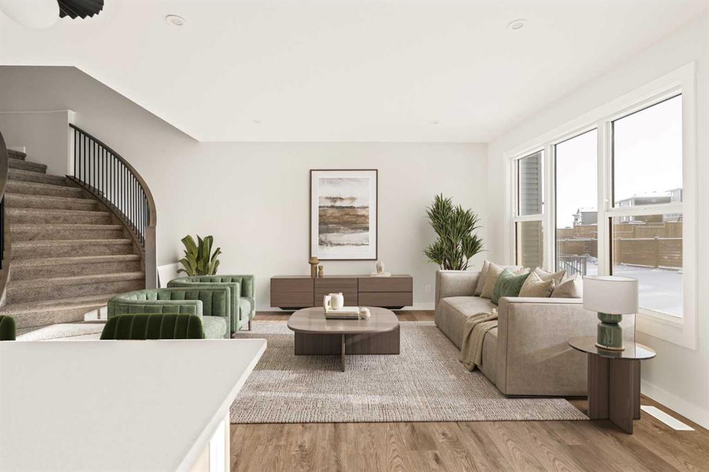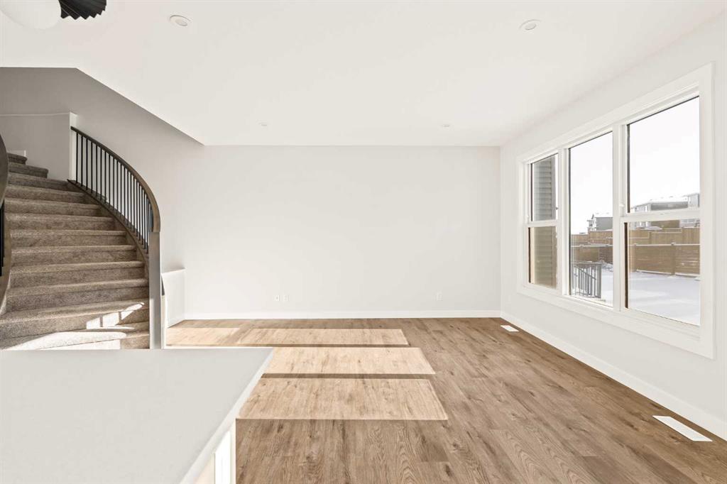 This Farmhouse elevation Robson 24 built by Brookfield Residential is a stunning brand new home in the heart of Livingston. Featuring 2 living areas, 3 bedrooms, 3 bathrooms and a home office / flex space on the main level that could be a 4th bedroom, this home has plenty of living space for a growing family + an undeveloped basement that awaits your imagination with ample space for a second living area, fourth bedroom and full bathroom. The home has a grand foyer with a front office space that could also be used for a children’s play space, reading room or 4th bedroom – with a full bathroom located just outside the space. The centre of the main floor features a stunning spiral staircase that leads to the second level – offering unique design features rarely seen in a home of this size. The gourmet kitchen includes a built-in range hood and lower built-in microwave and is complete with a large corner pantry providing endless storage for those that like to cook and entertain. The timeless kitchen has white cabinets with a warm wood accent island and it overlooks both the living and dining areas – making this the perfect space to host guests. A wall of south-facing windows in both the living and dining rooms allow for natural light to pour through the space all day long. The main floor has a full bathroom and is complete with 9′ ceilings creating a more open space. The spiral staircase leads to the second level where you’ll find a central bonus room that separates the primary suite from the secondary bedrooms. The primary suite has vaulted ceilings and is complete with a 5 pc en suite including dual sinks, walk-in shower, and a soaker tub with window for added natural light – in addition to its incredibly large walk-in closet. Two more bedrooms, a full bathroom and a laundry room complete the second level. The basement is undeveloped and awaits the new owner’s imagination – complete with bathroom rough-ins in place. Completing this home is a large and private south-facing backyard that provides optimal natural light and sunshine, both inside and outside, all year long. The 23′ wide deep double attached garage is the perfect space to keep your vehicle and valuables safe all year long. Builder new home warranty & Alberta New Home Warranty are included with the purchase of this brand new home. Located in desirable Livingston, with an incredible HOA, this property is fully move-in ready and perfect for a growing family.