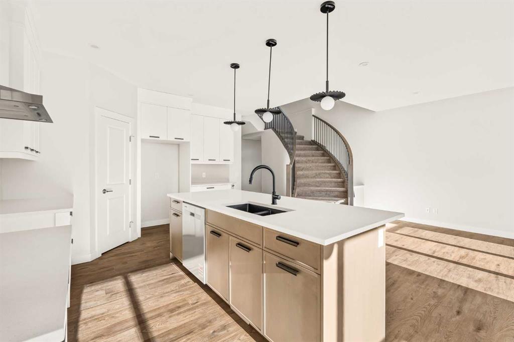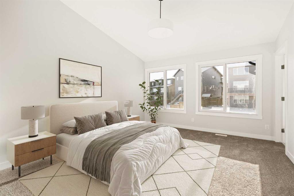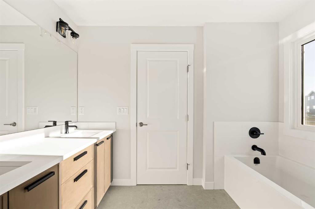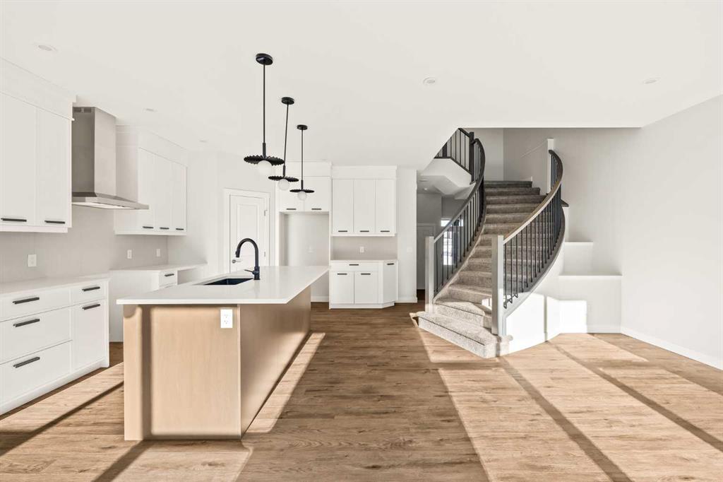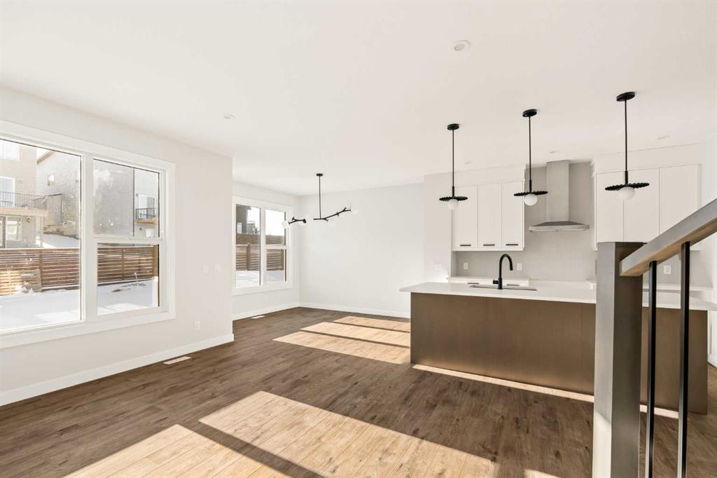 This Farmhouse elevation Robson 24 built by Brookfield Residential is a stunning brand new home in the heart of Livingston. Featuring 2 living areas, 3 bedrooms, 3 bathrooms and a home office / flex space on the main level that could be a 4th bedroom, this home has plenty of living space for a growing family + an undeveloped basement that awaits your imagination with ample space for a second living area, fourth bedroom and full bathroom. The home has a grand foyer with a front office space that could also be used for a children’s play space, reading room or 4th bedroom – with a full bathroom located just outside the space. The centre of the main floor features a stunning spiral staircase that leads to the second level – offering unique design features rarely seen in a home of this size. The gourmet kitchen includes a built-in range hood and lower built-in microwave and is complete with a large corner pantry providing endless storage for those that like to cook and entertain. The timeless kitchen has white cabinets with a warm wood accent island and it overlooks both the living and dining areas – making this the perfect space to host guests. A wall of south-facing windows in both the living and dining rooms allow for natural light to pour through the space all day long. The main floor has a full bathroom and is complete with 9′ ceilings creating a more open space. The spiral staircase leads to the second level where you’ll find a central bonus room that separates the primary suite from the secondary bedrooms. The primary suite has vaulted ceilings and is complete with a 5 pc en suite including dual sinks, walk-in shower, and a soaker tub with window for added natural light – in addition to its incredibly large walk-in closet. Two more bedrooms, a full bathroom and a laundry room complete the second level. The basement is undeveloped and awaits the new owner’s imagination – complete with bathroom rough-ins in place. Completing this home is a large and private south-facing backyard that provides optimal natural light and sunshine, both inside and outside, all year long. The 23′ wide deep double attached garage is the perfect space to keep your vehicle and valuables safe all year long. Builder new home warranty & Alberta New Home Warranty are included with the purchase of this brand new home. Located in desirable Livingston, with an incredible HOA, this property is fully move-in ready and perfect for a growing family.