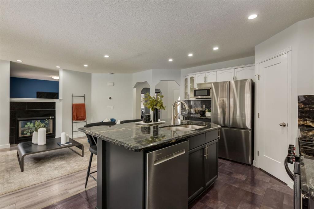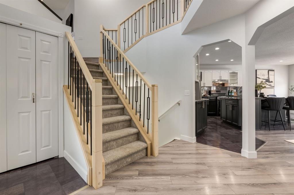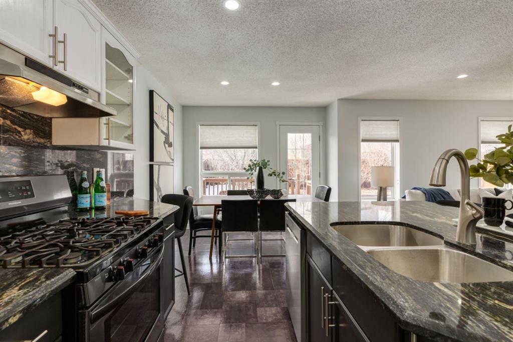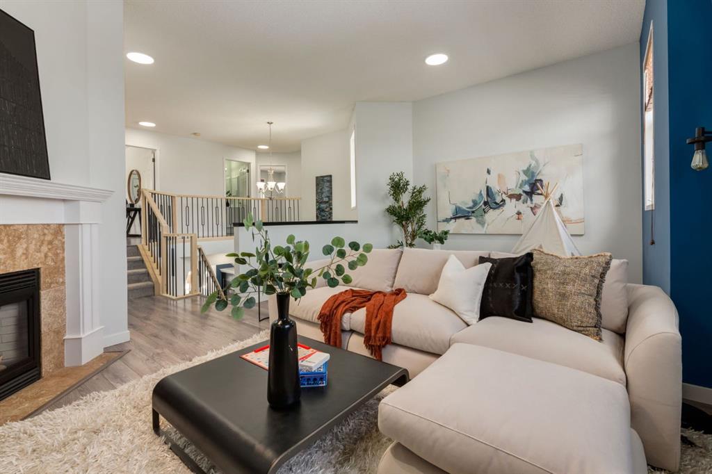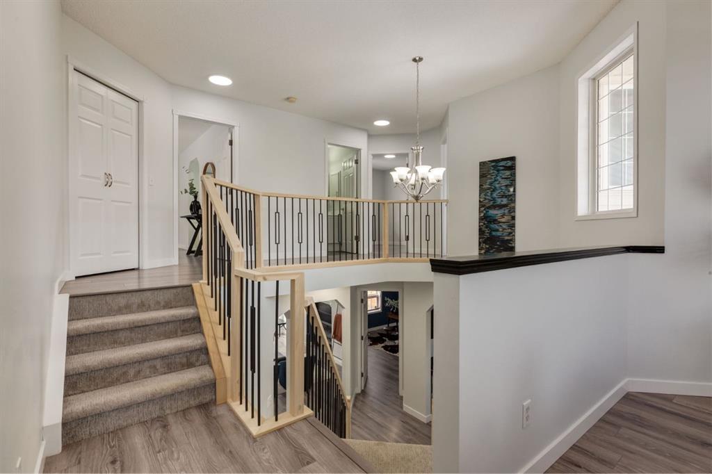 Located on a quiet cul-de-sac in the sought-after community of Hidden Valley this four bedroom home offers an exceptional blend of privacy, family-friendly living, and tasteful updates. Tucked away from busy traffic, the home provides an unbeatable, peaceful setting where kids can safely play, walk to all levels of schooling, and neighbours connect in a true community atmosphere. As you enter the home, you are greeted by a spacious entryway with soaring open ceilings, and a beautifully finished metal spindle railings. The open-concept main floor layout provides the perfect place to gather with family and friends and is flooded with natural light through multiple large west facing windows. The large kitchen showcases stainless steel appliances, a gas stove, large kitchen island with bar seating, and a large corner pantry. The kitchen opens to your bright and cheerful living room, which overlooks your enormous backyard, and boasts a cozy two-sided fireplace that is shared with a main floor office. The dining room provides a great amount of space for larger family gatherings and from the main floor you can step outside onto your two-tiered deck to BBQ, relax and unwind in the sunshine in your west facing yard. The backyard is beautifully landscaped with mature trees, has a sprawling lawn space to play in, and comes complete with natural gas hook up, and a hot tub pad with hot tub wiring already in place. The main floor also features a large flex space at the front of the home that could be used as an additional office family room, formal dining room, playroom, or flex space. The main floor is completed by your spacious laundry room, and a sizable powder room. The stairs to upstairs showcase beautiful millwork and black, metal spindles, which are sure to impress. Upstairs boasts a huge bonus room with a stylish accent wall, towering 10.5ft ceilings, a warm fireplace, and affords the perfect place to relax and watch a movie, read a book, or play with your kids. The spacious primary bedroom provides room for king-sized furniture, has large west facing windows, boasts a huge 5-piece bathroom and a sprawling walk-in-closet. Down the hall features 2 additional large bedrooms one of which has the luxury of three large windows. The upstairs is completed with a well-appointed 4 pc bathroom with updated lighting. Downstairs has been fully completed, making this home move-in ready, and features a large media space, an additional bedroom, a den/office, a huge storage room, and a beautiful 3-piece bathrooms with a stand-up shower, stunning tile and elegant vanity. Don’t miss out on the opportunity to own on one of the most peaceful streets in this amazing community. With no through traffic, and steps from access to the walking paths, greenspace, and schools, this incredible family home has it all. Located just steps from both Hidden Valley School (K-3) and Valley Creek School (4-9), and St. Elizabeth Steon High School this home makes the pperfect place to raise your family.